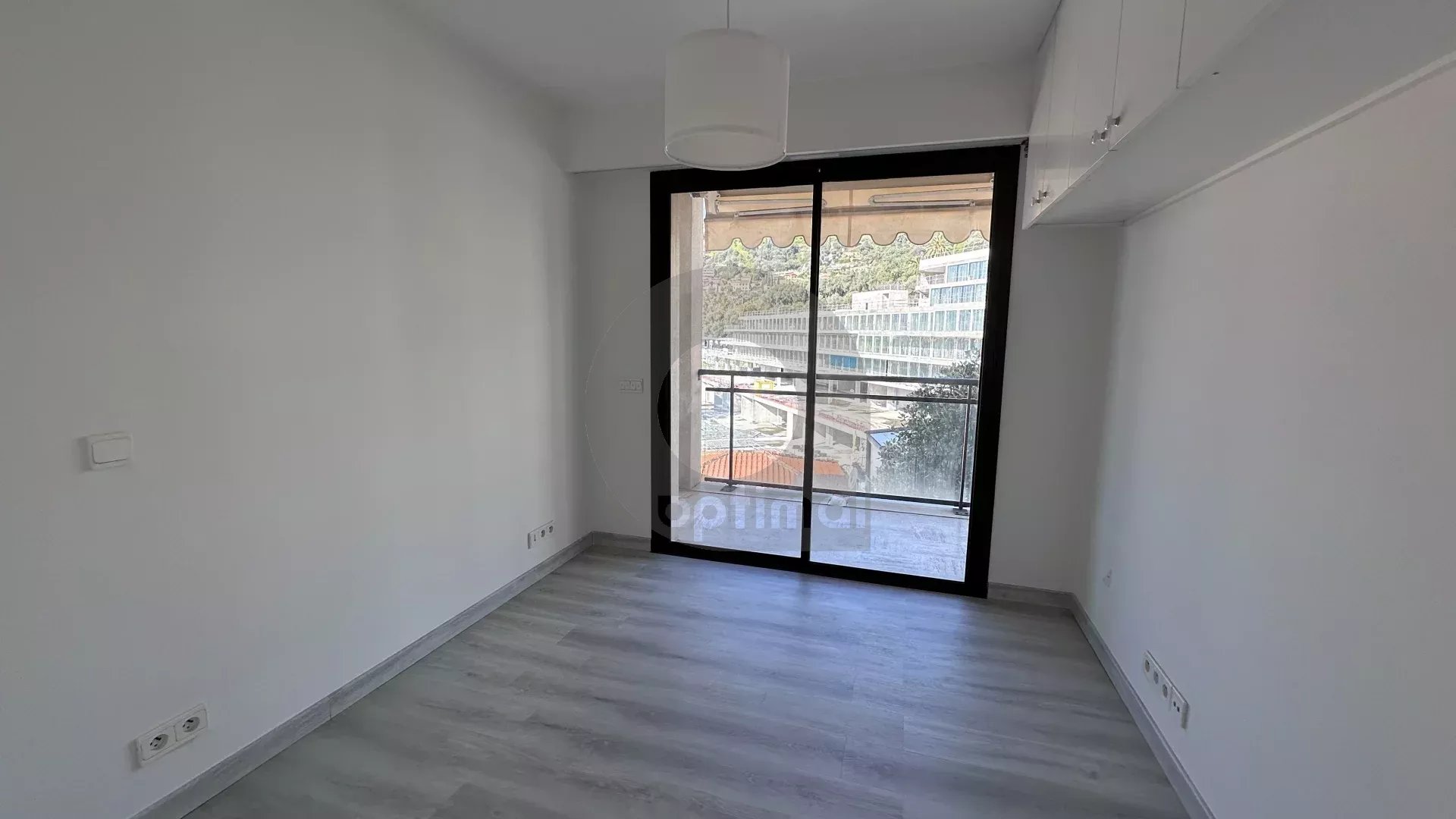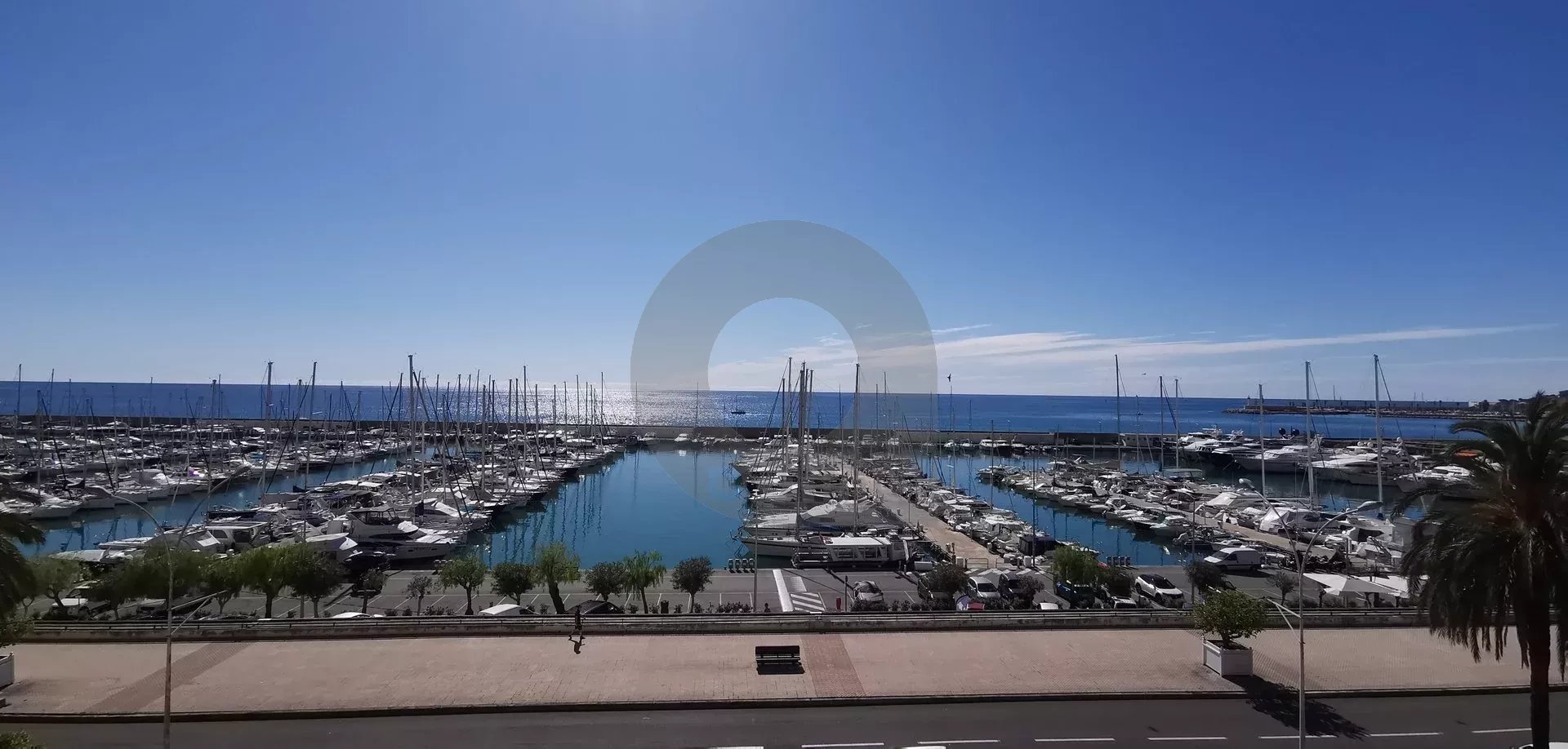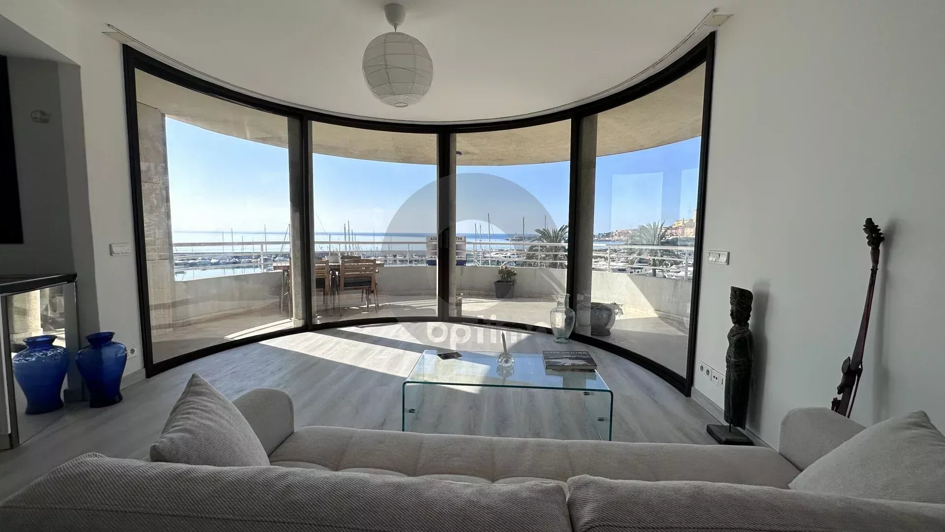 Our agency is offering a beautiful, recently renovated three-room apartment (63m²) with south and west exposure, located on the fourth floor of a modern, high-end residence facing the new port of Garavan. The apartment features integrated reversible air conditioning and includes: an entrance hall with cupboard, separate toilet, two bedrooms, hallway with wardrobe, open kitchen, and living room. There is also a magnificent circular terrace of approximately 22m² located next to the bedrooms and living room with panoramic views of the sea, the harbour, the old town and the surrounding hills.