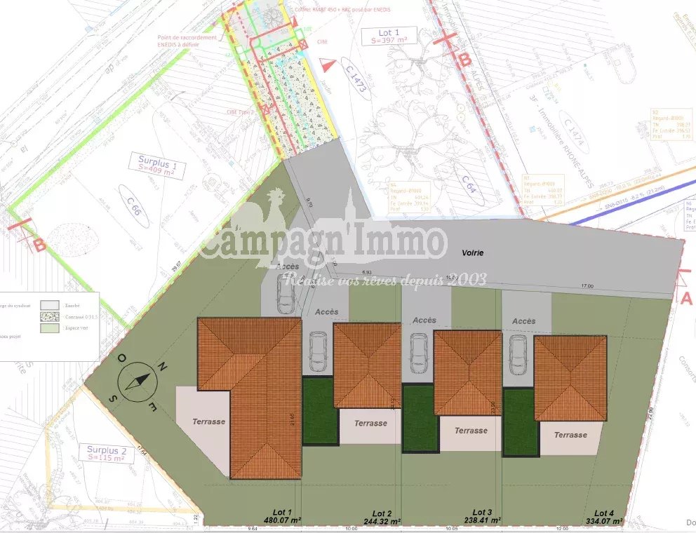 CAMPAGN'IMMO vous présente notre nouveau lotissement au cœur de Saint Romain de Popey. Découvrez 4 lots viabilisés de 238 m² à 591 m², à partir de 90 000€.