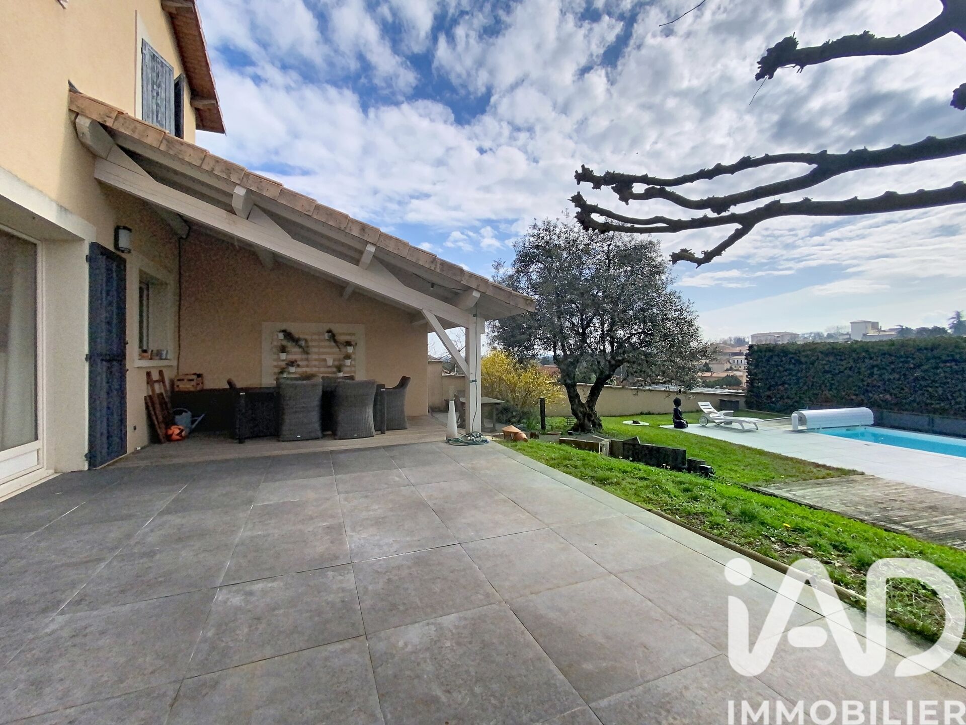 À l'extérieur, la propriété bénéficie d'un garage de 15 m², d'un auvent de 27 m², d'une terrasse, ainsi que d'un joli terrain clos de 908 m² (bâtiments inclus).