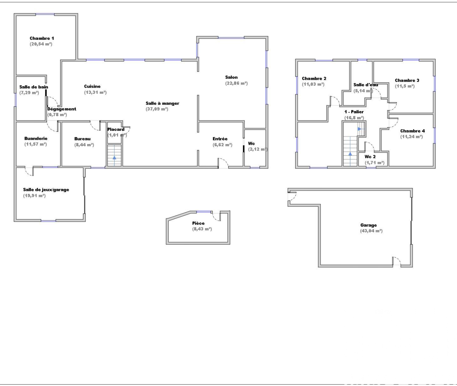 La maison offre une belle pièce de vie lumineuse de 51 m², composée d'un salon-séjour spacieux ouvert sur une cuisine aménagée et entièrement équipée de 8 m². L'espace nuit se compose de deux chambres de 10 m², de deux bureaux (7,8 m² et 7,2 m²), ainsi que d'une suite parentale comprenant une chambre de 11,7 m², un dressing de 5 m² et une salle d'eau de 6 m².Vous disposerez également d'une seconde salle d'eau de 6 m², d'un WC suspendu avec lave-mains, d'une buanderie de 7 m² et d'un dégagement.