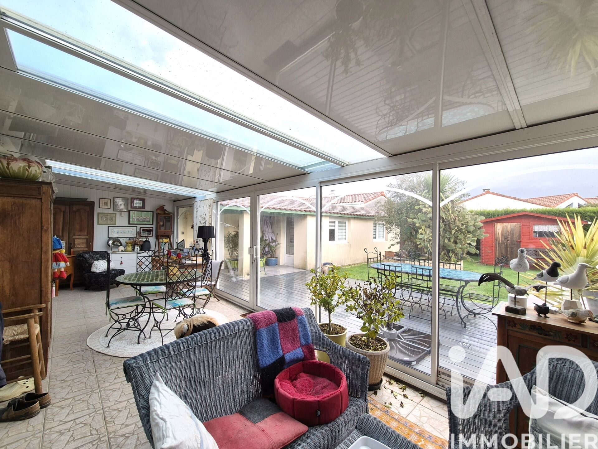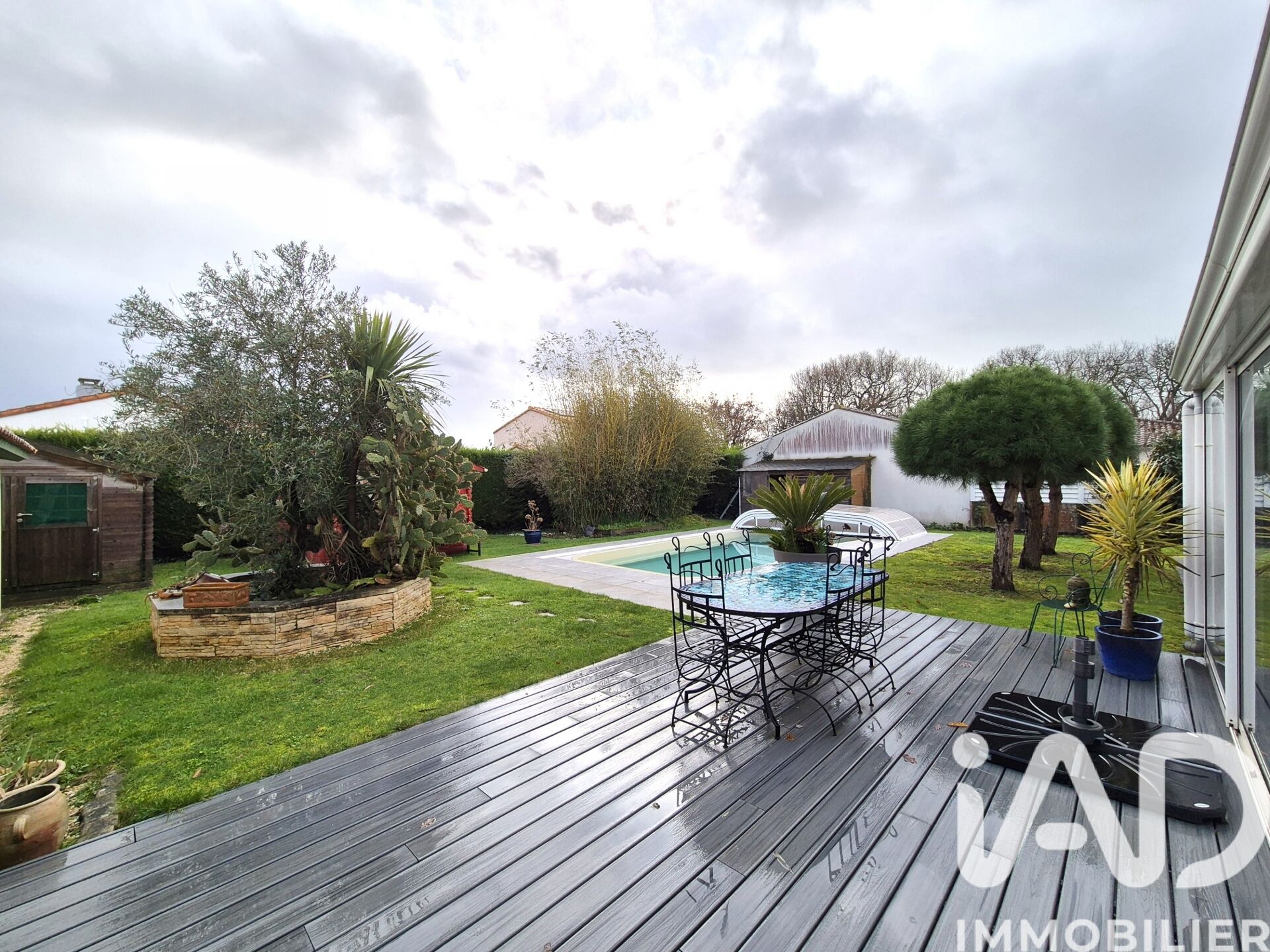 Iad France - Cyril Henry vous propose : QUARTIER LA MERINIERE / Maison de plain-pied construite sur un terrain de 770 m² en 2000 dans une impasse très calme. Ce bien offre de très belles prestations ainsi qu'un jardin SANS VIS à VIS ! - Une piscine de 7 x 4 avec abri. - Une grande véranda de 33 m² donnant sur le jardin exposé sud-est. - Une chambre parentale de 19 m². - Une dépendance avec préau offrant un espace bureau supplémentaire à la surface du bien et un espace cuisine d'été si vous le souhaitez. - Une grande allée goudronnée sur le côté donnant la possibilité de pouvoir agrandir le bien ou d'y rajouter un garage / carport… Isolation refaite en 2023, couverture remaniée en 2022, fibre et poêle à pellets. À très vite pour une visite ! Je reste à votre entière disposition pour tout renseignement. Cyril HENRY Honoraires d'agence à la charge de l'acquéreur. Prix honoraires inclus : 477000 euros. Prix hors honoraires : 460000 euros. Honoraires TTC à la charge de l'acquéreur (3,70% du prix du bien hors honoraires) : 17000 euros. Information d'affichage énergétique sur ce bien : classe ENERGIE C indice 123 et classe CLIMAT B indice 6. Les informations sur les risques auxquels ce bien est exposé, y compris l'obligation légale de débroussaillement, sont disponibles sur le site Géorisques : http://www.georisques.gouv.fr. La présente annonce immobilière a été rédigée sous la responsabilité éditoriale de M Cyril Henry mandataire indépendant en immobilier (sans détention de fonds), agent commercial de la SAS I@D France immatriculé au RSAC de LA ROCHE SUR YON sous le numéro 897788709, titulaire de la carte de démarchage immobilier pour le compte de la société I@D France SAS.