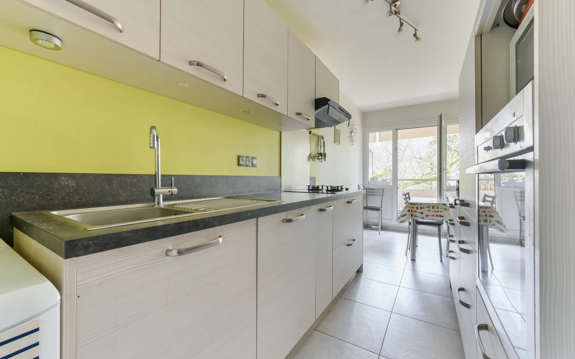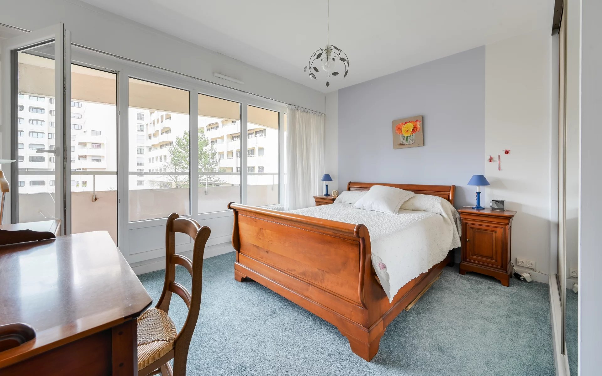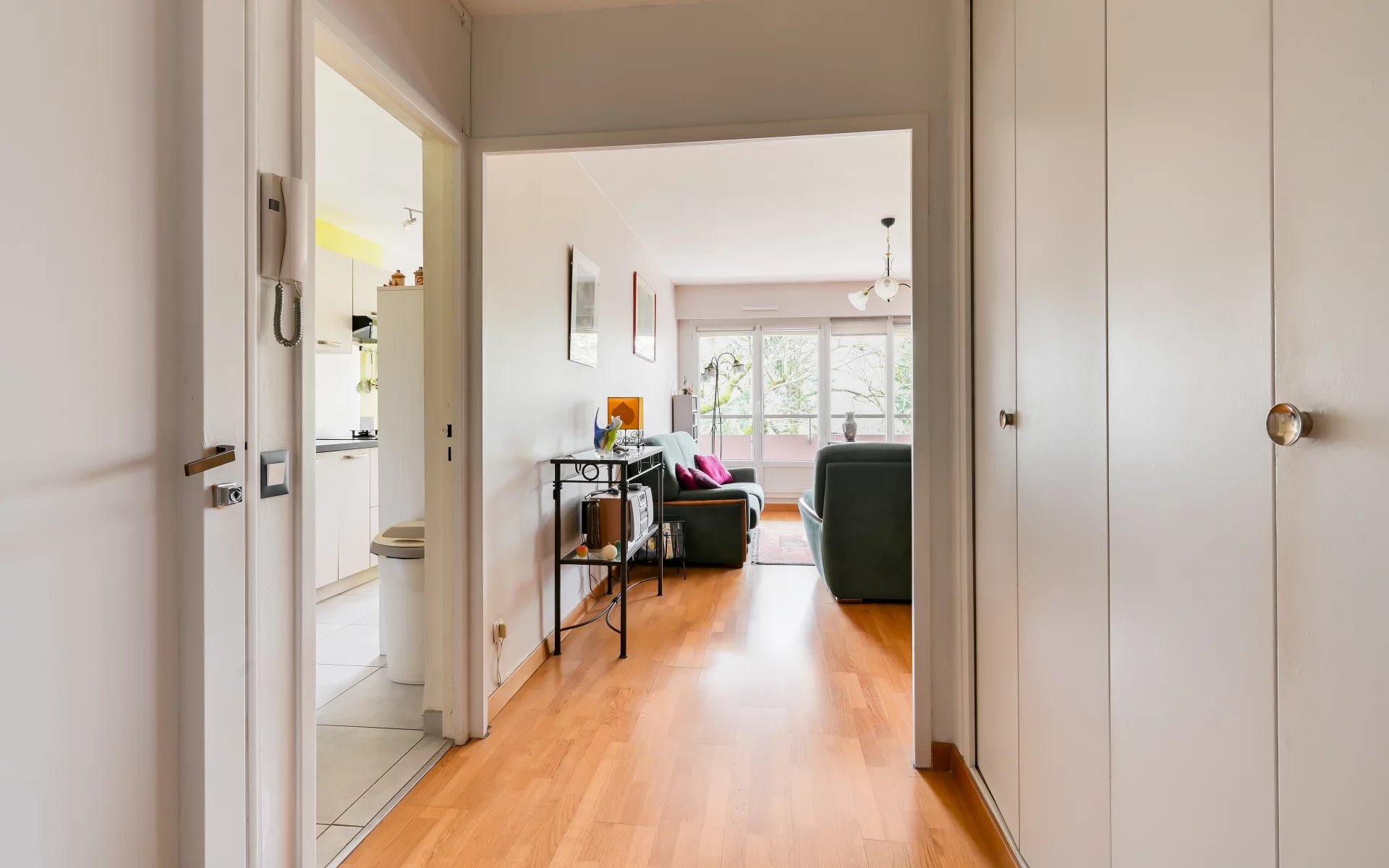 BEL APPARTEMENT T4 traversant de 85 m² habitables + 2 balcons profitables + Cave & Garage box fermé en sous-sol dans résidence "les 2 amants" fermée et sécurisée. Le bâtiment comporte seulement 6 étages, il est situé en recul des voies de circulation, avec un environnement parc boisé, tennis, à proximité de toutes commodités transports, ets scolaires, commerces de proximité, centre social, stade et activités sportives. L'appartement se présente en bon état général, bien entretenu, offrant une distribution très agréable : entrée spacieuse avec vestiaire sol carrelé, Séjour + salon avec accès sur balcon sud, sol parquet chêne blond, baies vitrées coulissantes + volets roulants électriques et stores banne avec vue directe sur la verdure, Cuisine équipée avec accès sur balcon. Espace nuit distinct avec dégagement distribuant 2 chambres de 11 et 12 m² avec accès sur 2e balcon, cellier, placards poste toilettes indépendant, rangements. Possibilité 3e chambre. Chauffage gaz. Annexes : Garage box fermé + Cave de 5,22 m², Résidence fermée & sécurisée, Local vélos. Espaces verts. Décoration à actualiser : Proposition home staging. DPE E. Prix 269 100 € Contacter CENTRALYM Françoise PIALAT 06 20 48 35 00 pour plus d'informations ou l'organisation d'une visite.