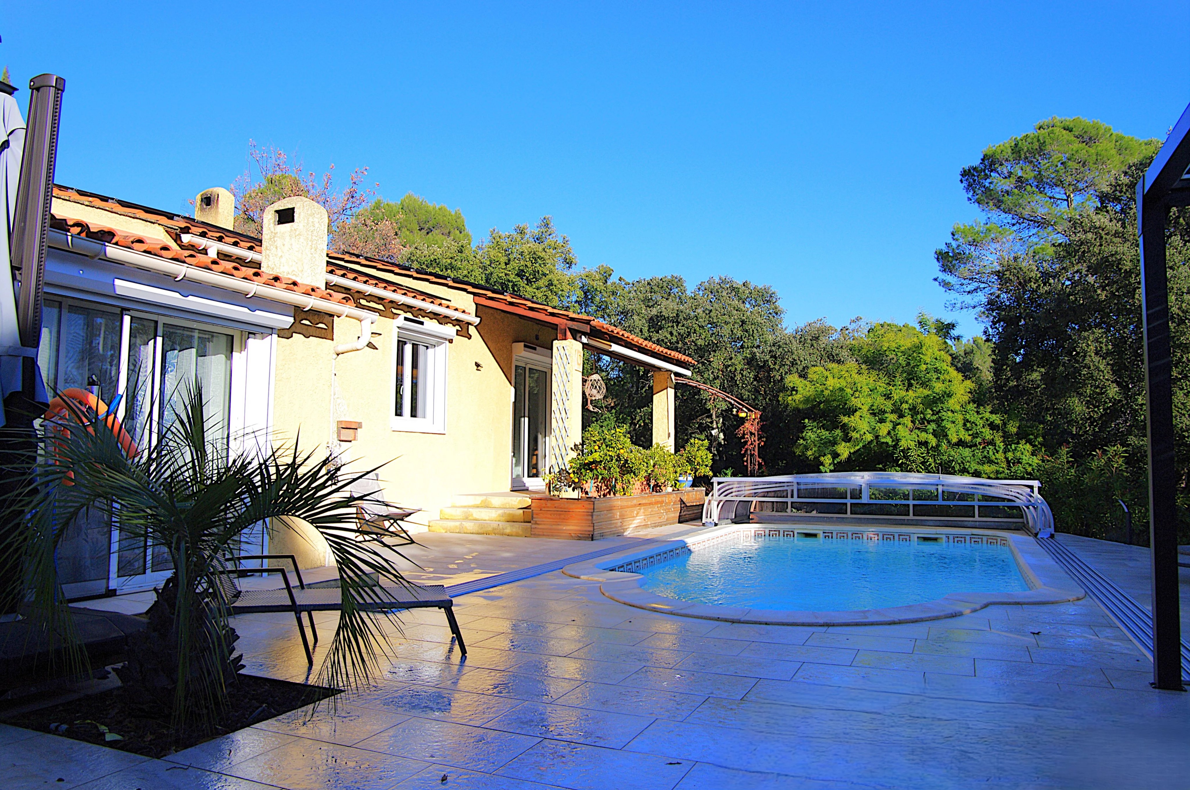 EXCLUSIVITÉ LORGUES QUARTIER PRISE VILLA T5 RÉNOVÉE QUARTIER RESIDENTIEL 105 M² 3 CHAMBRES BUREAU PISCINE GARAGE Lorgues – Villa rénovée, DPE A, piscine et cadre naturel d’exception à deux pas du centre-ville. Imaginez-vous dans un petit coin de paradis ! Dans l’un des secteurs les plus prisés, cette élégante villa traditionnelle rénovée en situation dominante s’inscrit dans un environnement privilégié, au cœur d’un terrain boisé de 6 034 m²entièrement clos, offrant calme, intimité et sérénité absolue. La propriété séduit par ses volumes, sa luminosité et ses prestations soignées. La pièce de vie exposée plein sud, avec cuisine ouverte contemporaine, s’ouvre harmonieusement sur l’extérieur. Une cheminée avec insert à granulés apporte confort et convivialité. La partie nuit propose trois chambres dont une en suite parentale avec sa salle d'eau avec toilettes et une salle de douche indépendante, un espace ouvert pouvant servir de pièce d'appoint ou coin nuit et un bureau à l'étage. À l’extérieur, la piscine 8 x 4 avec abri récent, la pergola aménagée et la cuisine d’été composent un véritable art de vivre, en parfaite harmonie avec la nature environnante. Cette villa bénéficie d’équipements premium : panneaux solaires photovoltaïques permettant un gain significatif sur la facture d’électricité, climatisation réversible, ballon thermodynamique, moustiquaires haut de gamme, volets électriques, deux portails motorisés, garage et stationnements. Classée A au DPE, la maison offre une excellente performance énergétique remarquable avec des dépenses annuelles maîtrisées, garantissant confort thermique et maîtrise des dépenses. Une propriété rare, alliant élégance, confort moderne et cadre naturel d’exception, conjuguant prestations de qualité et performance énergétique. Estimation des coûts annuels : entre 570 € et 830 € par an Une opportunité à ne pas manquer. Contactez-nous dès aujourd’hui pour organiser votre visite et concrétiser votre projet. Cette annonce immobilière a été rédigée sous la responsabilité éditoriale de l'agent commercial mandataire immobilier Régine FINISTRE.