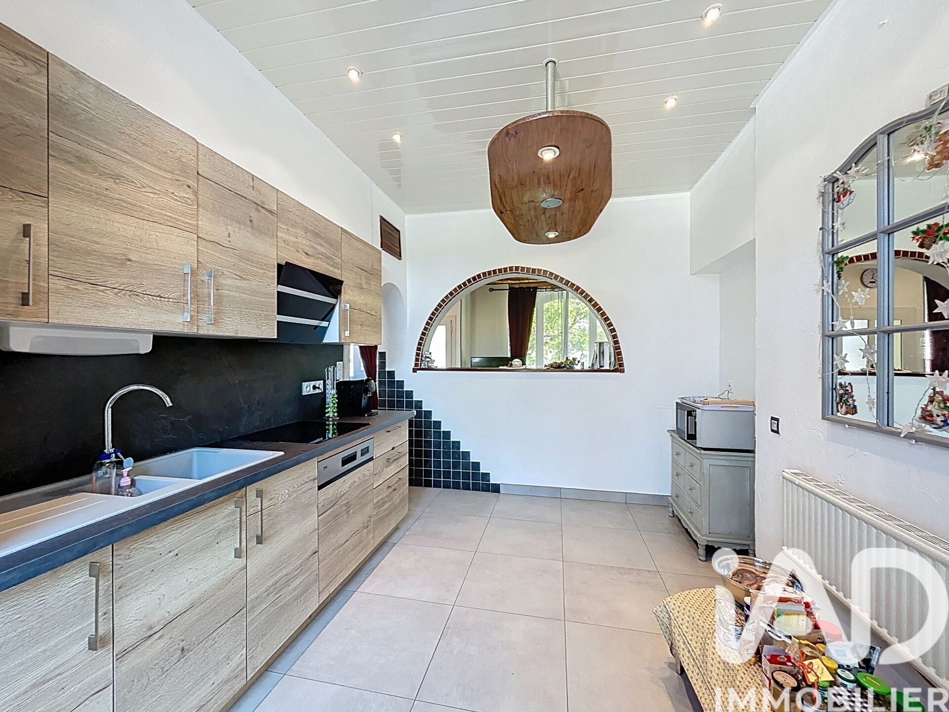 La maison se compose de sept pièces principales réparties sur plusieurs niveaux, incluant cinq chambres, quatre salles d’eau et quatre WC. L’espace intérieur est optimisé pour accueillir une famille ou des visiteurs, avec des volumes généreux et une distribution fonctionnelle. La cuisine est équipée, facilitant ainsi la prise en main dès l’acquisition. L’ensemble est meublé, ce qui peut constituer un avantage pour une installation rapide.