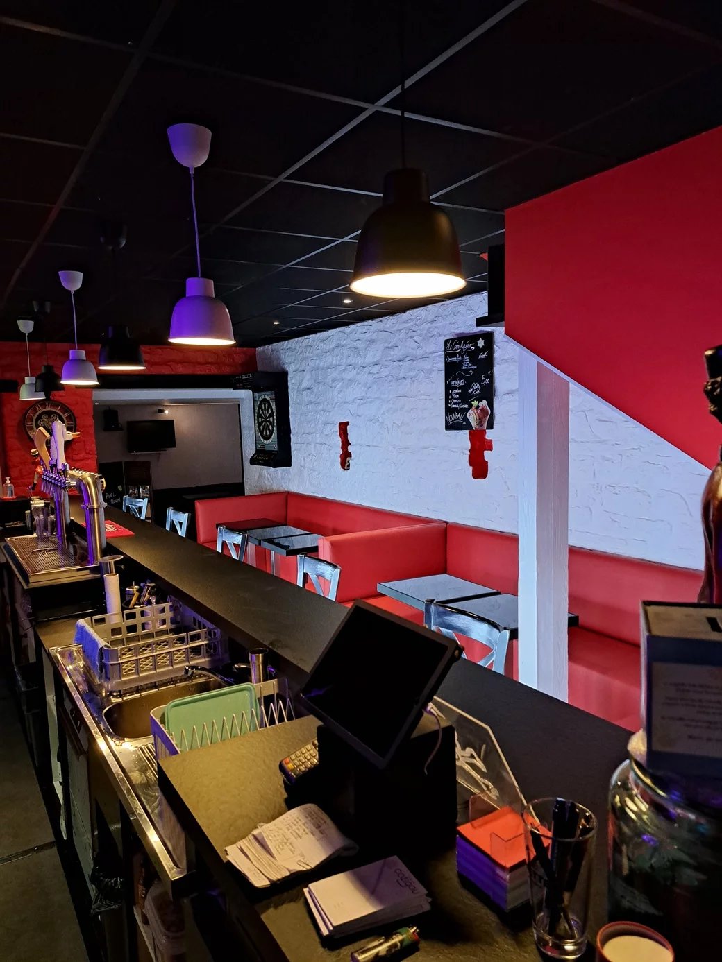 Situé au centre d'une station balnéaires des cotes d'Armor, ce bar contemporain de 70 m² propose une ambiance chaleureuse avec un espace accueillant. Les jeux de lumières colorés mettent en valeur une salle soigneusement aménagée. Le mobilier élégant et la décoration donnent à l’ensemble un style dynamique et convivial.