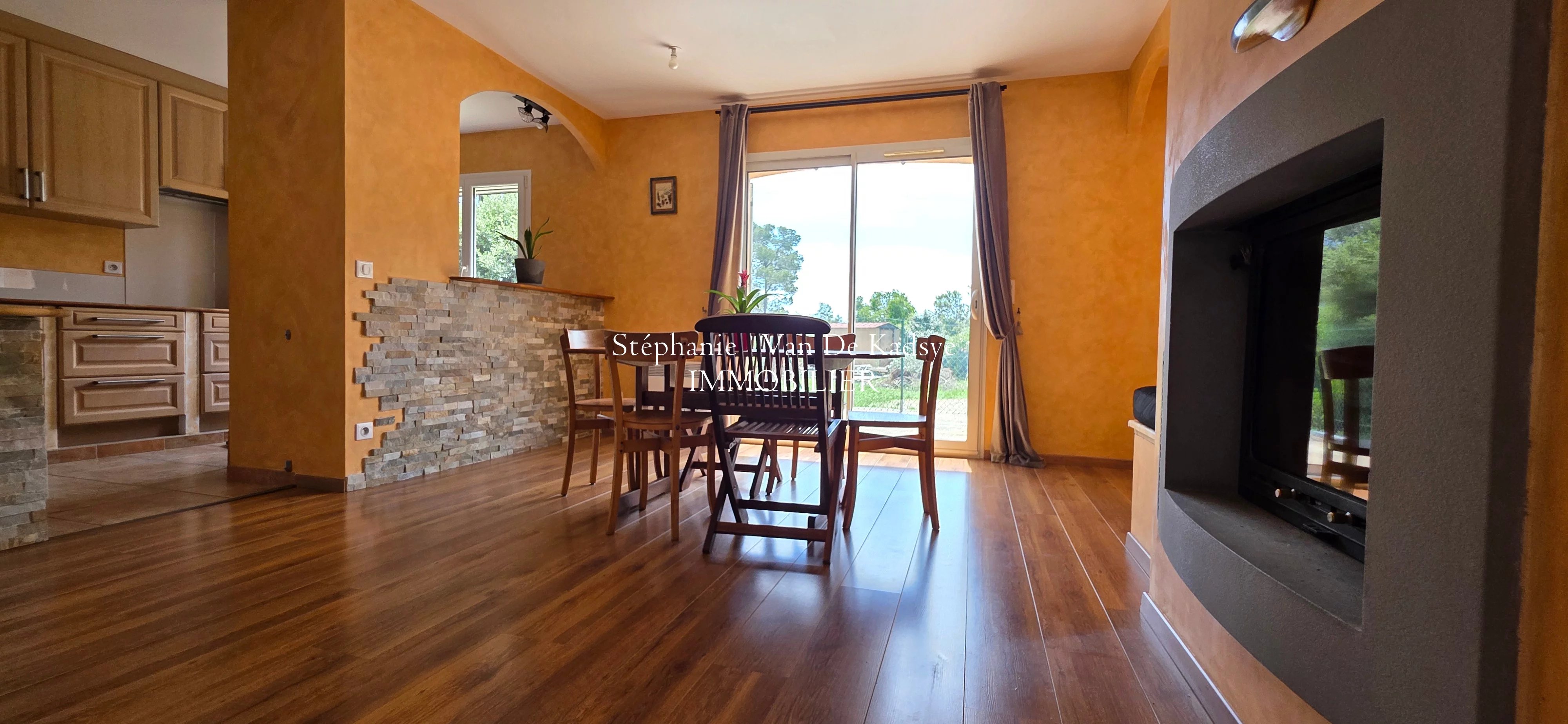 Here is the translation of your text into English:Draguignan, for nature lovers, it is in a calm, preserved residential area, sheltered from view, that I offer you this villa of over 130 m² on a fully fenced 4000 m² plot. Built in 2008, the villa consists on the garden level of an entrance with closet, a fitted kitchen open to the dining room with fireplace, a living room, a utility room, an office, and a toilet. Upstairs, there are four large bedrooms, three of which have closets, a toilet, and a bathroom. All set on a fenced and wooded 4000 m² plot, with a terrace and summer kitchen. If you wish to live in a setting fully dedicated to nature and relaxation, this villa will meet your expectations. Highlights: possible garage, possible swimming pool, south-facing, unobstructed view, no overlooking neighbors, quiet area, easy access, plenty of storage in this villa ideally designed for a family. Property tax: €1917. I remain at your disposal for any information before a visit. Cette annonce immobilière a été rédigée sous la responsabilité éditoriale de l'agent commercial mandataire immobilier Stéphanie VAN DE KADSYE.