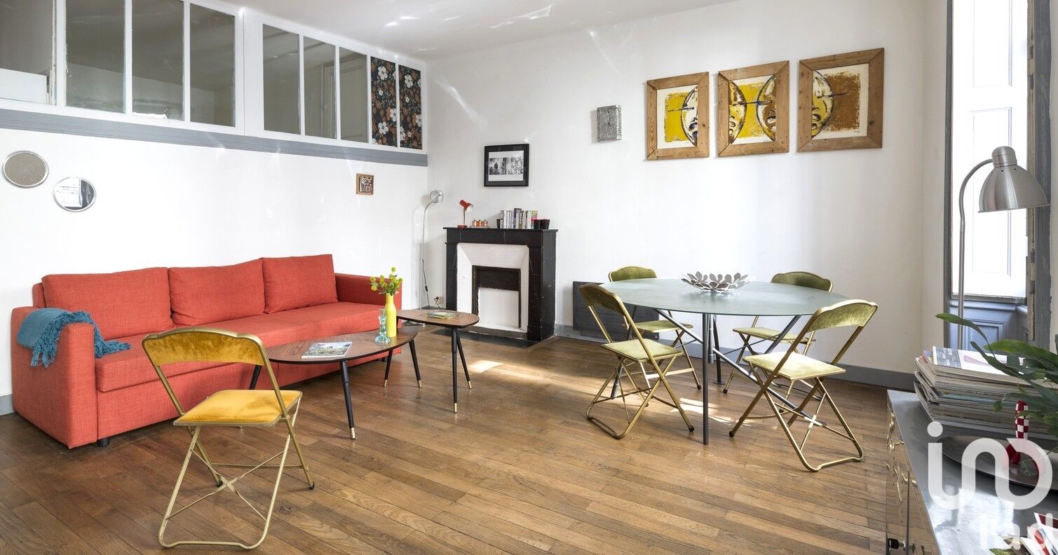 Iad France - Edith Lagardère vous propose : En plein cOEur du quartier Bouffay au centre de Nantes, au pied de l'Eglise Sainte-Croix, cet appartement spacieux de 55 m² rénové avec goût offre un grand séjour de 24 m², une cuisine ouverte de 14 m² et une chambre atelier de 9 m². Vous y trouverez les éléments chaleureux de l'ancien (parquet, cheminée, volets intérieur, hauteur sous plafond, immeuble ancien de caractère) et une situation avec un emplacement idéal (quartier dynamique). Situé au 2ème étage sans ascenseur, ce bien est parfait pour un premier achat ou pour un investisseur locatif saisonnier avec un excellent rendement. Un grenier de 10 m² se situe au 3ème étage. La presente annonce immobiliere vise 2 lots situés dans une copropriété de 21 lots au total et ne faisant l'objet d'aucune procédure en cours citée à l'article L. 721-1 du code de la construction et de l'habitation. Montant moyen mensuel de charges déclaré par le vendeur : 61.67€ par mois (soit 740 € annuel). Honoraires d'agence à la charge du vendeur. Information d'affichage énergétique sur ce bien : classe ENERGIE D indice 246 et classe CLIMAT B indice 7. Les informations sur les risques auxquels ce bien est exposé, y compris l'obligation légale de débroussaillement, sont disponibles sur le site Géorisques : http://www.georisques.gouv.fr. La présente annonce immobilière a été rédigée sous la responsabilité éditoriale de Mme Edith Lagardère mandataire indépendant en immobilier (sans détention de fonds), agent commercial de la SAS I@D France immatriculé au RSAC de Nantes sous le numéro 899754253, titulaire de la carte de démarchage immobilier pour le compte de la société I@D France SAS.