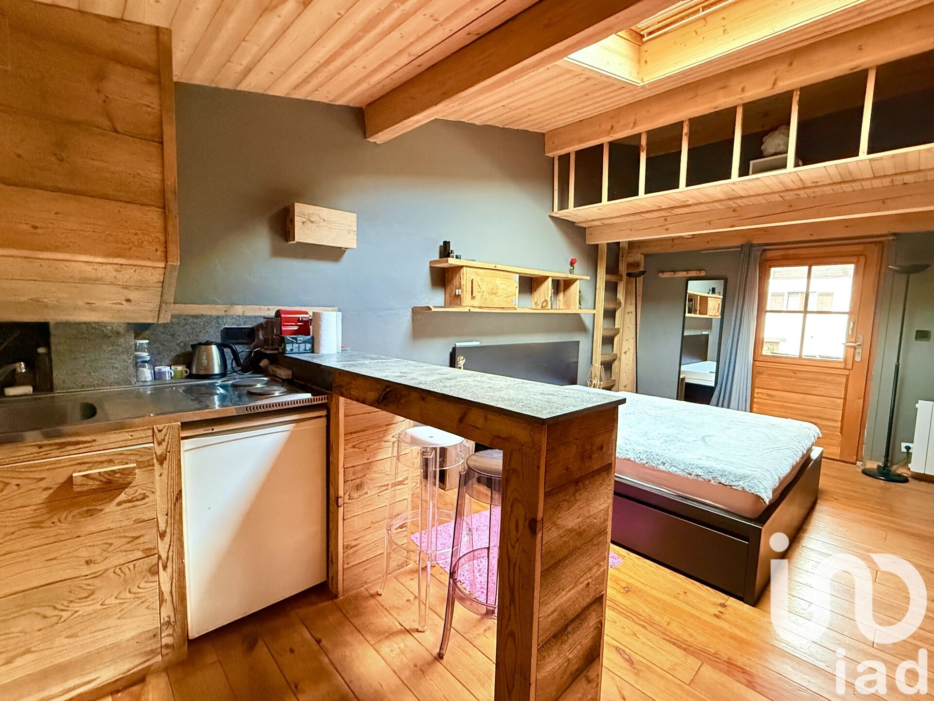 Iad France - Juliette Darras vous propose : Charmant studio à Megève – Pied-à-terre et / ou investissement idéal à la montagne Situé au rez-de-chaussée d’une copropriété pleine de cachet composée de deux bâtiments, ce studio meublé de 24 m² vous séduira par son ambiance chaleureuse et son esprit chalet. L’espace principal, entièrement habillé de bois, offre un cadre accueillant et fonctionnel. Vous trouverez une salle d’eau et des WC séparés, pour un confort optimal. Une mezzanine, bien que basse de plafond, permet d’aménager un couchage supplémentaire. Elle est accessible par une échelle de meunier, apportant une touche pratique et rustique à l’ensemble. Son emplacement est idéal : à seulement 5 minutes à pied de la zone piétonnière de Megève, il permet de profiter facilement des commerces, restaurants et animations du village tout en restant dans un cadre calme et reposant. De plus, la copropriété dispose de places de parking, un véritable atout en station. Le studio est vendu meublé, prêt à être habité ou loué. Ce bien est parfait comme pied-à-terre chaleureux ou pour un investissement locatif. Ne tardez pas à visiter cette opportunité unique à Megève ! N'hésitez pas à me contacter si vous souhaitez plus de renseignements ou organiser une visite. La presente annonce immobiliere vise 2 lots situés dans une copropriété de 12 lots au total et ne faisant l'objet d'aucune procédure en cours citée à l'article L. 721-1 du code de la construction et de l'habitation. Montant moyen mensuel de charges déclaré par le vendeur : 15.5€ par mois (soit 186 € annuel). Honoraires d'agence à la charge du vendeur. Information d'affichage énergétique sur ce bien : classe ENERGIE G indice 565 et classe CLIMAT C indice 18. Les informations sur les risques auxquels ce bien est exposé, y compris l'obligation légale de débroussaillement, sont disponibles sur le site Géorisques : http://www.georisques.gouv.fr. La présente annonce immobilière a été rédigée sous la responsabilité éditoriale de Mme Juliette Darras mandataire indépendant en immobilier (sans détention de fonds), agent commercial de la SAS I@D France immatriculé au RSAC de Lyon sous le numéro 952273449, titulaire de la carte de démarchage immobilier pour le compte de la société I@D France SAS.