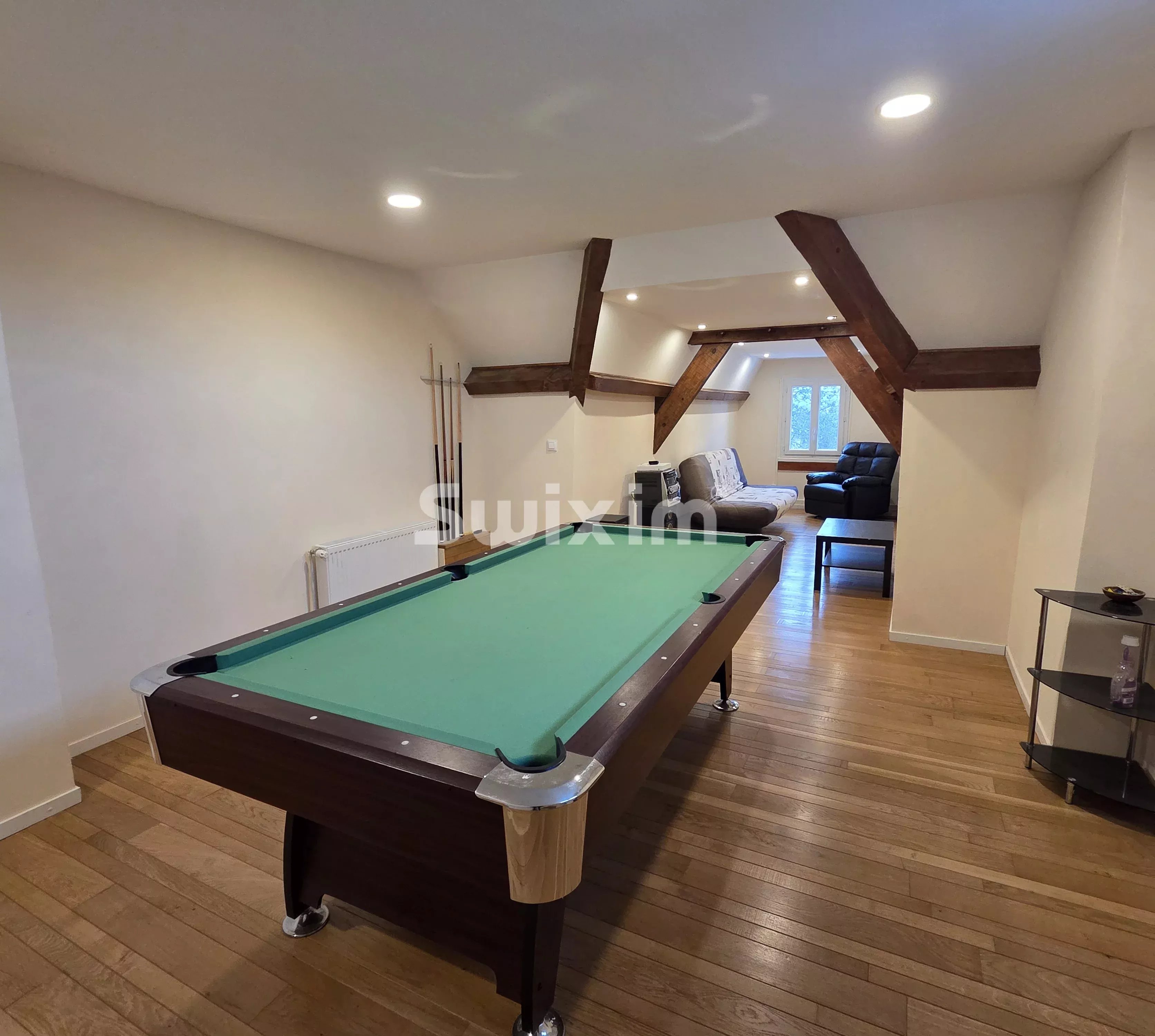 REF 19253LV - POLIGNY Idéalement située dans un quartier prisé de Poligny, venez découvrir cette grande propriété en surplomb de la ville avec vue dégagée. Rénovée, elle propose des espaces de vie spacieux et lumineux : une cuisine dinatoire entièrement équipée et un vaste salon/séjour donnant sur une grande terrasse explosée plein Ouest. Côté nuit, une chambre en rez-de-chaussée vous permettra de vivre de plain-pied, ainsi qu'un espace parental offrant une chambre supplémentaire avec salle d'eau Balnéo. A l'étage, vous serez charmés par les chambres mansardées et l'espace atypique de jeux avec salle d'eau. Un appartement indépendant de près de 40m² et rénové vous permettra une activité de location ou de gîte. Garage double, cave et atelier viennent compléter le tout, sur une parcelle cadastrale de plus de 1400m².
