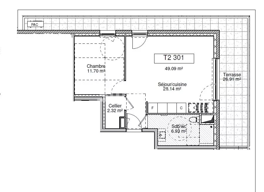 Réf 70209VB301FV : VILLARD-BONNOT, Appartement T2 attique d'environ 49.09 m2, une pièce de vie, une terrasse, une chambres, une salle d'eau toilette, 1 garage.