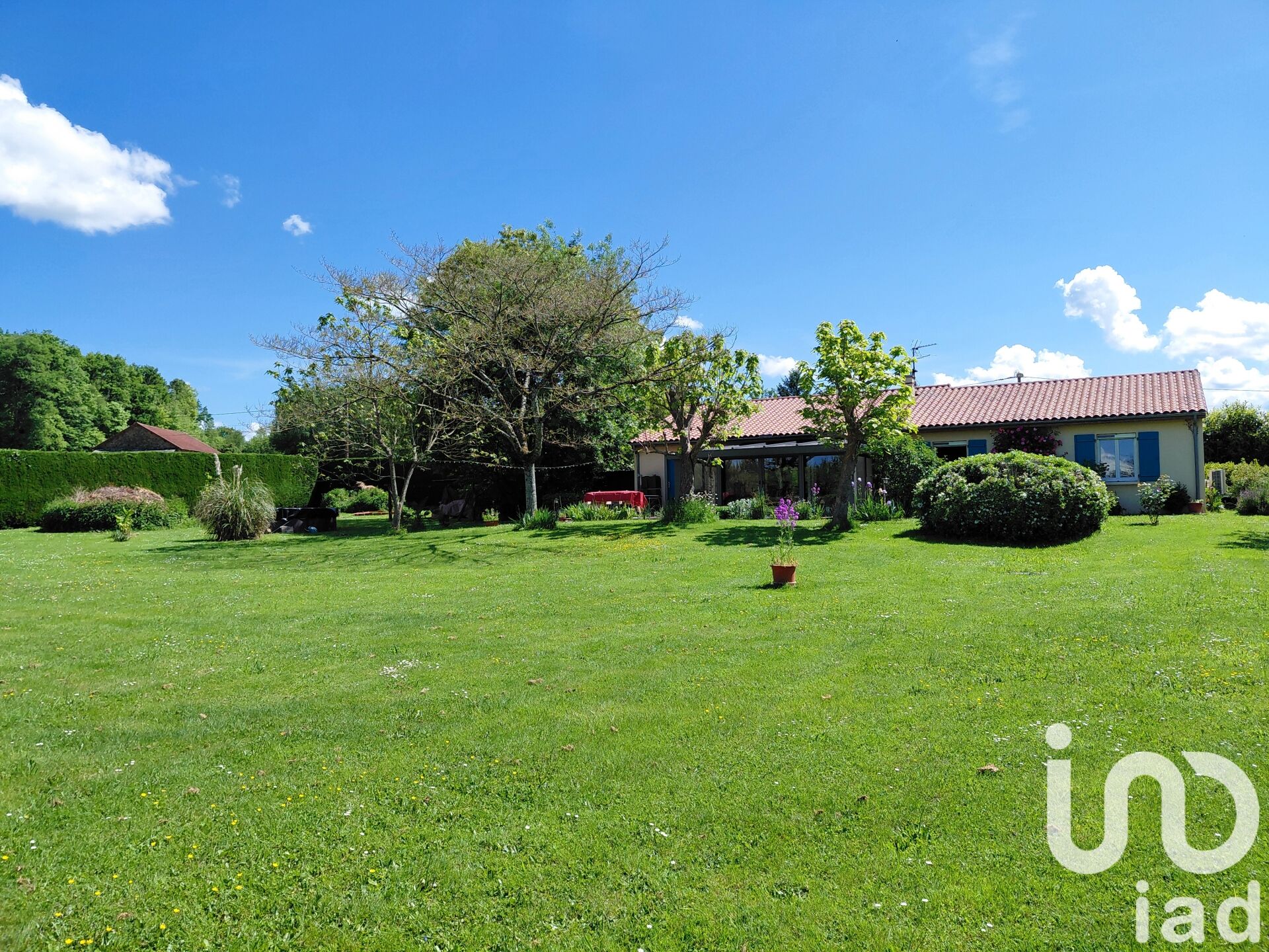 Iad France - Sophie Le Moigne vous propose : À 7 minutes d’Ambazac, cette ravissante maison de plain-pied d’une surface de 120 m² offre un cadre de vie idéal. Vous profiterez du calme et de la sérénité de la campagne tout en bénéficiant de la proximité des commerces et des commodités essentielles … La maison se répartie en deux zones à partir de l’entrée. L’espace jour composé d’une cuisine aménagée et équipée ouverte sur un séjour convivial de 31 m² avec cheminée à insert et surtout l’accès à la véranda bioclimatique de 20 m², un des atouts majeurs de cette maison. Jouxtant la véranda, à l’ombre des arbres une belle terrasse de 30 m² vous attends pour vos repas d’été … L’espace nuit est composé de quatre chambres d’une dizaine de m² chacune avec grands placards de rangement, une salle d’eau et un wc indépendant. Sur la parcelle entièrement clôturée, sans vis-à-vis et joliment paysagée de 4054 m², vous disposerez aussi de trois car-port. Attenant à la maison et accessible par le coin buanderie de 4 m², un garage de 23 m² aménagé actuellement en deux espaces de stockage. D’un point de vue technique : - Aucuns travaux à prévoir. - Trois systèmes de Chauffage : PAC air / air 4 Split, double récupération de la chaleur de l’insert, natte chauffante électrique sous carrelage. - Huisseries PVC double vitrage avec volets roulant et doubles volets bois - Vmc dans la salle d’eau - Assainissement individuel conforme - Véranda bioclimatique AKENA gamme Elite en aluminium avec volets électriques. Haute performance technique et parfaite étanchéité à l’eau et à l’air. Toiture isolée avec une partie en vitrage teinté aux propriétés opacifiantes permettant de maitriser l’éblouissement et l’apport de chaleur. - Portail électrique à télécommande Ne passez pas à coté de cette opportunité de vivre dans un cadre apaisant où il fait bon vivre et Venez vite découvrir cette belle maison. Honoraires d'agence à la charge du vendeur. Information d'affichage énergétique sur ce bien : classe ENERGIE B indice 101 et classe CLIMAT A indice 3. Les informations sur les risques auxquels ce bien est exposé, y compris l'obligation légale de débroussaillement, sont disponibles sur le site Géorisques : http://www.georisques.gouv.fr. La présente annonce immobilière a été rédigée sous la responsabilité éditoriale de Mme Sophie Le Moigne mandataire indépendant en immobilier (sans détention de fonds), agent commercial de la SAS I@D France immatriculé au RSAC de LIMOGES sous le numéro 921713335, titulaire de la carte de démarchage immobilier pour le compte de la société I@D France SAS.