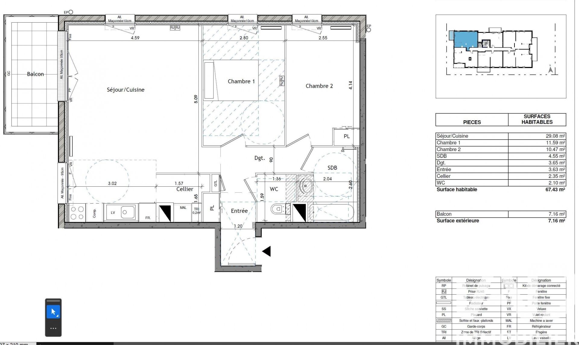 Iad France - Sylvie Bossennec vous propose : * Nouveauté en Exclusivité à VOISINS LE BRETONNEUX * - Dans le nouvel écoquartier de La Remise, construction de 2022, découvrez ce bel appartement récent de 3 pièces de 67,43 m², DPE classé C et C, normes PMR. Situé au 3eme étage d’une résidence de standing, moderne et sécurisée, il bénéficie d’une exposition Est ouvrant sur un balcon de 7 m². L’appartement comprend une entrée avec placard aménagé, un dégagement fonctionnel, un séjour spacieux ouvert sur une cuisine équipée moderne avec un îlot central, un cellier, deux chambres confortables, une salle de bains contemporaine et une toilette séparée. Profitez également du confort du chauffage au gaz de ville collectif par radiateurs pour un hiver douillet. L'installation de la fibre optique vous assure une connexion internet rapide et fluide. La résidence offre également : Une crèche, commerces, écoles, ligne BUS Collège Champollion : 5192 / 5196 BUC Lycée Franco-Allemand, à proximité. Un local à vélos, poussettes et un local des encombrants pour un confort optimal au quotidien. L’écoquartier La Remise offre un cadre de vie moderne, verdoyant et durable, à deux pas du centre de Voisins-le-Bretonneux. Un parking en sous-sol sécurisé complète ce bien. Aucun travaux à prévoir : idéal pour un premier achat ou un investissement locatif ! Ne manquez pas cette opportunité unique, contactez-moi dès maintenant pour organiser une visite et laissez-vous charmer par ce bien d'exception à Voisins-le-Bretonneux. La presente annonce immobiliere vise 2 lots situés dans une copropriété de 110 lots au total et ne faisant l'objet d'aucune procédure en cours citée à l'article L. 721-1 du code de la construction et de l'habitation. Montant moyen mensuel de charges déclaré par le vendeur : 241€ par mois (soit 2892 € annuel). Honoraires d'agence à la charge du vendeur. Information d'affichage énergétique sur ce bien : classe ENERGIE C indice 63 et classe CLIMAT C indice 13. Les informations sur les risques auxquels ce bien est exposé, y compris l'obligation légale de débroussaillement, sont disponibles sur le site Géorisques : http://www.georisques.gouv.fr. La présente annonce immobilière a été rédigée sous la responsabilité éditoriale de Mme Sylvie Bossennec mandataire indépendant en immobilier (sans détention de fonds), agent commercial de la SAS I@D France immatriculé au RSAC de VERSAILLES sous le numéro 849045687, titulaire de la carte de démarchage immobilier pour le compte de la société I@D France SAS.