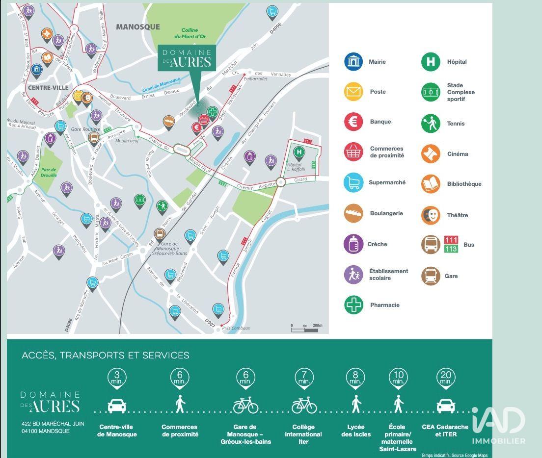 Iad France - Christophe Camart (06 40 19 05 46) vous propose : DERNIÈRE OPPORTUNITÉ -T2 - Résidence 'DOMAINE DES AURES - LA BRISE' à MANOSQUE Résidence « DOMAINE DES AURES - LA BRISE», à proximité des lavandes du plateau de Valensole, du Val de Durance et des gorges du Verdon. - 2 pièces de 50 m² environ, R + 1,. 1 chambre,. Parking aérien,. frais de notaire estimés à 4600 euros en moyenne. Vous l'avez rêvé, ne manquez pas de concrétiser votre projet, profitez en famille de cette opportunité à MANOSQUE où se conjuguent douceur de vie et territoire attractif. La résidence 'DOMAINE DES AURES - LA BRISE', logements à l’accession libre, lumineux et confortables, dans un cadre idéal où tout est pensé pour que vous puissiez jouir de logements aux nombreux avantages. Autres logements disponibles : - 2 pièces, de 39 à 50 m² environ,. parking aérien,. Terrasse, jardin, Règlementation Environnementale RT 2012. Livraison prévisionnelle fin 1er T 2026. Contactez-moi pour en savoir plus et réserver ! Honoraires d’agence à la charge du vendeur. Bien non soumis au DPE. Les informations sur les risques auxquels ce bien est exposé sont disponibles sur le site Géorisques : www.georisques.gouv.fr. La présente annonce immobilière a été rédigée sous la responsabilité éditoriale de M. Christophe Camart EI (ID 17799), mandataire indépendant en immobilier (sans détention de fonds), agent commercial de la SAS I@D France immatriculé au RSAC de MANOSQUE sous le numéro 398767806, titulaire de la carte de démarchage immobilier pour le compte de la société I@D France SAS. Retrouvez tous nos biens sur notre site internet. www.iadfrance.fr.