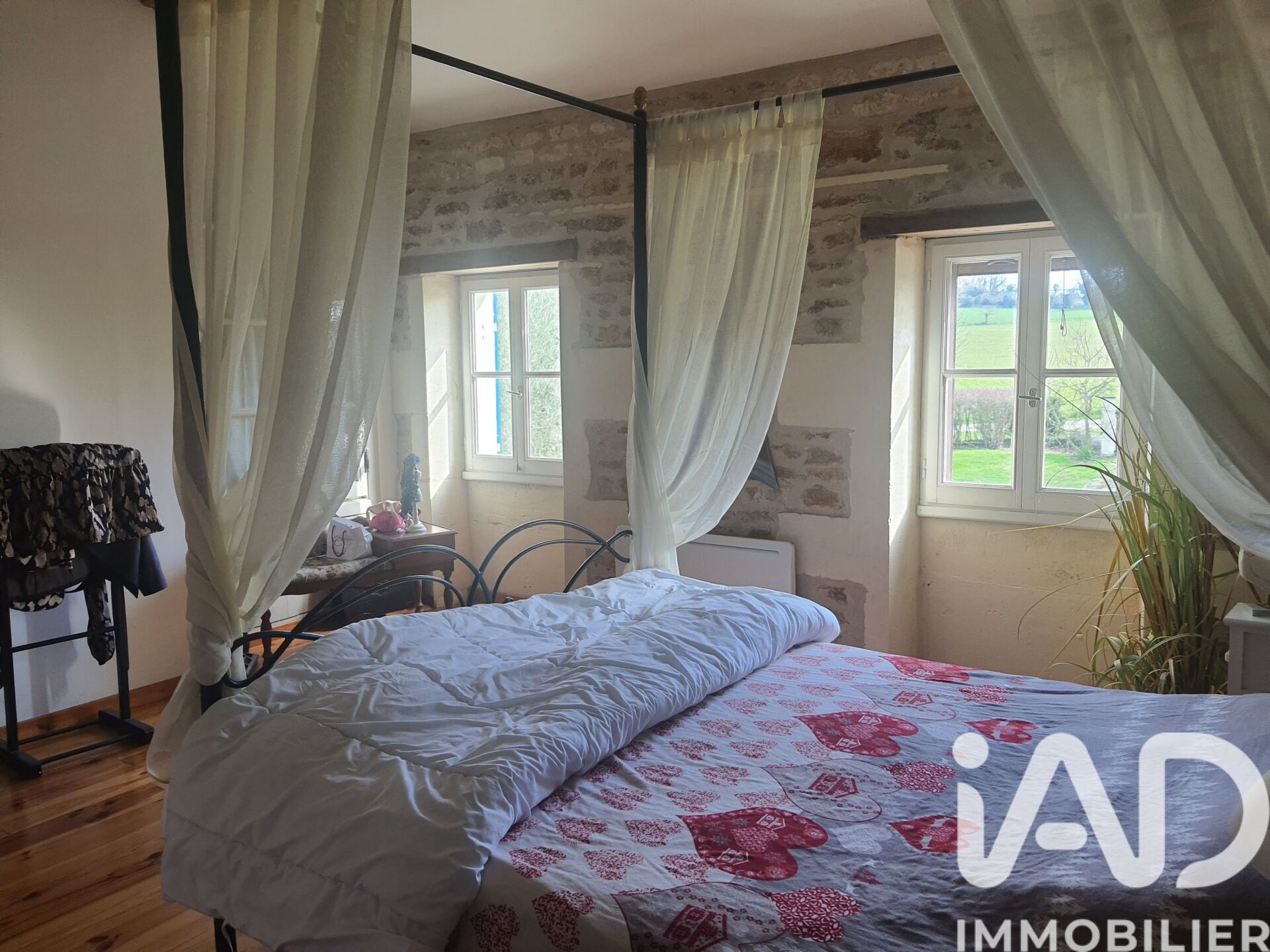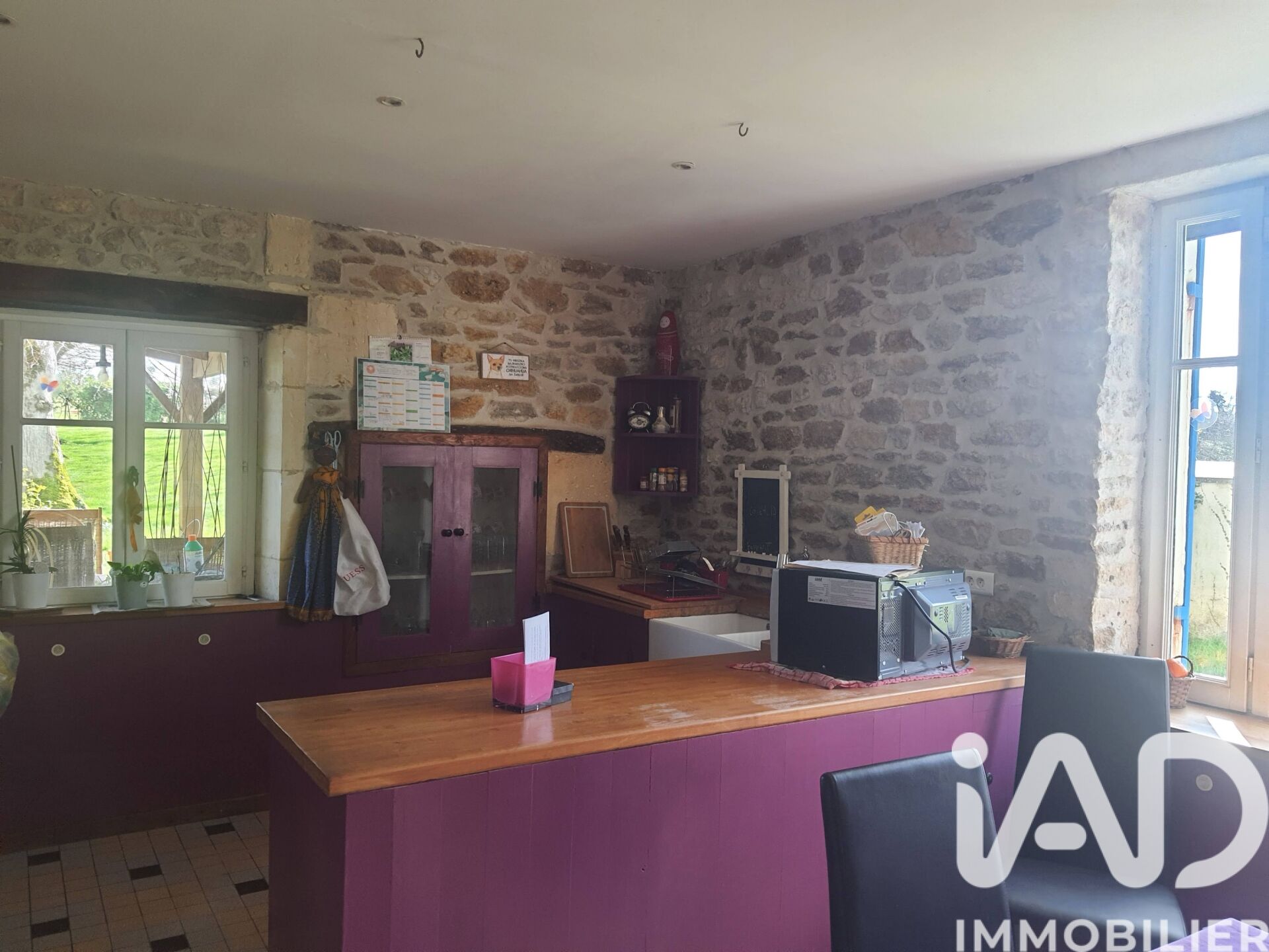 Iad France - Aurélien Trujillo vous propose : MAISON DE CARACTERE 4 CHAMBRES AVEC VASTE JARDIN ET PISCINE. Une charentaise de 202 m² totalement rénovée, avec ses magnifiques pierres apparentes sur un terrain de plus de 3 500 m² avec vaste piscine couverte, qui offre un joli cadre de vie, parfait pour les amoureux de la nature et de l'espace. Au rez-de-chaussée, vous découvrirez une salle à manger avec placards anciens et insert à bois, une cuisine séparée aménagée et équipée avec une cheminée ancienne, une arrière cuisine-buanderie, un salon avec son insert à pellets, une salle d'eau avec WC ainsi qu'une pièce à usage de chambre ou de bureau. À l'étage un premier palier dessert une suite parentale (salle de bains avec baignoire et WC) et son grenier en soupente ainsi qu'une deuxième chambre. Un couloir mène à une troisième chambre ainsi qu'à une salle de bains (baignoire et WC) et à un très grand grenier aménageable qui correspond à l'étage de la dépendance. Cette dépendance de 70 m² environ au sol, peut être transformée selon vos envies et offre un potentiel d'aménagement supplémentaire puisqu'elle communique déjà avec la maison, ou elle permettra de garer des véhicules. À l'extérieur, une terrasse, orientée plein sud, offre une vue sur le grand jardin paysager, comportant de beaux arbres fruitiers et clos de tous côtés. Vous y trouverez également une piscine couverte de belle taille, ainsi qu'un local technique équipé d'un électrolyseur, d'une pompe et de tout le nécessaire pour l'entretien. En outre, vous disposerez d'une petite dépendance, sur petit terrain proche, vous permettant d'y créer, un second garage ou un atelier. La propriété bénéficie d'un système de chauffage à granulés et bois, complété par des radiateurs électriques. Grâce au photovoltaïque, la consommation énergétique réelle est significativement inférieure à celle indiquée dans le diagnostic énergétique. Les amoureux de la nature seront comblés par le vaste terrain, offrant de nombreuses possibilités d'aménagement et leur permettant de stationner plusieurs véhicules. Honoraires d'agence à la charge du vendeur. Information d'affichage énergétique sur ce bien : classe ENERGIE E indice 315 et classe CLIMAT B indice 9. Les informations sur les risques auxquels ce bien est exposé, y compris l'obligation légale de débroussaillement, sont disponibles sur le site Géorisques : http://www.georisques.gouv.fr. La présente annonce immobilière a été rédigée sous la responsabilité éditoriale de M Aurélien Trujillo mandataire indépendant en immobilier (sans détention de fonds), agent commercial de la SAS I@D France immatriculé au RSAC de SAINTES sous le numéro 529168148, titulaire de la carte de démarchage immobilier pour le compte de la société I@D France SAS.
