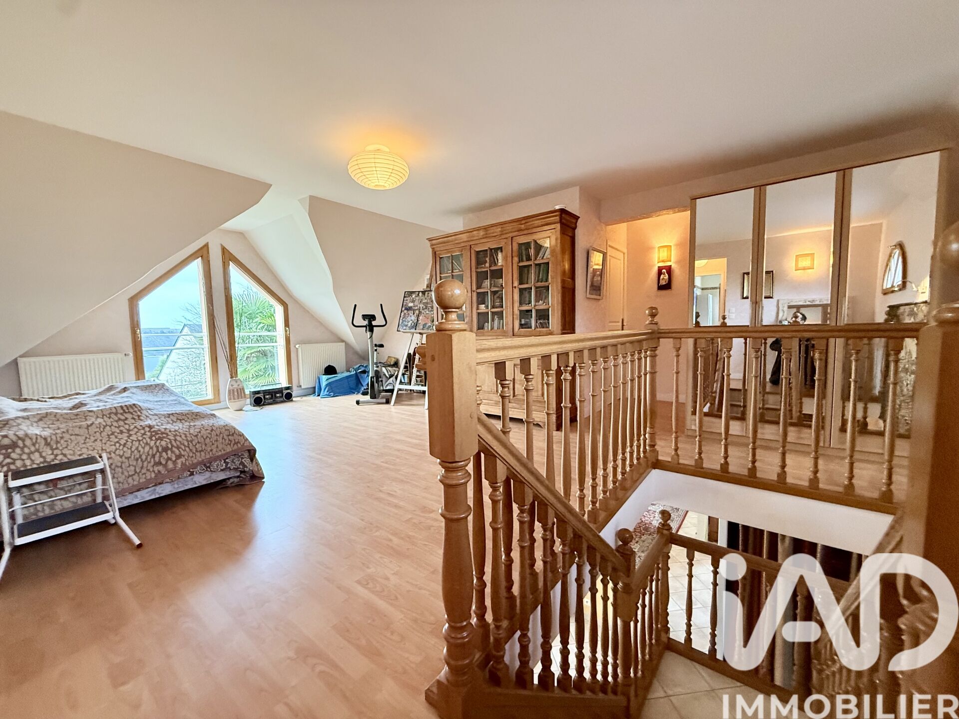 Iad France - Guillaume Manikowski vous propose : En plein cOEur du bourg de Bréhal, à seulement 5 km de la plage et 10 km de Granville, cette maison de 2002 offre 168 m² habitables sur une magnifique parcelle arborée de 1 584 m². Son atout majeur : un superbe jardin exposé plein sud, spacieux et verdoyant, rare en centre-bourg, avec commerces et écoles accessibles à pied. Au rez-de-chaussée : entrée avec rangements, une chambre, une grande salle de douche, un WC, un vaste salon lumineux avec un espace salle à manger équipé d’un poêle à bois, une grande cuisine donnant sur la terrasse, et un accès direct au premier garage bénéficiant d’un espace grenier de rangement. À l’étage : une mezzanine de 31 m² avec vue sur le jardin, trois chambres, une salle de bain (baignoire et douche) et un WC. Un second garage indépendant de 50 m², lumineux et doté de fenêtres sur le jardin, peut être aménagé en dépendance, atelier ou espace professionnel. Un bûcher complète cet ensemble. Honoraires d'agence à la charge du vendeur. Information d'affichage énergétique sur ce bien : classe ENERGIE C indice 134 et classe CLIMAT C indice 20. Les informations sur les risques auxquels ce bien est exposé, y compris l'obligation légale de débroussaillement, sont disponibles sur le site Géorisques : http://www.georisques.gouv.fr. La présente annonce immobilière a été rédigée sous la responsabilité éditoriale de M Guillaume Manikowski mandataire indépendant en immobilier (sans détention de fonds), agent commercial de la SAS I@D France immatriculé au RSAC de COUTANCES sous le numéro 505021618, titulaire de la carte de démarchage immobilier pour le compte de la société I@D France SAS.