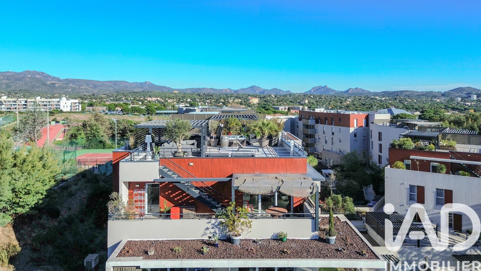 Iad France - Arnaud Guegan vous propose : RARE - VUE MER PANORAMIQUE UNIQUE - ROOFTOP - TRIPLE EXPO Découvrez un cadre de vie d’exception en prenant de la hauteur sur Fréjus. Niché au dernier niveau d’une résidence contemporaine de standing, ce logement Remarquable par son élégance moderne et douceur de vie méditerranéenne espacé sur 103 m² La générosité des volumes et la luminosité naturelle révèlent un aménagement particulièrement harmonieux. Le séjour, spacieux et ouvert sur une cuisine sur mesure raffinée, s’étend vers une première terrasse de plain-pied d’environ 35 m² et une seconde de 10 m². Baignés de lumière tout au long de la journée, grâce à une triple orientation Sud, Ouest et Est. L’espace nuit comprend deux chambres, un salle d'eau et un wc indépendant dans une première aile de l'appartement. La seconde aile dispose d'une suite parentale dotée de sa propre salle d’eau avec son toilette. À l’étage supérieur, accessible par un escalier extérieur privatif, se dévoile la pièce maîtresse du bien : un vaste solarium d’environ 112 m², aménagé avec un jacuzzi 6places et une pergola. Véritable belvédère entre ciel et mer, il offre une vue circulaire exceptionnelle, s’étendant jusqu’au littoral, et constitue un lieu privilégié, idéal pour des moments de détente ou de réception. Un garage double accompagne l’ensemble. La résidence, récente et sécurisée, dispose d’un ascenseur, de la pompe à chaleur gainé ainsi que de la fibre optique. Son emplacement est particulièrement recherché, à proximité immédiate des établissements scolaires, des transports et à quelques minutes seulement des plages, ou des accès autoroute. Un bien rare sur le marché, où chaque élément a été soigneusement pensé afin de proposer un environnement de vie contemporain, raffiné et inspirant. NE TARDEZ PAS A ME CONTACTER ! La presente annonce immobiliere vise 2 lots situés dans une copropriété de 148 lots au total et ne faisant l'objet d'aucune procédure en cours citée à l'article L. 721-1 du code de la construction et de l'habitation. Montant moyen mensuel de charges déclaré par le vendeur : 315€ par mois (soit 3780 € annuel). Honoraires d'agence à la charge du vendeur. Information d'affichage énergétique sur ce bien : classe ENERGIE B indice 81 et classe CLIMAT A indice 2. Les informations sur les risques auxquels ce bien est exposé, y compris l'obligation légale de débroussaillement, sont disponibles sur le site Géorisques : http://www.georisques.gouv.fr. La présente annonce immobilière a été rédigée sous la responsabilité éditoriale de M Arnaud Guegan mandataire indépendant en immobilier (sans détention de fonds), agent commercial de la SAS I@D France immatriculé au RSAC de FREJUS sous le numéro 898326012, titulaire de la carte de démarchage immobilier pour le compte de la société I@D France SAS.