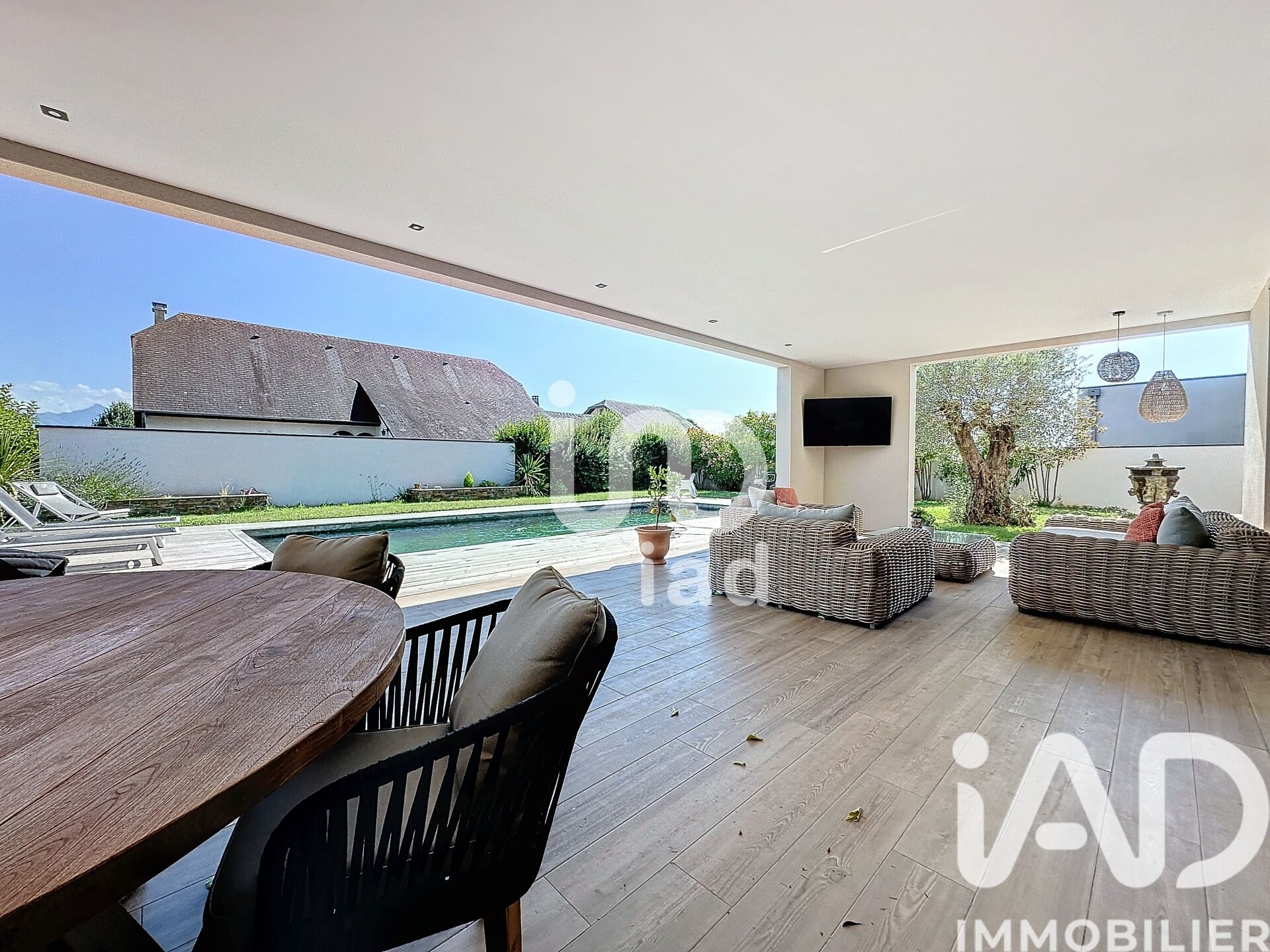 Iad France - Antoine Sanz vous propose : Maison d'architecte contemporaine avec piscine 245 m² de prestations haut de gamme Située dans un environnement privilégié, cette superbe maison d'architecte offre 245 m² de confort et d’élégance, alliant modernité et matériaux de qualité. Dès l’entrée, vous serez séduit par les grands volumes et la luminosité exceptionnelle qu’apporte les grandes baies vitrée à galandage, ouvrant sur un magnifique espace extérieur. - Des espaces de vie pensés pour le confort : Une pièce de vie spacieuse avec une vue dégagée sur la piscine et son Pool-house équipé d'un espace détente avec télévision. Une suite parentale élégante avec dressing et salle de bain privative. 3 chambres supplémentaires aux dimensions généreuses avec salle de douche. Un espace bureau. - Des prestations haut de gamme - Climatisation gainable, assurant un confort thermique optimal toute l’année. - Un double garage, parfait pour stationner vos véhicules et bénéficier d’un espace de stationnement supplémentaire devant la maison. - Des finitions et équipements de qualité, pensés pour répondre aux exigences d’un cadre de vie luxueux et fonctionnel. Une maison d’exception alliant design et confort, à découvrir sans tarder ! Contactez-nous dès maintenant pour organiser une visite et laissez-vous séduire par cette villa unique. Honoraires d'agence à la charge du vendeur. Information d'affichage énergétique sur ce bien : classe ENERGIE A indice 35 et classe CLIMAT A indice 1. Les informations sur les risques auxquels ce bien est exposé, y compris l'obligation légale de débroussaillement, sont disponibles sur le site Géorisques : http://www.georisques.gouv.fr. La présente annonce immobilière a été rédigée sous la responsabilité éditoriale de M Antoine Sanz mandataire indépendant en immobilier (sans détention de fonds), agent commercial de la SAS I@D France immatriculé au RSAC de Tarbes sous le numéro 414130922, titulaire de la carte de démarchage immobilier pour le compte de la société I@D France SAS.