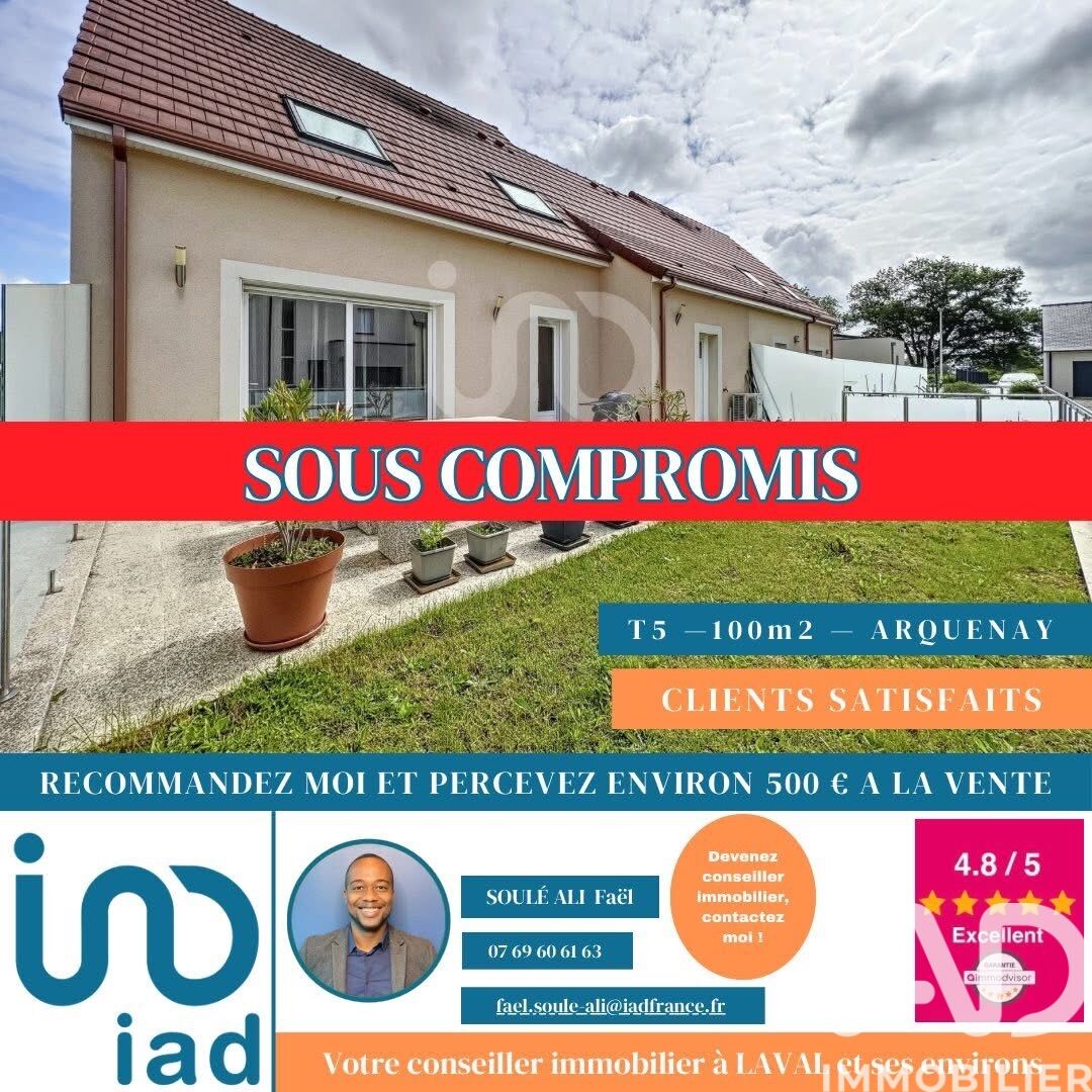 Iad France - Faël Soulé Ali vous propose : 4 CHAMBRES - ACCESSIBLE AUX PERSONNES À MOBILITÉ RÉDUITE - À SAISIR ! Superbe pavillon récent de 100 m² environ, dans la commune d’Arquenay, située à 20 minutes de LAVAL. Ce bien vous séduira par son agencement fonctionnel, et ses matériaux de qualité. Vous découvrirez au rez-de-chaussée, une entrée desservant une charmante pièce de vie baignée de lumière avec un accès immédiat vers terrasse et une cuisine entièrement équipée. Vous trouverez également une agréable chambre avec placards intégrés, une salle d’eau moderne avec une douche adaptée aux personnes à mobilité réduite, ainsi qu’une toilette séparée. À l’étage, un couloir qui vous mènera vers 3 belles chambres d’environ 13 m² environ, avec placards offrants de grands espaces de rangement. Vous trouverez aussi une salle de bain et une toilette séparée. En plus de ces prestations, le bien possède également un cellier donnant directement accès au garage de 20 m² environ. Un spacieux grenier se trouve au-dessus de celui-ci offrant un grand espace de stockage supplémentaire. Le tout est implanté sur une parcelle de 209 m² environ, comprenant un espace vert, une terrasse, un potager, ainsi qu’une citerne. ENVIRONNEMENT CALME — AUCUN TRAVAUX À PRÉVOIR — MATÉRIAUX ET ÉQUIPEMENTS DE QUALITÉ ! Ne manquez pas cette opportunité d'acquérir un pavillon confortable et moderne à 20min de Laval. Contactez-moi pour plus d'informations, un conseiller disponible 7J / 7 pour vos projets d'achats et de ventes. Honoraires d'agence à la charge du vendeur. Information d'affichage énergétique sur ce bien : classe ENERGIE A indice 68 et classe CLIMAT A indice 2. Les informations sur les risques auxquels ce bien est exposé, y compris l'obligation légale de débroussaillement, sont disponibles sur le site Géorisques : http://www.georisques.gouv.fr. La présente annonce immobilière a été rédigée sous la responsabilité éditoriale de M Faël Soulé Ali mandataire indépendant en immobilier (sans détention de fonds), agent commercial de la SAS I@D France immatriculé au RSAC de LAVAL sous le numéro 841763816, titulaire de la carte de démarchage immobilier pour le compte de la société I@D France SAS.