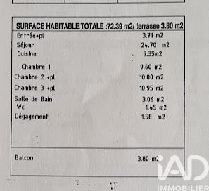 Iad France - Fatiha El Idrissi vous propose : Rue Arthur Rimbaud, __ 3ème étage SANS ascenseur avec vue dégagée, __ Les Grands axes routiers A86 / A3 / N3 à proximité, __ Taxe foncière : 1827, __ Gare de Bondy a 20min à pied (1.5km) / 10min en bus (N°346 / 303), __ Station de Metro Bobigny-Pablo Picasso à 15min en bus (N°146), Appartement de type F4 très bien agencé traversant situé au 3ème étage SANS ascenseur se composant comme suit : entrée, un spacieux et lumineux séjour avec balcon, une cuisine équipée et aménagée, WC séparés, une salle de bains avec baignoire et 3 chambres au calme sans vis a vis. Proche de toutes commodités : écoles, commerces, parcs, transports, marché,. + UNE PLACE DE PARKING. La presente annonce immobiliere vise 2 lots situés dans une copropriété de 18 lots au total et ne faisant l'objet d'aucune procédure en cours citée à l'article L. 721-1 du code de la construction et de l'habitation. Montant moyen mensuel de charges déclaré par le vendeur : 110.83€ par mois (soit 1330 € annuel). Honoraires d'agence à la charge du vendeur. Information d'affichage énergétique sur ce bien : classe ENERGIE C indice 112 et classe CLIMAT C indice 20. Les informations sur les risques auxquels ce bien est exposé, y compris l'obligation légale de débroussaillement, sont disponibles sur le site Géorisques : http://www.georisques.gouv.fr. La présente annonce immobilière a été rédigée sous la responsabilité éditoriale de Mme Fatiha El Idrissi mandataire indépendant en immobilier (sans détention de fonds), agent commercial de la SAS I@D France immatriculé au RSAC de CRETEIL sous le numéro 410 896 633, titulaire de la carte de démarchage immobilier pour le compte de la société I@D France SAS.