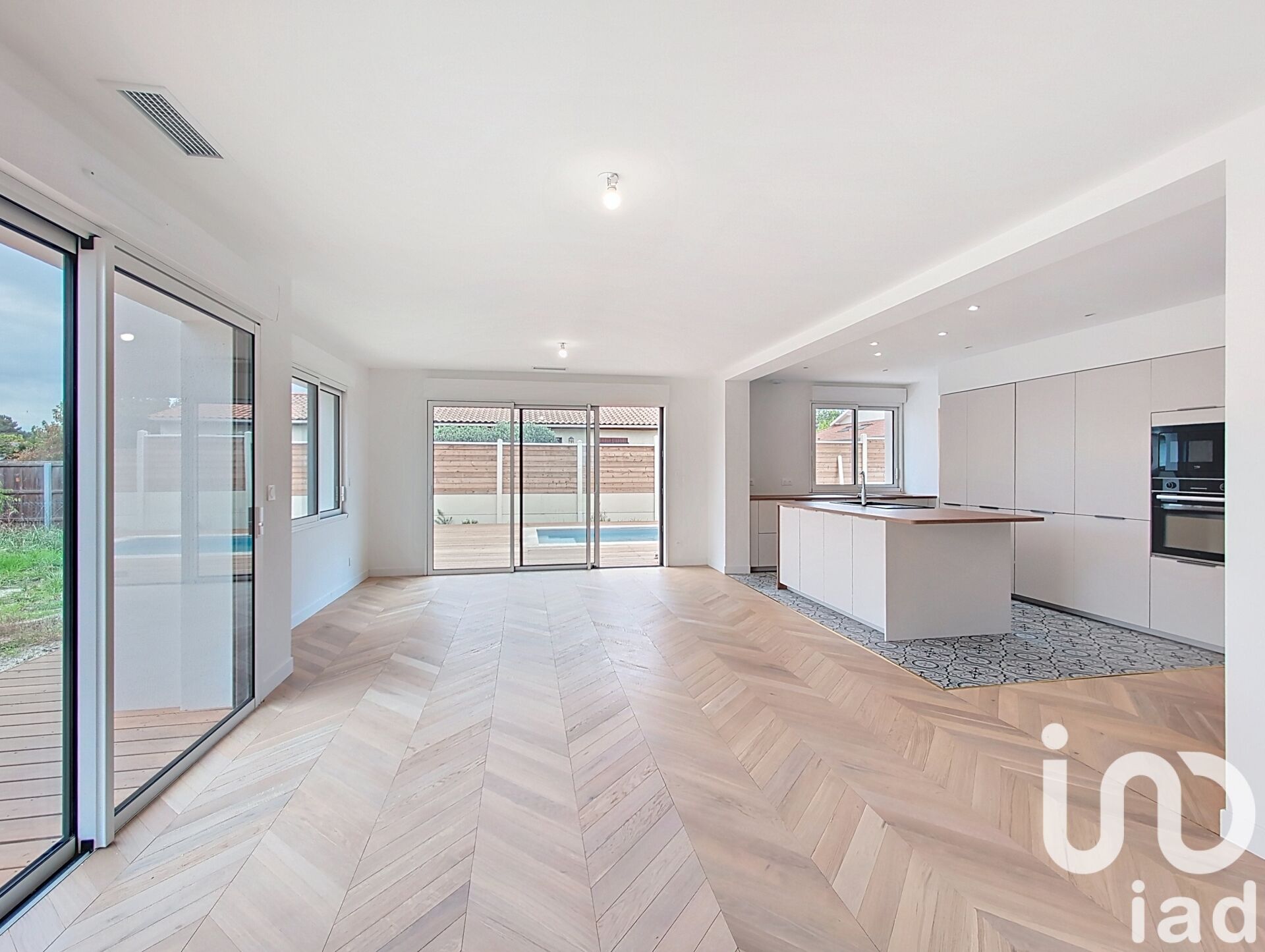Iad France - Marion Laye vous propose : Située dans un quartier recherché de Saint-Médard-en-Jalles, à seulement 15 minutes à pied du centre, des commerces et du marché du samedi matin, cette maison individuelle de plain-pied de 106 m² offre un cadre de vie aussi pratique qu’agréable. Entièrement rénovée en 2025, elle séduit dès l’entrée par ses volumes bien pensés et sa luminosité. Le vaste espace de vie s’articule autour d’un salon-séjour convivial, prolongé par une cuisine ouverte, moderne, aménagée et équipée. Idéale pour accueillir famille et amis, cette pièce centrale bénéficie d’une belle ouverture sur l’extérieur. Côté nuit, trois chambres offrent de beaux volumes, dont une suite parentale avec salle d’eau privative. Un bureau indépendant vient compléter l’ensemble, parfait pour le télétravail ou une activité à domicile. La maison dispose également d’un cellier, d’une salle de bain supplémentaire et de WC séparés. À l’extérieur, le confort se prolonge avec une grande terrasse en bois, une piscine, et un spacieux local technique. Le portail électrique permet l’accès à plusieurs places de stationnement sécurisées. Côté équipements, rien n’a été laissé au hasard : climatisation gainable, isolation performante, prestations actuelles et un excellent DPE A. À seulement 500 mètres du Bus Express G reliant la gare Saint-Jean de Bordeaux, ce bien allie calme résidentiel, mobilité facile et confort moderne, dans l’un des secteurs les plus attractifs de Saint-Médard-en-Jalles. Honoraires d'agence à la charge du vendeur. Information d'affichage énergétique sur ce bien : classe ENERGIE A indice 69 et classe CLIMAT A indice 2. Les informations sur les risques auxquels ce bien est exposé, y compris l'obligation légale de débroussaillement, sont disponibles sur le site Géorisques : http://www.georisques.gouv.fr. La présente annonce immobilière a été rédigée sous la responsabilité éditoriale de Mme Marion Laye mandataire indépendant en immobilier (sans détention de fonds), agent commercial de la SAS I@D France immatriculé au RSAC de Bordeaux sous le numéro 912168879, titulaire de la carte de démarchage immobilier pour le compte de la société I@D France SAS.