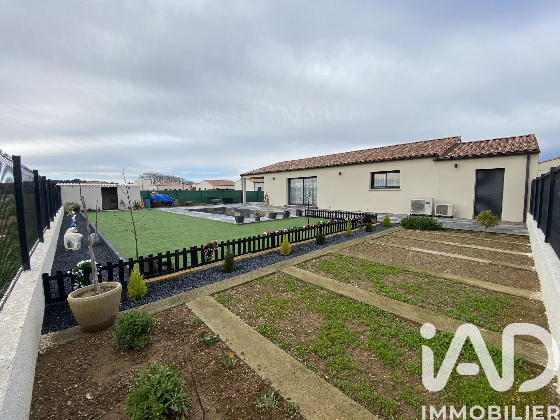 Iad France - Ozlem Oymak vous propose : GINESTAS – VILLA contemporaine 4 faces de 2023 avec PISCINE et VUE DÉGAGÉE. À seulement 20 minutes de NARBONNE et 30 minutes des PLAGES, découvrez cette superbe villa contemporaine 4 FACES construite en 2023, aux NORMES RE2020, offrant des prestations MODERNE et un CONFORT haut de gamme. Implantée sur une PARCELLE de 632 m², cette maison développe 127,5 m² habitables dans un environnement CALME avec une vue totalement DÉGAGÉE sur des terrains agricoles non constructibles (AUCUN VIS-À-VIS, aucune future construction). CÔTÉ INTÉRIEUR Vous serez séduits par une belle PIÈCE DE VIE LUMINEUSE comprenant : - Un grand SÉJOUR spacieux - Une CUISINE moderne entièrement aménagée et équipée avec îlot central - Accès direct à la TERRASSE couverte, à la PISCINE et au JARDIN La PARTIE NUIT se compose de : 3 CHAMBRES avec placards Une SUITE PARENTALE avec : - Dressing - Douche - WC avec lave-mains -Une salle d’eau indépendante avec douche à l’italienne -Un WC indépendant à l’entrée avec lave-mains La maison dispose donc de 3 WC au total. PRESTATIONS & CONFORT -Construction 2023 - Normes RE2020 (performance énergétique optimale) - Climatisation réversible gainable programmable pièce par pièce - Double vitrage - Volets roulants électriques pilotables à distance via application - Spots lumineux intégrés au plafond - Système audio intégré dans le salon (2 enceintes) ANNEXES ET EXTÉRIEURS - Garage avec mezzanine - Terrasse couverte accessible depuis le séjour et la cuisine - Piscine 3,30 m x 8 m (environ 26 m²) - Local technique piscine - Coin potager - Jardin aménagé Le véritable atout de ce bien : une VUE DÉGAGÉE PERMANENTE côté espace de vie et piscine, SANS VIS-À-VIS et SANS POSSIBILITÉ DE CONSTRUCTION FUTURE. MAISON IDÉALE pour une FAMILLE recherchant CONFORT MODERNE, TRANQUILITÉ et QUALITÉ de VIE à proximité de Narbonne et du littoral. Une visite s'impose pour découvrir tout le potentiel de ce bien. Özlem Oymak iad France, votre manager en conseiller immobilier sur Narbonne et alentours. Avis de valeur OFFERT dans tout le département de l'Aude. Me contacter uniquement pour plus d'informations et visite, entièrement ouverte au partage d'affaires, merci de votre compréhension. Honoraires d'agence à la charge du vendeur. Information d'affichage énergétique sur ce bien : classe ENERGIE A indice 36 et classe CLIMAT A indice 1. Les informations sur les risques auxquels ce bien est exposé, y compris l'obligation légale de débroussaillement, sont disponibles sur le site Géorisques : http://www.georisques.gouv.fr. La présente annonce immobilière a été rédigée sous la responsabilité éditoriale de Mme Ozlem Oymak mandataire indépendant en immobilier (sans détention de fonds), agent commercial de la SAS I@D France immatriculé au RSAC de Narbonne sous le numéro 908439755, titulaire de la carte de démarchage immobilier pour le compte de la société I@D France SAS.