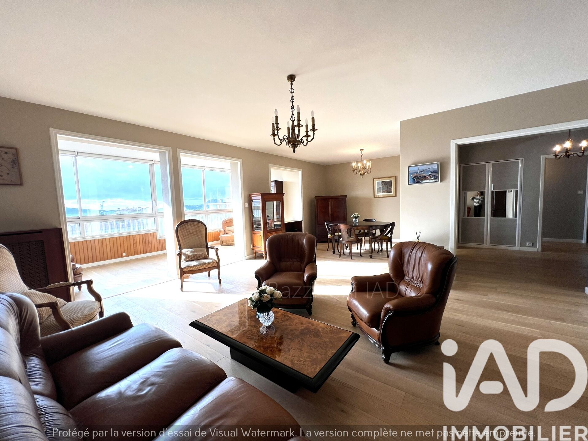Iad France - Nathalie Bazziconi vous propose : Appartement 6 pièces Toulon - Vue panoramique -Haute Ville Claret Offrez-vous un espace de vie confortable à deux pas du centre ville, de la gare SNCF, des facultés, de Ste-Anne avec cet appartement unique de 151 m² situé au 5ème étage d'une résidence de standing avec gardien. Avec ses 6 pièces spacieuses, dont 4 chambres, cet appartement offre un cadre de vie exceptionnel pour les familles ou les amateurs d'espace et de confort. Dès l'entrée, vous serez séduit par la luminosité et l'agencement optimal de cet appartement. Le vaste séjour de 38 m² pièce maîtresse de l’appartement prolongé de sa terrasse fermée de 15 m², offre un espace de vie convivial et lumineux, idéal pour des moments en famille ou entre amis. Les larges baies vitrées vous offrent une vue panoramique sur les environs et la rade, créant une atmosphère apaisante et privilégiée. La cuisine fonctionnelle est à la fois pratique et bien équipée avec son coin repas aménagé dans la loggia de 9 m² et son cellier. L'espace nuit, desservi par un dégagement avec grands placards, propose 4 chambres spacieuses, une salle de bain avec wc. Pour plus de confort et praticité, vous disposez d'une salle d'eau supplémentaire et un wc. Cet appartement dispose d'un ascenseur, digicode, accès PMR. Possibilité d'acquérir un garage en sus. La résidence sécurisée et bien entretenue vous offre une quiétude absolue, tout en étant proche des commodités du quotidien, des écoles, des commerces et des transports en commun. Vous pourrez profiter pleinement de l'exposition Sud et Ouest de ce bien offrant une luminosité naturelle tout au long de la journée. Une remise au goût du jour est à prévoir dans la cuisine, et deux chambres. Ses points forts : À proximité de la gare SNCF, Centre ville, Cinémas, Hôpital Ste-Anne, Ecoles, Pôle Chalucet, Montéty et axes routiers, Possibilité de garage en sous-sol, Beaux volumes 151 m² (Carrez 127 m²) Electricité, chauffe-eau récent, adoucisseur, sols, peintures refaits. Ce bien saura vous séduire par son charme, son potentiel et sa localisation idéale. Une opportunité à ne pas manquer pour vivre dans un environnement privilégié à Toulon. N'attendez plus, contactez-moi pour une visite dès aujourd'hui. La presente annonce immobiliere vise 2 lots situés dans une copropriété de 304 lots au total et ne faisant l'objet d'aucune procédure en cours citée à l'article L. 721-1 du code de la construction et de l'habitation. Montant moyen mensuel de charges déclaré par le vendeur : 236€ par mois (soit 2832 € annuel). Honoraires d'agence à la charge de l'acquéreur. Prix honoraires inclus : 345000 euros. Prix hors honoraires : 331000 euros. Honoraires TTC à la charge de l'acquéreur (4,23% du prix du bien hors honoraires) : 14000 euros. Information d'affichage énergétique sur ce bien : classe ENERGIE C indice 105 et classe CLIMAT C indice 23. Les informations sur les risques auxquels ce bien est exposé, y compris l'obligation légale de débroussaillement, sont disponibles sur le site Géorisques : http://www.georisques.gouv.fr. La présente annonce immobilière a été rédigée sous la responsabilité éditoriale de Mme Nathalie Bazziconi mandataire indépendant en immobilier (sans détention de fonds), agent commercial de la SAS I@D France immatriculé au RSAC de TOULON sous le numéro 878763101, titulaire de la carte de démarchage immobilier pour le compte de la société I@D France SAS.