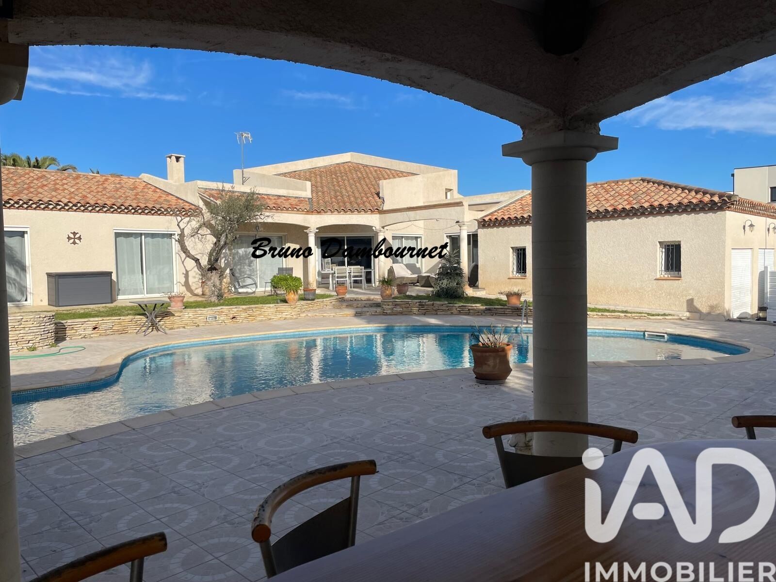 Iad France - Bruno Dambournet vous propose : * MARSEILLAN - LES MOUGERES - VILLA T4 - SANS VIS A VIS - PISCINE - POOL HOUSE - STUDIO INDEPENDANT * Je vous propose cette villa sur le secteur résidentiel des Mougères, à 3 min en voiture du centre ville, au calme sans vis vis entre Marseillan Ville et Marseillan Plage. Cette villa a la particularité d'avoir toutes ses pièces de plain pied et seulement un étage composé d'une mezzanine qui donne accès sur une terrasse avec vue dégagée. Une cave à vin climatisée et un double garage viennent compléter ce bien. Une dépendance type studio accolé au pool house pour passer des moments entre amis ou en famille à l'abri de tous les regards. Photos de l'intérieur sur demande. Et si les vacances étaient votre quotidien. À VISITER SANS TARDER Honoraires d'agence à la charge du vendeur. Information d'affichage énergétique sur ce bien : classe ENERGIE B indice 72 et classe CLIMAT A indice 2. Les informations sur les risques auxquels ce bien est exposé, y compris l'obligation légale de débroussaillement, sont disponibles sur le site Géorisques : http://www.georisques.gouv.fr. La présente annonce immobilière a été rédigée sous la responsabilité éditoriale de M Bruno Dambournet mandataire indépendant en immobilier (sans détention de fonds), agent commercial de la SAS I@D France immatriculé au RSAC de BEZIERS sous le numéro 505 112 318, titulaire de la carte de démarchage immobilier pour le compte de la société I@D France SAS.