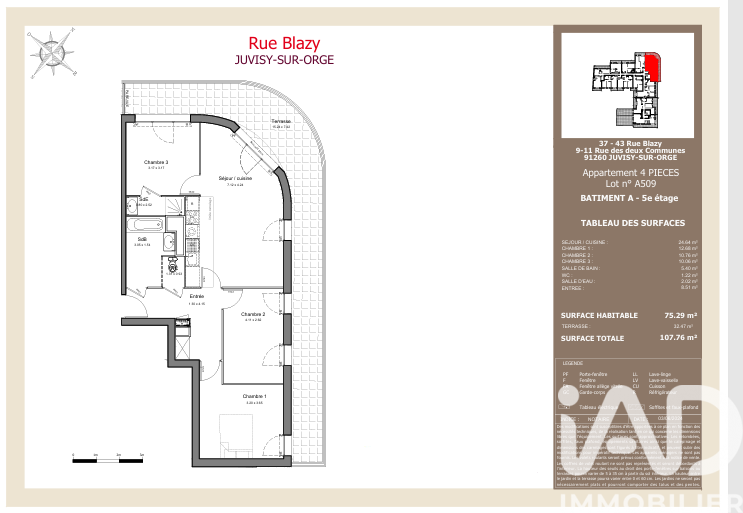 Iad France - Julie De Araujo vous propose : Appartement 4 pièces neuf de 75 m², situé au 5ᵉ étage sur 6 d’une résidence actuellement en cours de construction, avec une livraison prévue en fin d’année. L’appartement se compose d’une entrée, d’un séjour lumineux donnant accès à une grande terrasse de 32 m², de trois chambres dont une suite parentale avec salle d’eau, ainsi que d’une salle de bain avec WC. Deux places de stationnement complètent ce bien. La résidence bénéficie d’un emplacement pratique et familial, avec une école primaire située juste en face. Elle se trouve également à environ 10 minutes à pied de la gare de Juvisy, desservie par les RER C et D, permettant de rejoindre facilement Paris et les environs. Un bien idéal pour une famille ou pour un investissement. La presente annonce immobiliere vise 5 lots situés dans une copropriété de 258 lots au total et ne faisant l'objet d'aucune procédure en cours citée à l'article L. 721-1 du code de la construction et de l'habitation. Montant moyen mensuel de charges déclaré par le vendeur : 100€ par mois (soit 1200 € annuel). Honoraires d'agence à la charge du vendeur. Bien non soumis au DPE. Les informations sur les risques auxquels ce bien est exposé, y compris l'obligation légale de débroussaillement, sont disponibles sur le site Géorisques : http://www.georisques.gouv.fr. La présente annonce immobilière a été rédigée sous la responsabilité éditoriale de Mme Julie De Araujo mandataire indépendant en immobilier (sans détention de fonds), agent commercial de la SAS I@D France immatriculé au RSAC de créteil sous le numéro 842633018, titulaire de la carte de démarchage immobilier pour le compte de la société I@D France SAS.