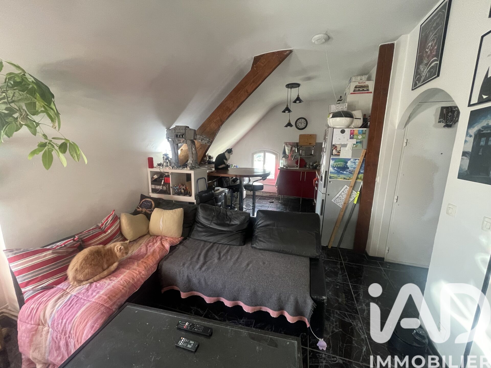 Iad France - Nadine Wanono vous propose : À vendre – Charmant F3 sous combles avec jardin privatif Situé au dernier étage d’un pavillon en centre-ville, découvrez ce joli 3 pièces de 44 m² niché sous les combles, offrant un cadre de vie agréable et fonctionnel, avec de faibles charges de copropriétés. Il se compose d’une entrée, d’un séjour lumineux avec cuisine américaine aménagée et coin repas, d’une salle d’eau avec WC, d’un bureau ainsi que d’une chambre avec espace de rangement. À l’extérieur, vous profiterez d’un jardin privatif au rez-de-chaussée avec une petite dépendance type abri de jardin. Deux caves en sous-sol complètent également ce bien. Emplacement recherché, proche du centre-ville, des commerces du marché et des gares RER C Villeneuve-le-Roi. Idéal pour un premier achat ou un investissement locatif. À VISITER SANS TARDER ! La presente annonce immobiliere vise 3 lots situés dans une copropriété de 5 lots au total et ne faisant l'objet d'aucune procédure en cours citée à l'article L. 721-1 du code de la construction et de l'habitation. Montant moyen mensuel de charges déclaré par le vendeur : 40€ par mois (soit 480 € annuel). Honoraires d'agence à la charge du vendeur. Information d'affichage énergétique sur ce bien : classe ENERGIE F indice 371 et classe CLIMAT F indice 80. Les informations sur les risques auxquels ce bien est exposé, y compris l'obligation légale de débroussaillement, sont disponibles sur le site Géorisques : http://www.georisques.gouv.fr. La présente annonce immobilière a été rédigée sous la responsabilité éditoriale de Mme Nadine Wanono mandataire indépendant en immobilier (sans détention de fonds), agent commercial de la SAS I@D France immatriculé au RSAC de CRETEIL sous le numéro 402 560 155, titulaire de la carte de démarchage immobilier pour le compte de la société I@D France SAS.