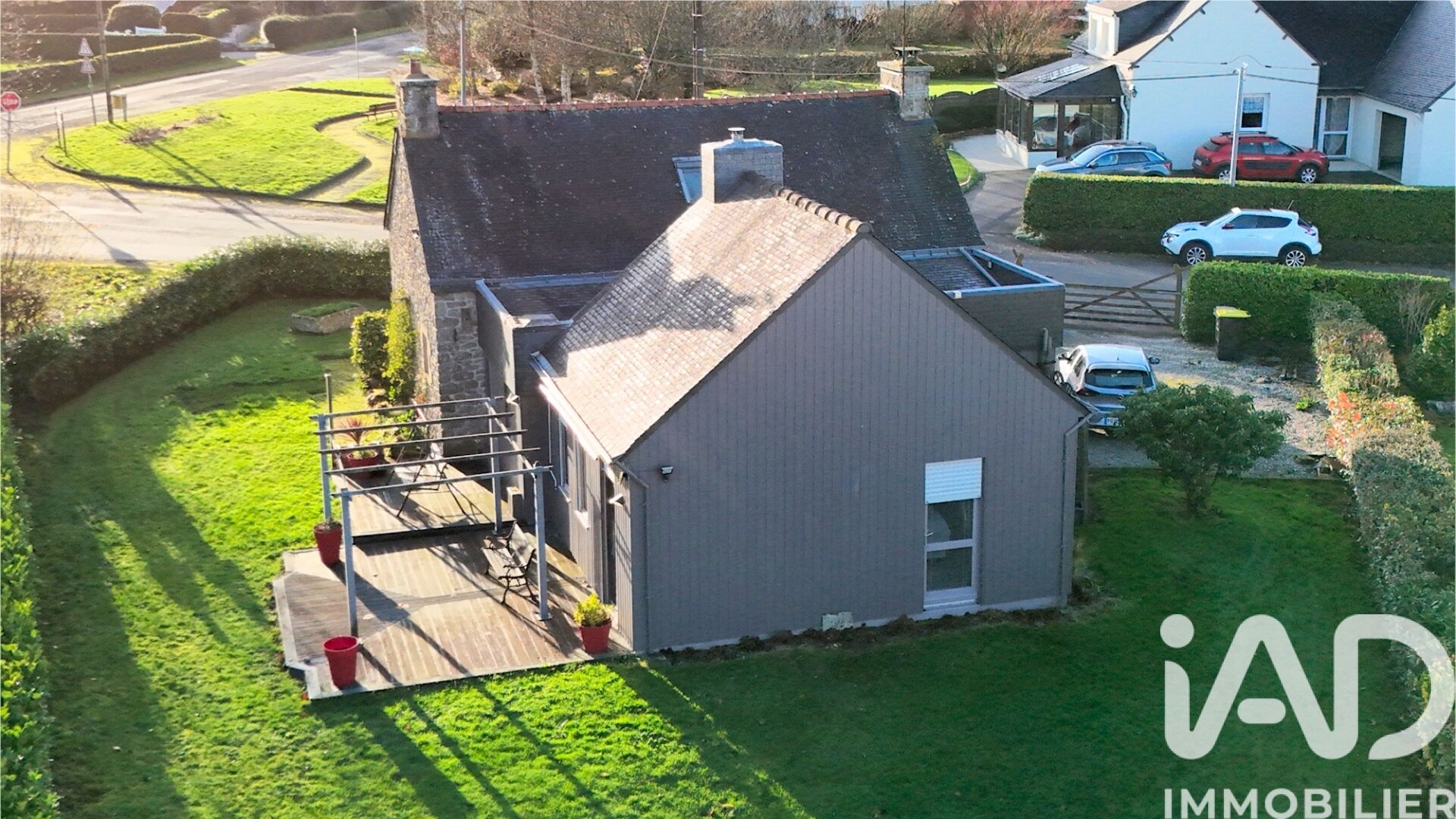 Iad France - Anne SIMON vous propose : À ROSTRENEN, à quelques minutes à pied du centre bourg et de ses commerces, dans un quartier pavillonnaire paisible, belle maison en pierres, édifiée sur 880 m² de terrain. Très lumineuse et bien agencée, cette confortable maison de 125 m² utiles (95 m² hab.) se répartie ainsi : Au REZ-DE-CHAUSSEE : Séjour avec cheminée - Grande cuisine aménagée et équipée - Salle d'eau avec douche et wc - Chambre - wc - Pièce avec accès sur la terrasse et avec un escalier en colimaçon desservant une pièce à terminer d'aménager (bureau, chambre d'ami, salle de jeux. ). ETAGE : Palier - 2 chambres DEPENDANCES : garage incorporé - abri de jardin - terrasse avec pergola. CONFORT : chauffage central au gaz de ville (chaudière 2023) - tout à l'égout - huisseries en double vitrage Une maison de qualité, pleine de charme, en excellent état. Honoraires d'agence à la charge du vendeur. Information d'affichage énergétique sur ce bien : classe ENERGIE D indice 236 et classe CLIMAT B indice 7. Les informations sur les risques auxquels ce bien est exposé, y compris l'obligation légale de débroussaillement, sont disponibles sur le site Géorisques : http://www.georisques.gouv.fr. La présente annonce immobilière a été rédigée sous la responsabilité éditoriale de Mme Anne SIMON mandataire indépendant en immobilier (sans détention de fonds), agent commercial de la SAS I@D France immatriculé au RSAC de LORIENT sous le numéro 435 086 095, titulaire de la carte de démarchage immobilier pour le compte de la société I@D France SAS.
