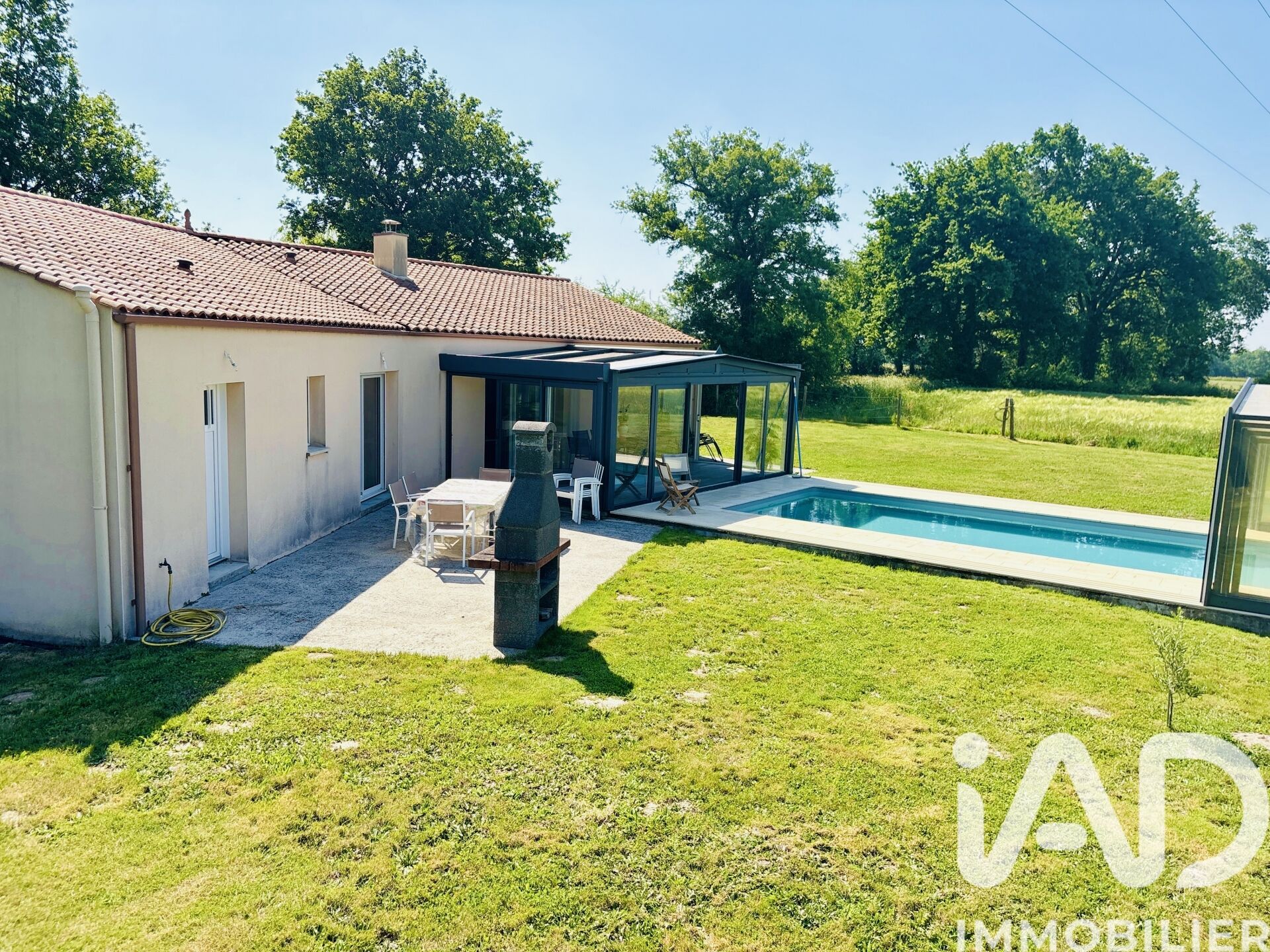 Iad France - Caroline Louineau vous propose : Maison récente 3 chambres avec piscine couverte. Située à Sainte-Flaive-des-Loups, en environnement de campagne, cette maison est parfaitement entretenue et propose des prestations de qualité ainsi qu’un véritable espace détente à l'année grâce à sa piscine chauffée et couverte. Elle se compose d'une entrée avec dressing et WC, d'une grande pièce de vie lumineuse avec poêle à bois, d'une cuisine aménagée et équipée, et d'une véranda qui prolonge l’espace de vie et donne un accès direct à la piscine, chauffée et entièrement couverte par une structure rétractable permettant d’en profiter toute l’année. L’espace nuit bien séparé bénéficie de trois chambres spacieuses. La salle de bain possède à la fois une douche et une baignoire d’angle. Un cellier / buanderie ou se trouve une seconde douche, un double garage avec portes motorisées et un local piscine en bois viennent compléter l'ensemble. La maison est équipée d’un chauffage au sol par pompe à chaleur. À l’extérieur, le terrain exposé plein sud est sans vis-à-vis. Bien coup de coeur ! Honoraires d'agence à la charge du vendeur. Information d'affichage énergétique sur ce bien : classe ENERGIE B indice 105 et classe CLIMAT A indice 3. Les informations sur les risques auxquels ce bien est exposé, y compris l'obligation légale de débroussaillement, sont disponibles sur le site Géorisques : http://www.georisques.gouv.fr. La présente annonce immobilière a été rédigée sous la responsabilité éditoriale de Mme Caroline Louineau mandataire indépendant en immobilier (sans détention de fonds), agent commercial de la SAS I@D France immatriculé au RSAC de La-Roche-sur-Yon sous le numéro 913544326, titulaire de la carte de démarchage immobilier pour le compte de la société I@D France SAS.