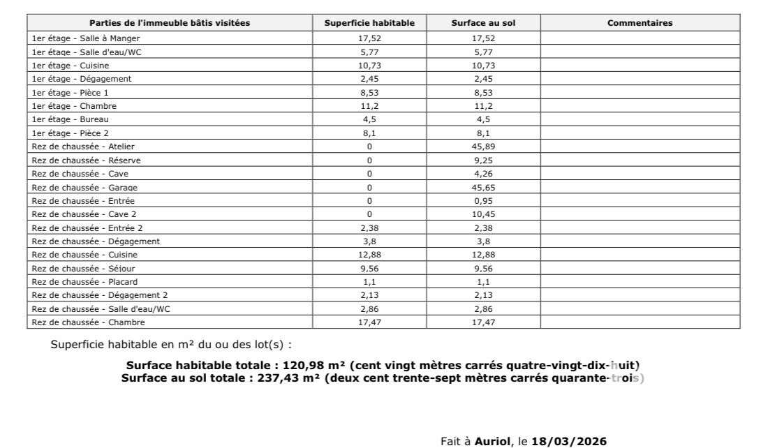 Iad France - Marine Gomez vous propose : AURIOL - Magnifique bastide familiale de caractère des années 1800 rénovée dans les années 1980. Édifiée sur un terrain d’environ 1600 m², la propriété se compose au Rez-chaussée, d’un premier appartement (environ 50 m²) avec 1 chambre, une cuisine ouverte sur séjour, une salle d’eau et une cave. Possibilité de relier avec le 1er étage qui lui est habitable (environ 70 m²) actuellement avec une séjour et une cuisine, 3 petites chambres (surfaces dans les photos de l’annonce) et une salle d’eau avec wc. Un grand garage de plus de 40 m² est attenant à la maison. De nombreuses annexes types cave et ateliers (près de 60 m² supplémentaire) Beaucoup de potentiel pour cette bastide. Des travaux sont à prévoir pour lui redonner l’allure qu’elle mérite ! Proximité du village, des commodités et des axes autoroutiers. Plans et surfaces dans les dernières photos de l’annonce. Honoraires d'agence à la charge du vendeur. Information d'affichage énergétique sur ce bien : classe ENERGIE D indice 249 et classe CLIMAT B indice 10. Les informations sur les risques auxquels ce bien est exposé, y compris l'obligation légale de débroussaillement, sont disponibles sur le site Géorisques : http://www.georisques.gouv.fr. La présente annonce immobilière a été rédigée sous la responsabilité éditoriale de Mme Marine Gomez mandataire indépendant en immobilier (sans détention de fonds), agent commercial de la SAS I@D France immatriculé au RSAC de MARSEILLE sous le numéro 948656343, titulaire de la carte de démarchage immobilier pour le compte de la société I@D France SAS.