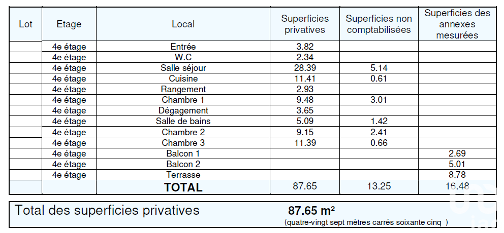 Iad France - Elodie Lanselle vous propose : Appartement T4 – Dernier étage avec 1 terrasse, 2 balcons et 2 parkings – Bezons quartier Les Chênes - Calme et recherché, limite Houilles. Aucun travaux à prévoir. Découvrez ce superbe T4 de 87,65 m² habitables (100,90 m² au sol), situé au 4 ème et dernier étage avec ascenseur dans une résidence récente (2014), parfaitement entretenue. Ce que vous allez adorer : - Double séjour lumineux de 30 m² avec terrasse de 8,78 m² (exposition ouest, vue dégagée) - Cuisine semi ouverte de 12 m² avec cellier + balcon - 3 belles chambres, dont 2 avec accès à l’extérieur (balcon et terrasse) - Salle de bain moderne avec baignoire + douche, WC indépendant avec buanderie Résidence sécurisée avec digicode, interphone, ascenseur et accès PMR. 2 places de stationnement incluses (sous-sol + extérieur) À proximité directe des commerces, écoles, bus, à 10 min du T2 Pont de Bezons. DPE D / GES B, fibre, chauffage individuel, aucun travaux à prévoir. La presente annonce immobiliere vise 3 lots situés dans une copropriété de 29 lots au total et ne faisant l'objet d'aucune procédure en cours citée à l'article L. 721-1 du code de la construction et de l'habitation. Montant moyen mensuel de charges déclaré par le vendeur : 235€ par mois (soit 2820 € annuel). Honoraires d'agence à la charge du vendeur. Information d'affichage énergétique sur ce bien : classe ENERGIE D indice 194 et classe CLIMAT B indice 6. Les informations sur les risques auxquels ce bien est exposé, y compris l'obligation légale de débroussaillement, sont disponibles sur le site Géorisques : http://www.georisques.gouv.fr. La présente annonce immobilière a été rédigée sous la responsabilité éditoriale de Mme Elodie Lanselle mandataire indépendant en immobilier (sans détention de fonds), agent commercial de la SAS I@D France immatriculé au RSAC de PONTOISE sous le numéro 952376648, titulaire de la carte de démarchage immobilier pour le compte de la société I@D France SAS.