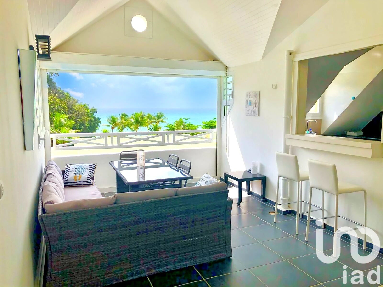 Iad France - Isabelle Alankiewicz vous propose : Appartement T4 avec Vue Mer – Élégance et Confort à Dampierre, Le Gosier Découvrez ce superbe appartement de 98 m², situé au 2ᵉ étage d’une résidence sécurisée, dans le secteur recherché de Dampierre, Le Gosier. Un cadre de vie privilégié entre calme, proximité de la mer et commodités. Dès l’entrée, vous serez séduit par les volumes généreux et la luminosité naturelle des lieux. L’espace de vie comprend une cuisine équipée ouverte sur un séjour spacieux, un salon chaleureux et une salle à manger conviviale, parfaits pour partager des moments en famille ou entre amis, le tout s’ouvrant sur une magnifique vue mer. L’appartement dispose de trois chambres, dont une mezzanine originale bénéficiant de larges baies vitrées panoramiques offrant une vue imprenable sur le séjour et l’horizon. La suite parentale combine espace, dressing, salle de bain et toilettes privatives, garantissant confort et intimité. Une troisième chambre avec dressing, située à proximité d’une salle d’eau et de toilettes indépendantes, complète l’ensemble. Une place de parking sécurisée vient parfaire ce bien. L’appartement est vendu non meublé, avec possibilité d’acquérir le mobilier en supplément. Idéalement situé à quelques minutes des plages de sable blanc et de toutes les commodités, ce bien constitue un excellent choix pour une résidence principale, une résidence secondaire ou un investissement locatif. Ne manquez pas cette opportunité rare d’acquérir un appartement alliant emplacement, confort et vue d’exception. Contactez-moi dès aujourd’hui pour organiser une visite et laissez-vous séduire par ce bijou immobilier au Gosier ! La presente annonce immobiliere vise 2 lots situés dans une copropriété de 274 lots au total et ne faisant l'objet d'aucune procédure en cours citée à l'article L. 721-1 du code de la construction et de l'habitation. Montant moyen mensuel de charges déclaré par le vendeur : 105.75€ par mois (soit 1269 € annuel). Honoraires d'agence à la charge du vendeur. Bien non soumis au DPE. Les informations sur les risques auxquels ce bien est exposé, y compris l'obligation légale de débroussaillement, sont disponibles sur le site Géorisques : http://www.georisques.gouv.fr. La présente annonce immobilière a été rédigée sous la responsabilité éditoriale de Mme Isabelle Alankiewicz mandataire indépendant en immobilier (sans détention de fonds), agent commercial de la SAS I@D France immatriculé au RSAC de POINTE A PITRE sous le numéro 839204674, titulaire de la carte de démarchage immobilier pour le compte de la société I@D France SAS.