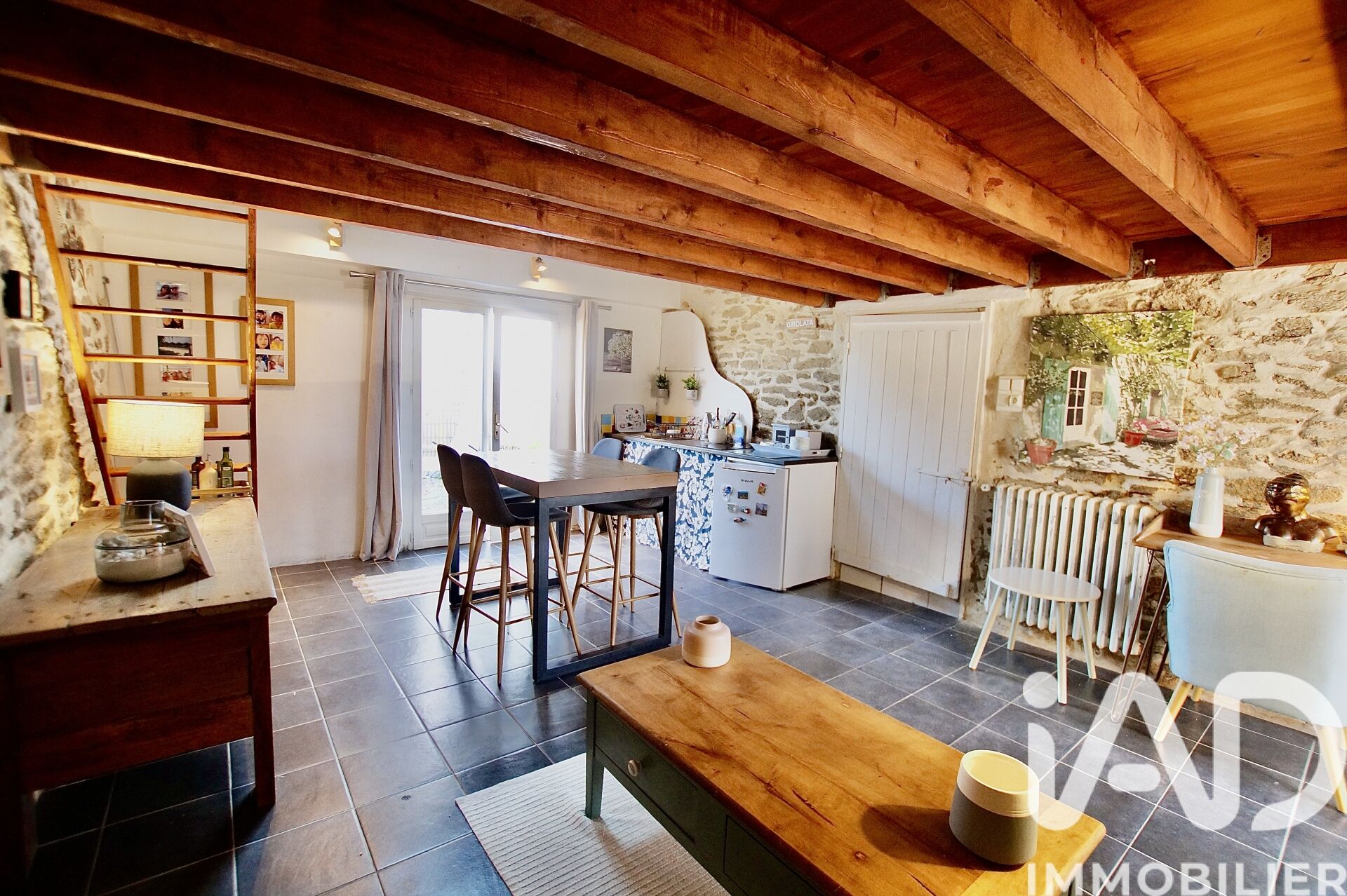 Iad France - Marietta Pallaro vous propose : Charmante maison de 132 m² située dans un village très agréable à 3 mn du centre de Guérande, au calme sur une parcelle de terrain de 640 m². Elle propose au RDC, un salon séjour avec cheminée exposé Sud Ouest donnant sur terrasse, une cuisine aménagée et équipée, une chambre, une salle d'eau, un WC indépendant ainsi qu'un espace technique avec chaudière. À l'étage, un dégagement palier dessert un bureau, ainsi que 2 chambres dont une très vaste. En annexe : une dépendance en pierre dans le prolongement de la maison principale de type grand studio avec espace couchage en mezzanine, une salle de bain avec WC et sa terrasse complète ce bien. Il peut être loué car il possède un accès indépendant. Un grand espace de stockage (garage) est existant également. Maison de charme, atypique, avec une partie en pierre offrant un beau potentiel d'évolution en fonction de vos besoins. Si vous souhaitez des renseignements, des photos complémentaires ou bien prévoir une visite, je suis à votre entière disposition. Honoraires d'agence à la charge de l'acquéreur. Prix honoraires inclus : 348000 euros. Prix hors honoraires : 335000 euros. Honoraires TTC à la charge de l'acquéreur (3,88% du prix du bien hors honoraires) : 13000 euros. Information d'affichage énergétique sur ce bien : classe ENERGIE E indice 264 et classe CLIMAT E indice 67. Les informations sur les risques auxquels ce bien est exposé, y compris l'obligation légale de débroussaillement, sont disponibles sur le site Géorisques : http://www.georisques.gouv.fr. La présente annonce immobilière a été rédigée sous la responsabilité éditoriale de Mme Marietta Pallaro mandataire indépendant en immobilier (sans détention de fonds), agent commercial de la SAS I@D France immatriculé au RSAC de SAINT NAZAIRE sous le numéro 790997845, titulaire de la carte de démarchage immobilier pour le compte de la société I@D France SAS.