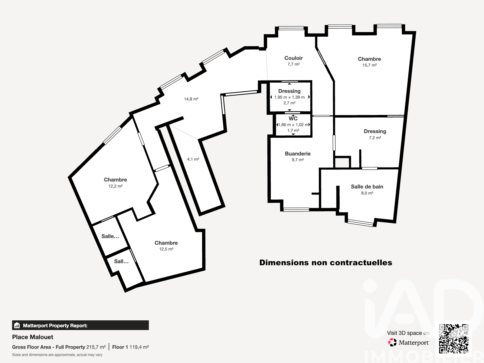 Iad France - Igor Medjean vous propose : Situé en plein cOEur de Riom, au deuxième et dernier étage d’un immeuble de caractère, ce superbe appartement en duplex d'une surface de 167 m². Le premier niveau dispose d'une entrée, deux suites parentales, une chambre avec dressing, un dressing indépendant, une salle de bains et douche, une buanderie ainsi que des WC séparés. L’agencement offre un confort de vie optimal et une vraie indépendance des espaces nuit. À l’étage, l’appartement s’ouvre sur un double séjour lumineux de 40 m² donnant accès à un balcon filant avec vue dégagée. Une pièce palière permet d’organiser un espace bureau ou détente. La cuisine avec espace salle à manger bénéficie également d’un accès direct au balcon filant et d’une vue dégagée. Des WC indépendants complètent ce niveau. Ce bien rare dispose de cinq caves, d’une place de parking fermée, d’un chauffage électrique, d'une installation électrique aux normes et de menuiseries en double vitrage. Un appartement aux volumes remarquables, idéal pour une vie citadine confortable, au calme et à proximité immédiate de toutes les commodités. La présente annonce est soumise à la vente Interactive. Prix de départ : 290 000€. La vente interactive est un mode de vente immobilière digitale reposant sur un principe d’enchères en ligne. Elle permet aux acquéreurs de déposer facilement, en ligne, leurs offres d'achat à l'intention du vendeur. Le vendeur peut contresigner en ligne et à tout moment, toute offre d'achat dont le prix et les conditions lui conviennent. Il n'est contraint par aucune offre d'achat, quel que soit le montant de celle-ci. La presente annonce immobiliere vise 6 lots situés dans une copropriété de 15 lots au total et ne faisant l'objet d'aucune procédure en cours citée à l'article L. 721-1 du code de la construction et de l'habitation. Montant moyen mensuel de charges déclaré par le vendeur : 227.42€ par mois (soit 2729 € annuel). Honoraires d'agence à la charge du vendeur. Information d'affichage énergétique sur ce bien : classe ENERGIE D indice 180 et classe CLIMAT A indice 5. Les informations sur les risques auxquels ce bien est exposé, y compris l'obligation légale de débroussaillement, sont disponibles sur le site Géorisques : http://www.georisques.gouv.fr. La présente annonce immobilière a été rédigée sous la responsabilité éditoriale de M Igor Medjean mandataire indépendant en immobilier (sans détention de fonds), agent commercial de la SAS I@D France immatriculé au RSAC de AUXERRE sous le numéro 498189828, titulaire de la carte de démarchage immobilier pour le compte de la société I@D France SAS.