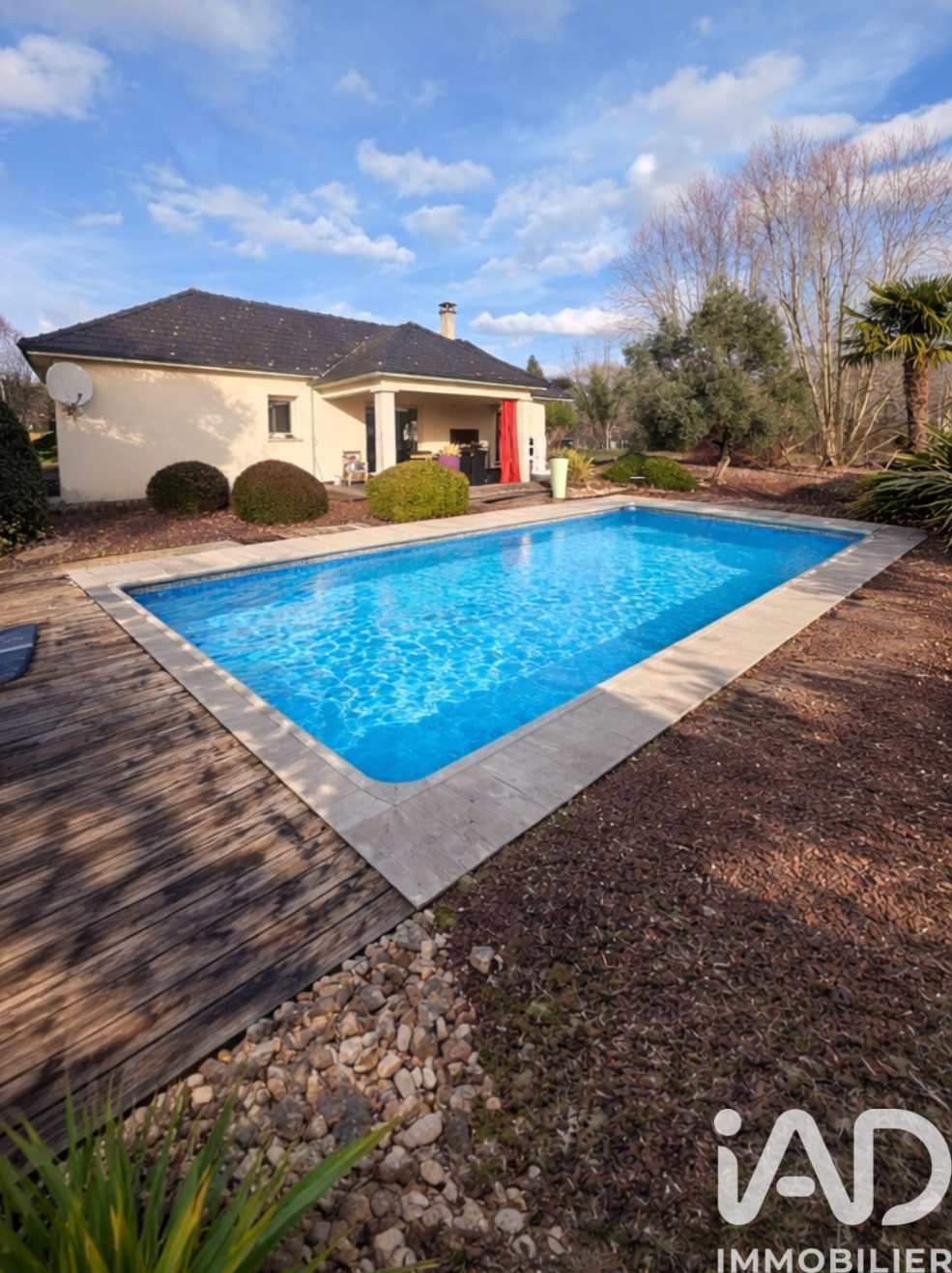 Iad France - Guillaume Squeren vous propose : Superbe maison entièrement de plain pied avec un patio intérieur et une très grande pièce de vie lumineuse. Si vous aimez le calme et la lumière, cette maison est faite pour vous. Sur le terrain vous pourrez également profiter d'une belle piscine 10m / 5 m et un très grand double garage de 60 m². Vous entrerez par un hall spacieux qui donne accès à la belle pièce de vie de 86 m² avec cuisine ouverte. La cuisine est très fonctionnelle et bien pensée. C'est une Mobalpa. Toute la maison est articulée autour d'un beau patio intérieur de qui amène de la lumière tout au long de la journée. À droite du patio et attenant à la pièce ce vie vous pourrez profiter d'un très belle suite parentale de 24 m² avec une salle de bain. L'ensemble est est magnifiquement carrelé avec du travertin. Un couloir dessert également 3 grande chambres de 12,12 et 13.5 m² ainsi qu'une salle de bain de 5 m². Attenant à la cuisine vous aurez également un cellier de 6 m². Le terrain de 4162 entièrement plat est arboré et clôturé. Il donne une belle vue sur la campagne environnante sans vis à vis direct avec les voisins. Les propriétaires actuels avaient un cheval et louais un grande surface derrière la maison. Il y'a toujours le box à cheval sur le terrain. Le garage de 60 m² possède une mezzanine qui permet également de stocker du matériel. Il y'a l'eau et l'électricité. L'entrée de la maison et de la cour est entièrement goudronné. Cette maison très économique est chauffée par géothermie et ne possède actuellement pas la clim car il n'y en avait pas besoin. Elle est très bien isolée. Il n'y a pas de travaux à prévoir si ce n'est un petit coup de peinture dans certaine pièce pour redonner un peu d'éclat. Le secteur est très prisé car vous serez proche de Meyssac et toutes ces commodités mais également de Brive qui est à environ 15 minutes. Honoraires d'agence à la charge du vendeur. Information d'affichage énergétique sur ce bien : classe ENERGIE B indice 109 et classe CLIMAT A indice 4. Les informations sur les risques auxquels ce bien est exposé, y compris l'obligation légale de débroussaillement, sont disponibles sur le site Géorisques : http://www.georisques.gouv.fr. La présente annonce immobilière a été rédigée sous la responsabilité éditoriale de M Guillaume Squeren mandataire indépendant en immobilier (sans détention de fonds), agent commercial de la SAS I@D France immatriculé au RSAC de BRIVE sous le numéro 502977333, titulaire de la carte de démarchage immobilier pour le compte de la société I@D France SAS.