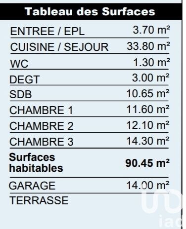 Iad France - Lucie Jouan vous propose : Venez découvrir ce bel appartement de 87 m² situé en rez-de-chaussée d'une résidence moderne construite en 2022, à deux pas du quartier de Tohannic à Vannes et de toutes les commodités. Traversant du nord au sud, il offre une grande pièce de vie de 38 m², comprenant une cuisine moderne ouverte sur le salon-séjour, le tout donnant sur une terrasse et un jardin privatif de 82 m² exposés sud, un espace parfait pour profiter des beaux jours dans un environnement calme. L'espace nuit se compose de trois chambres, dont une de 13 m² avec placards intégrés. Une salle d'eau moderne et un toilette séparé viennent compléter cet espace. Pour plus de praticité au quotidien, vous bénéficiez d’un placard à l'entrée, d’une buanderie attenante à la cuisine, d’une cave privée, ainsi que de deux places de stationnement privatives. Côté confort : chauffage individuel au gaz, accès PMR, fibre optique. Un emplacement idéal : - Le port à 8 min en voiture / 12 min à vélo - Arrêt de bus à 3 min à pied - Commerces (boulangerie, supermarché, pharmacie) à moins de 3 min en voiture La presente annonce immobiliere vise 4 lots situés dans une copropriété de 77 lots au total et ne faisant l'objet d'aucune procédure en cours citée à l'article L. 721-1 du code de la construction et de l'habitation. Montant moyen mensuel de charges déclaré par le vendeur : 105.17€ par mois (soit 1262 € annuel). Honoraires d'agence à la charge du vendeur. Information d'affichage énergétique sur ce bien : classe ENERGIE C indice 60 et classe CLIMAT C indice 12. Les informations sur les risques auxquels ce bien est exposé, y compris l'obligation légale de débroussaillement, sont disponibles sur le site Géorisques : http://www.georisques.gouv.fr. La présente annonce immobilière a été rédigée sous la responsabilité éditoriale de Mme Lucie Jouan mandataire indépendant en immobilier (sans détention de fonds), agent commercial de la SAS I@D France immatriculé au RSAC de VANNES sous le numéro 941199945, titulaire de la carte de démarchage immobilier pour le compte de la société I@D France SAS.