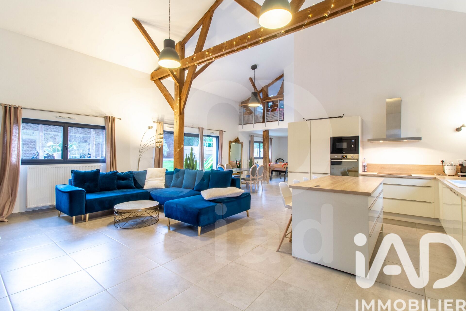 Iad France - Vincent LE BRAS vous propose : En exclusivité au sein du réseau iad France, située dans un environnement calme à Vandélicourt (7 min de Ressons sur Matz ), à l'abri des regards, venez découvrir cette ancienne grange rénovée en loft, vivable de plain pied, elle comprend : Une entrée avec dressing, s'ouvrant sur une pièce de vie de 78 m² avec toit cathédrale comprenant salle à manger / salon / cuisine aménagée et équipée. On continue avec une buanderie / chaufferie de 9 m², un espace parentale avec chambre / dressing / salle d'eau et un WC séparé. Pour terminer le rez de chaussée on retrouve une 2 ème chambre de 16,4 m² actuellement aménagée en salle de jeu. À l'étage, on découvre un espace bibliothèque / mezzanine, un dégagement avec de nombreux rangements dessert 3 chambres de 9,6 / 11 et 13 m² et une salle de bains avec Wc. Coté jardin, clos et sans vis à vis, on retrouve un préau couvert de 170 m² agrémenté d'un sol en pavé permettant de stationner plusieurs véhicules. On retrouve également un espace de verdure, un terrain de pétanque, une terrasse accessible depuis le séjour. Confort : Chauffage par pompe à chaleur, ballon thermodynamique, Double vitrage PVC, volets roulants électriques, fibre optique, tout à l'égout. Rénovation complète en 2017. Foncier : 1528e Contactez moi pour plus d'informations et l'organisation d'une visite. Honoraires d'agence à la charge du vendeur. Information d'affichage énergétique sur ce bien : classe ENERGIE B indice 98 et classe CLIMAT A indice 3. Les informations sur les risques auxquels ce bien est exposé, y compris l'obligation légale de débroussaillement, sont disponibles sur le site Géorisques : http://www.georisques.gouv.fr. La présente annonce immobilière a été rédigée sous la responsabilité éditoriale de M Vincent LE BRAS mandataire indépendant en immobilier (sans détention de fonds), agent commercial de la SAS I@D France immatriculé au RSAC de COMPIEGNE sous le numéro 820394591, titulaire de la carte de démarchage immobilier pour le compte de la société I@D France SAS.