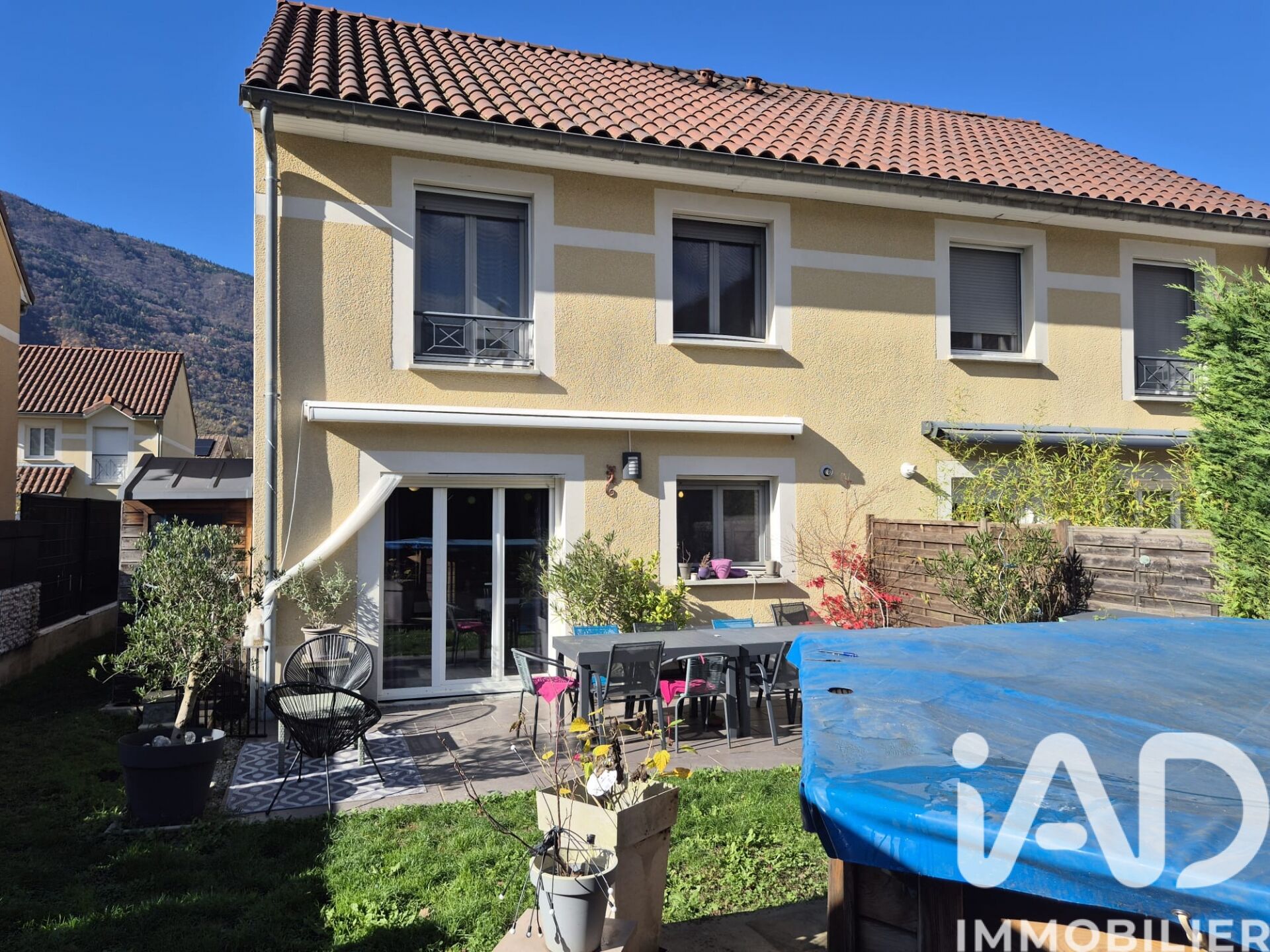 Iad France - Johan Caputo vous propose : Cette superbe maison récente, jumelée, d'une surface de 88 m² sur un terrain clos et aménagé de plus de 200 m². Vous serez séduit par la qualité de sa construction, ses extérieurs, tout comme l'atmosphère qu'il s'en dégage. La maison équipée dune climatisation réversible, dispose d'une cuisine équipée donnant sur une salle à manger avec un accès à une terrasse extérieur équipée d'un store banne. Un grand salon vient compléter cette pièce de vie située en Rez-de -chaussée. À l'étage, Trois chambres équipées de nombreux rangements, une salle de bain équipée d'un meuble double vasque avec miroir, d'un sèche serviette, d'une douche, d'un WC ainsi qu'un meuble de rangement. Les extérieurs entièrement aménagés avec des matériaux de qualités. Grande terrasse ombragé exposition EST / SUD EST, piscine 4m10 de diamètre X 1 m²0 de hauteur avec electrolyseur au sel, cabanon de jardin ainsi qu'un coin détente. Le garage a été scinder en deux afin de créer un box ainsi qu'un cellier. Cette maison a été bâtie dans un secteur agréable au sein d'un lotissement calme. Commodités à 10 min à pieds (école, boulangerie, épicerie, arrêt de bus) Super marché à 5 min en voiture. Gare SNCF à moins de 10 min en voiture Honoraires d'agence à la charge du vendeur. Information d'affichage énergétique sur ce bien : classe ENERGIE C indice 121 et classe CLIMAT C indice 14. Les informations sur les risques auxquels ce bien est exposé, y compris l'obligation légale de débroussaillement, sont disponibles sur le site Géorisques : http://www.georisques.gouv.fr. La présente annonce immobilière a été rédigée sous la responsabilité éditoriale de M Johan Caputo mandataire indépendant en immobilier (sans détention de fonds), agent commercial de la SAS I@D France immatriculé au RSAC de GRENOBLE sous le numéro 880300983, titulaire de la carte de démarchage immobilier pour le compte de la société I@D France SAS.