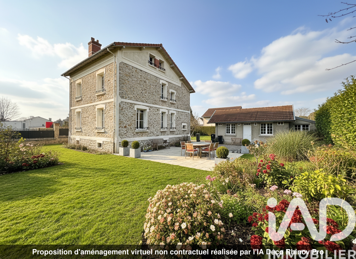 Iad France - Claire Vinson vous propose : À vendre à proximité du centre-ville et des commodités accessibles à pied, cette maison meulière de 1930 développe environ 182 m² habitables répartis sur trois niveaux, et est édifiée sur un terrain clos de 1 000 m² sans vis-à-vis. Le rez-de-chaussée comprend une entrée desservant un séjour et une salle à manger pour une surface d’environ 37 m², une cuisine indépendante aménagée, une chambre actuellement utilisée comme bureau ainsi qu’un WC. Le premier étage accueille trois chambres aux surfaces confortables (environ 14,19 et 16 m²), une salle de bains et une salle d’eau avec WC. Au deuxième étage, deux chambres supplémentaires d’environ 16 et 19 m², complétées par des espaces attenants sous pente pouvant servir de rangements ou de dressing. La maison est élevée sur cave totale. Le terrain permet le stationnement de plusieurs véhicules et comprend un garage. Un bien de caractère, offrant de beaux volumes et un fort potentiel, idéal pour accueillir une famille. Honoraires d'agence à la charge du vendeur. Information d'affichage énergétique sur ce bien : classe ENERGIE F indice 350 et classe CLIMAT F indice 77. Les informations sur les risques auxquels ce bien est exposé, y compris l'obligation légale de débroussaillement, sont disponibles sur le site Géorisques : http://www.georisques.gouv.fr. La présente annonce immobilière a été rédigée sous la responsabilité éditoriale de Mme Claire Vinson mandataire indépendant en immobilier (sans détention de fonds), agent commercial de la SAS I@D France immatriculé au RSAC de VERSAILLES sous le numéro 934807983, titulaire de la carte de démarchage immobilier pour le compte de la société I@D France SAS.