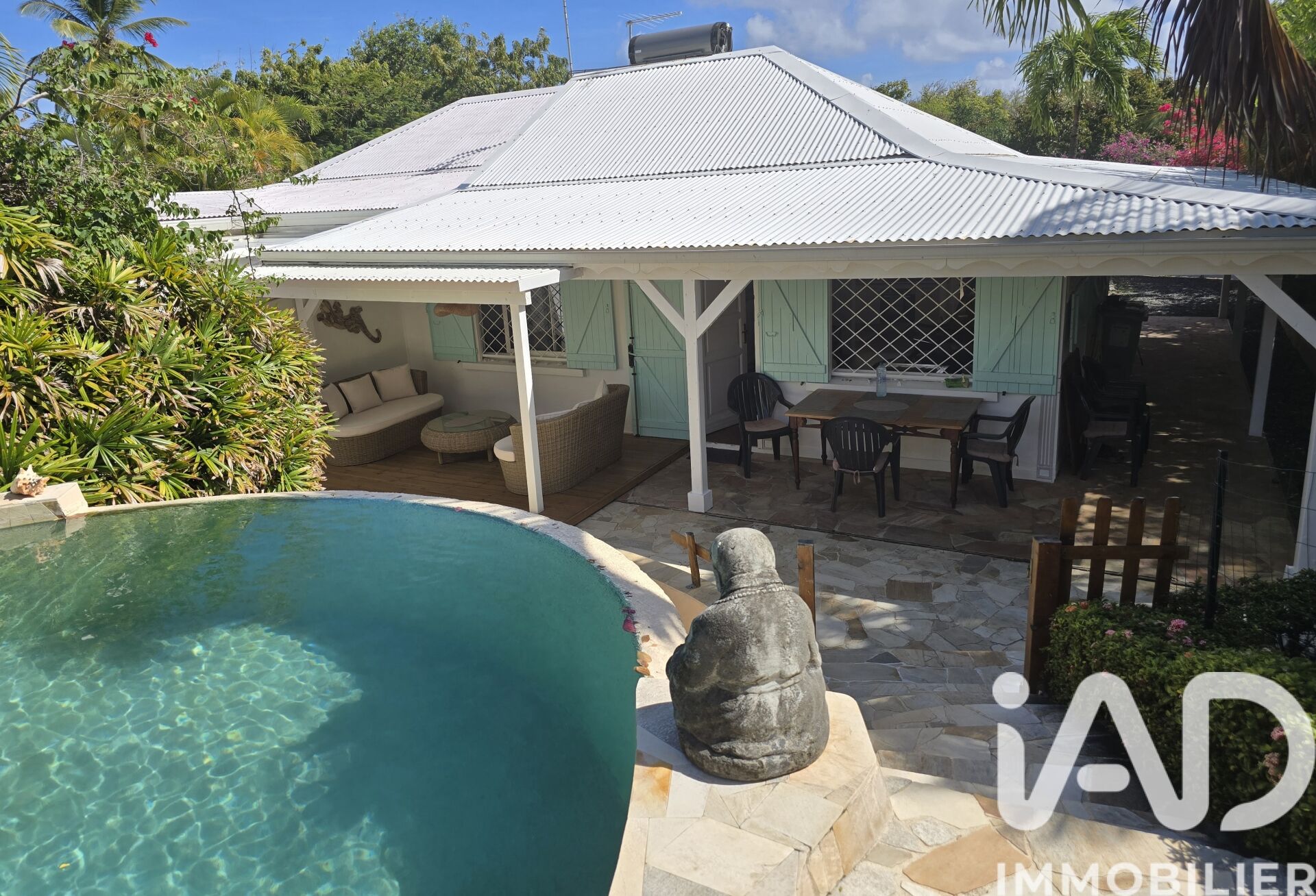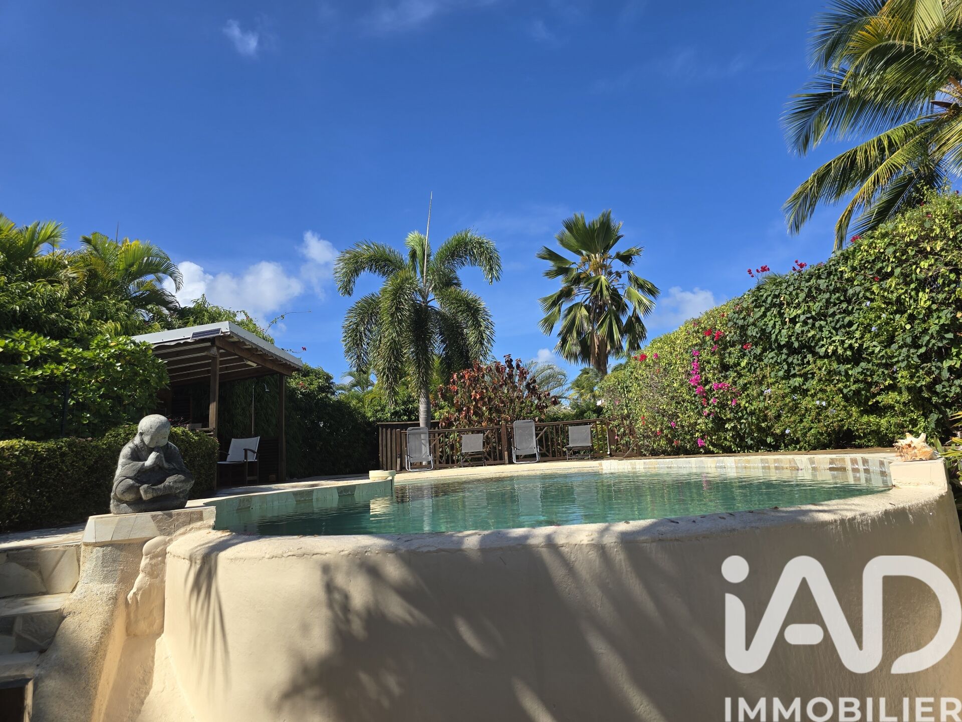 Iad France - Catherine Martinez vous propose : COUP DE CŒUR POUR CETTE SUPERBE VILLA rénovée avec piscine à débordement – Plage accessible à pied – Cadre idyllique à Saint-François. Villa vendue entièrement meublée, clé en main, de plain-pied, idéale en résidence principale, secondaire ou pour un investissement locatif saisonnier à fort rendement. Située dans une résidence prisée et au calme, à quelques pas de la plage… ici, on va se baigner à pied et on s’endort au son des vagues ! Emplacement privilégié, circulation d’air naturelle grâce aux alizés, située au fond d’une impasse cette villa offre calme et intimité, tout en étant à proximité, des restaurants, des plages, des activités de la côte de Saint-François. Aucun travaux à prévoir : vous posez vos valises et profitez immédiatement ! * Un intérieur fonctionnel et agréable * Cuisine ouverte, aménagée et équipée, sécurisée par des volets roulants anti-cycloniques. * Séjour lumineux ouvert sur l’extérieur * 1 chambre climatisée avec rangements double dressing * 1 chambre climatisée avec rangements dressing * 1 Salle d’eau avec douche à l’italienne et WC Un extérieur exceptionnel, la villa est entourée d’un environnement verdoyant et sans vis-à-vis, pensé pour la détente : * Grande piscine à débordement style lagon avec plage immergée, entourée d’un deck et de pavés * Carbet pour vos moments de convivialité * Terrasse couverte avec un espace repas et un salon extérieur, une coursive abritée entoure la maison * Douche extérieure * Abris de jardin pour rangement * Jardin paysagé à l’avant et à l’arrière Confort et équipements * Buanderie / cellier / local picine en exterieur * Terrain entièrement clôturé et végétalisé * Portail sécurisé avec une place de stationnement intérieur + places visiteurs en exterieur * Citerne tampon ACS de 1000 L, assurant une réserve d’eau et un confort optimal au quotidien * Chauffe-eau solaire * Maison anti-cyclonique et anti-sismique Caractéristiques principales Terrain : 478 m² Surface habitable : 57,80 m² (surface totale selon l’acte de vente) Surface Loi Carrez : 53,76 m² (51,70 m² privative + 2,06 m² de surfaces non prises en compte) Surface utile totale : 112 m², incluant terrasses Contactez-moi dès maintenant pour organiser une visite (présentielle ou à distance) et découvrir ce véritable havre de paix. Vidéos complémentaires disponibles sur demande pour une première découverte du bien. La presente annonce immobiliere vise 1 lot situé dans une copropriété de 154 lots au total et ne faisant l'objet d'aucune procédure en cours citée à l'article L. 721-1 du code de la construction et de l'habitation. Montant moyen mensuel de charges déclaré par le vendeur : 100€ par mois (soit 1200 € annuel). Honoraires d'agence à la charge du vendeur. Bien non soumis au DPE. Les informations sur les risques auxquels ce bien est exposé, y compris l'obligation légale de débroussaillement, sont disponibles sur le site Géorisques : http://www.georisques.gouv.fr. La présente annonce immobilière a été rédigée sous la responsabilité éditoriale de Mme Catherine Martinez mandataire indépendant en immobilier (sans détention de fonds), agent commercial de la SAS I@D France immatriculé au RSAC de POINTE A PITRE sous le numéro 398395699, titulaire de la carte de démarchage immobilier pour le compte de la société I@D France SAS.