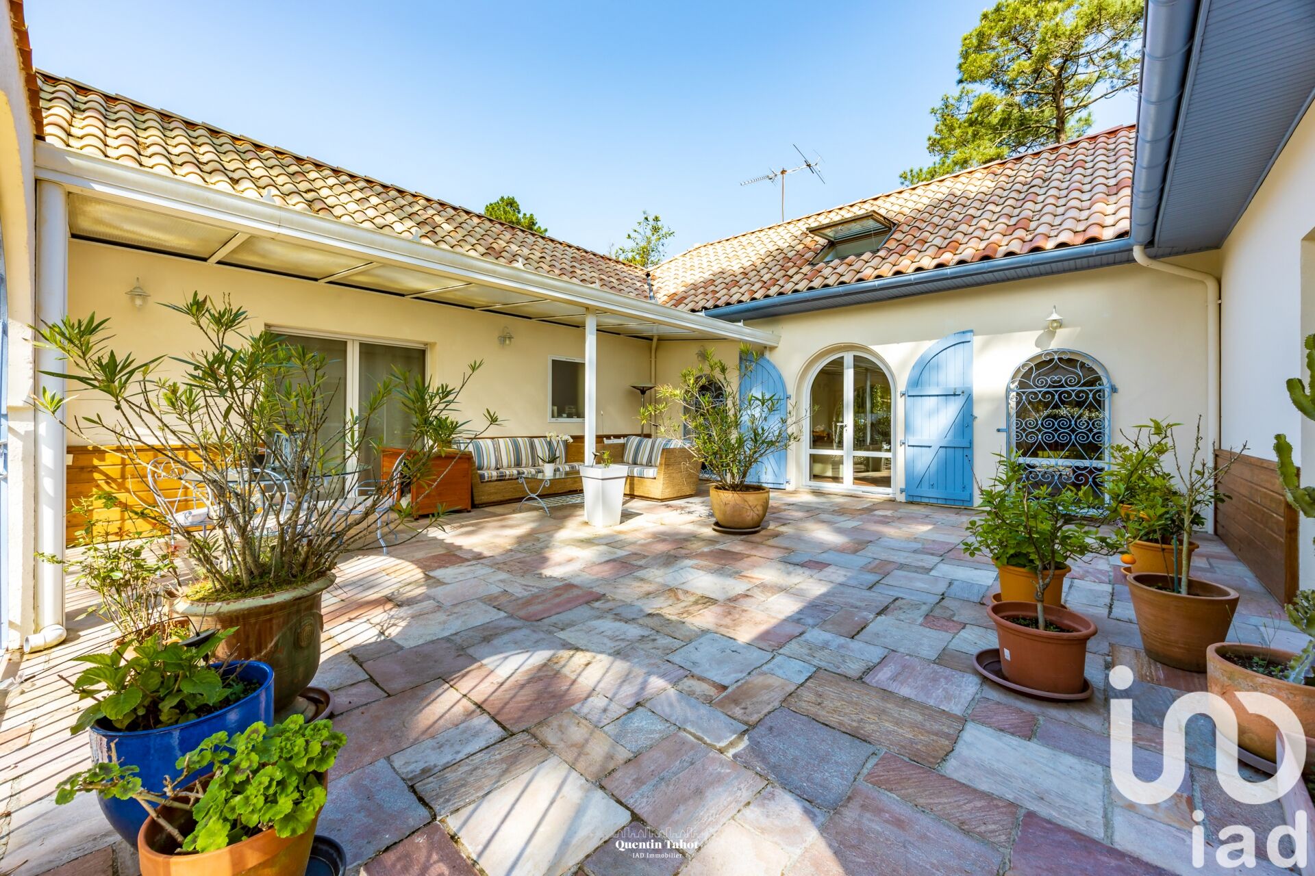 Iad France - Quentin TAHOT vous propose : À quelques pas de l’océan et en lisière de forêt, cette maison d’architecte de 208 m² (184 m² habitables) aux lignes sobres et intemporelles déploie une architecture pensée pour la vie de famille et les instants partagés. Entièrement rénovée, elle conjugue matériaux nobles, volumes généreux et ambiance chaleureuse dans un environnement rare et recherché. Dès l’entrée, un charmant patio de 70 m², dont 20 m² couverts, vous accueil. Il prolonge naturellement l’intérieur et invite à la détente. Son sol en pierre naturelle (probablement quartzite ou schiste), ses lignes soignées et sa configuration en font un lieu de vie à part entière, intime, esthétique et parfaitement intégré à l’architecture. Il fait le lien entre intérieur et extérieur, entre détente et convivialité. En pénétrant à l'intérieur, le ton est donné par une vaste pièce de vie traversante d’environ 45 m². Le charme opère instantanément : au sol, des tommettes en terre cuite, au plafond, un plancher bois avec poutres et solivage apparents. Ce séjour, baigné de lumière, proposant un insert bois dégage une vraie personnalité, tout en restant sobre et lumineux. Dans la cuisine indépendante, le plan de travail et la table en granite s’intègrent à une conception sur mesure, avec plaques gaz et induction, plancha et friteuse encastrées. Le sol en travertin souligne l’authenticité et la qualité de l’ensemble. Les espaces nuits sont répartis en trois zones bien distinctes. La suite parentale, d’environ 37 m², occupe sa propre aile et comprend une grande chambre, un dressing, une salle d’eau avec douche à l’italienne, un WC séparé et un parquet chaleureux au sol. Deux autres chambres, côté opposé, partagent une salle de bain et un WC indépendant. Enfin, une quatrième chambre, pensée comme une unité indépendante, dispose de sa propre salle d’eau, idéale pour un adolescent ou un invité. À l’étage, un espace ouvert sous charpente baigné de lumière grâce à ses deux velux offre une belle surface polyvalente. Bureau, salle de jeux, dortoir pour accueillir famille et amis : ce lieu atypique, avec sa charpente apparente, ajoute une dimension unique à la maison. Il dispose également d’un WC et d’une salle d’eau, apportant un vrai confort pour un usage indépendant ou prolongé. À l’extérieur, les 1 267 m² de terrain révèlent un décor agréable propice à la détente et aux beaux moments. Opposé au patio, à l’arrière de la maison, un magnifique chêne-liège trône au cOEur de l’espace. Autour de lui s’articulent une piscine de 32 m², une cuisine d’été, un terrain de pétanque, ainsi qu’une vaste terrasse idéale pour se détendre ou partager des moments conviviaux en plein air dès l’arrivée des beaux jours. Nichée dans un quartier calme de Labenne Océan, à seulement 800 mètres de la plage et 150 mètres de la forêt, cette maison séduit autant par sa qualité de construction que par sa localisation exceptionnelle, c’est un équilibre rare entre esthétisme, fonctionnalité et qualité de vie. Localisation idéale : Océan à 800 m, accès forêt à 150m, 12 min de Capbreton, 20 min d’Hossegor, 25 min de Bayonne et 50 min de la frontière espagnole. Honoraires d'agence à la charge du vendeur. Information d'affichage énergétique sur ce bien : classe ENERGIE D indice 186 et classe CLIMAT D indice 30. Les informations sur les risques auxquels ce bien est exposé, y compris l'obligation légale de débroussaillement, sont disponibles sur le site Géorisques : http://www.georisques.gouv.fr. La présente annonce immobilière a été rédigée sous la responsabilité éditoriale de M Quentin TAHOT mandataire indépendant en immobilier (sans détention de fonds), agent commercial de la SAS I@D France immatriculé au RSAC de DAX sous le numéro 887926855, titulaire de la carte de démarchage immobilier pour le compte de la société I@D France SAS.