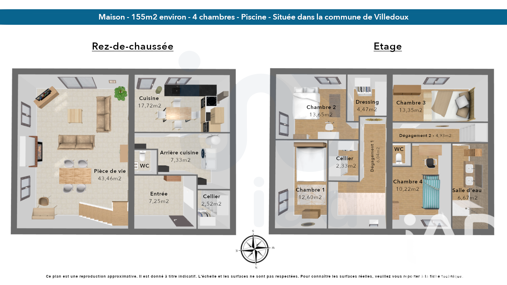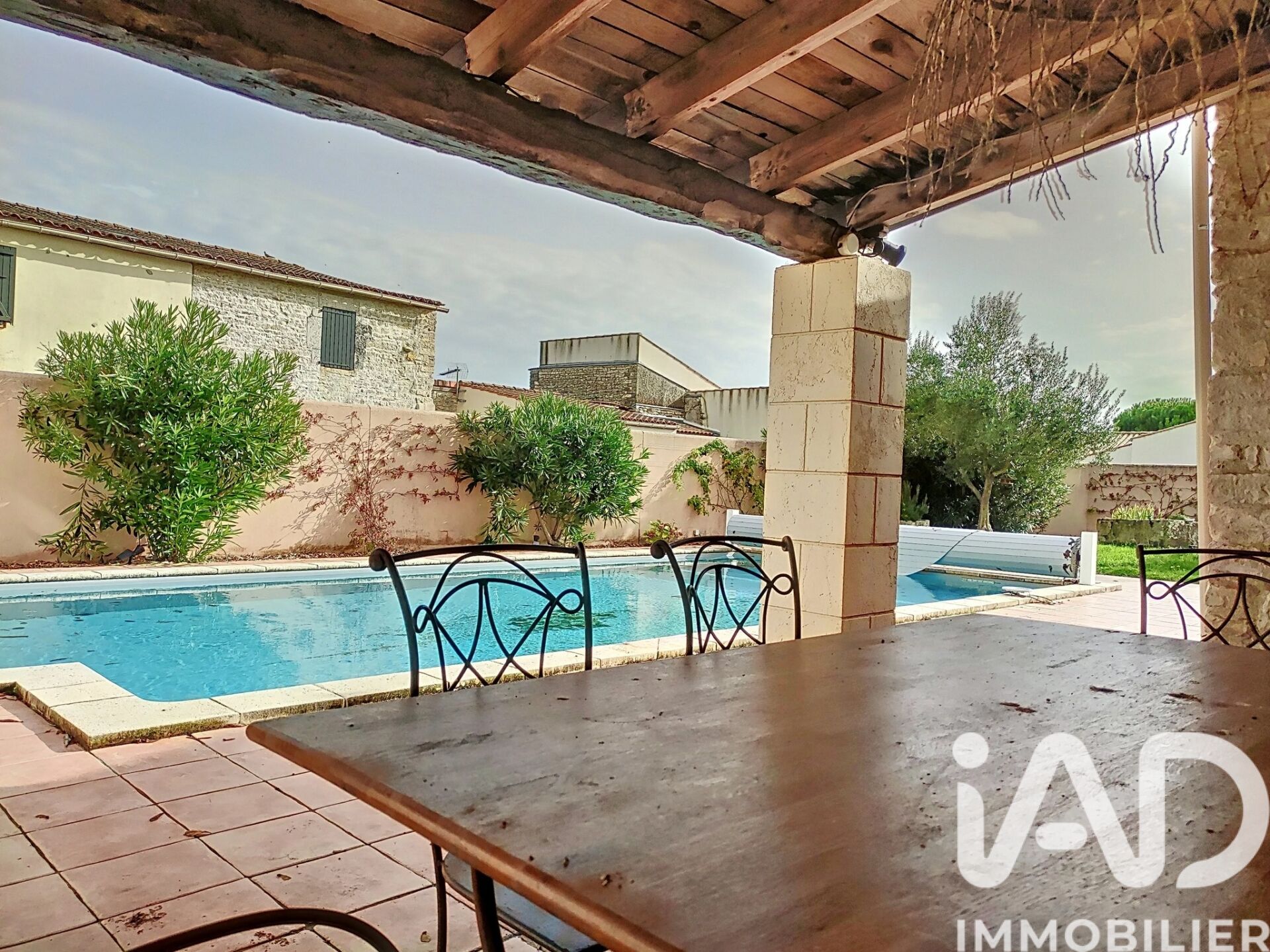 Iad France - Frédéric Pau vous propose : À 15 minutes de La Rochelle, nichée dans une impasse paisible à proximité des commerces de la commune de Villedoux, cette élégante demeure de 155 m² environ incarne le charme et la douceur de vivre. Conçue pour accueillir famille et amis, cette maison offre des espaces chaleureux et lumineux, sublimés par le charme et le caractère de la pierre apparente. Dès l’entrée, le ton est donné : une ambiance accueillante avec un cellier pratique et un WC avec lave-mains. Le vaste salon-séjour de 46 m², véritable cOEur de la maison, séduit par sa cheminée à foyer ouvert et sa grande baie vitrée qui inonde la pièce de lumière naturelle, offrant une vue apaisante sur la terrasse et la piscine. Un magnifique mur en pierres apparentes ajoute une touche d’authenticité à cet espace idéal pour des moments de convivialité. La cuisine semi-ouverte, aménagée et équipée, prolonge cet esprit de charme et bénéficie d’une arrière-cuisine pour encore plus de fonctionnalité. À l’étage, on retrouve encore et toujours le charme de la pierre, apportant chaleur et caractère. Un premier palier dessert trois confortables chambres, dont une avec espace dressing, ainsi qu’un grand placard indépendant. Un second palier mène à une quatrième chambre, un WC et une salle d’eau, à la décoration soignée, avec douche à l’italienne. À l’extérieur, la douceur de vivre prend tout son sens avec une grande piscine de 10 x 5 m exposée plein sud, entourée d’une terrasse carrelée et ombragée par une voile. Un salon d’été couvert offre l’espace parfait pour des repas partagés en famille ou entre amis en plein air et à l’abri du soleil. La parcelle verdoyante permet la construction d’une dépendance de 60 m² environ pour recevoir des invités ou offrir un intéressant complément locatif, ce qui représente un autre atout majeur de cette propriété. Le chauffage par pompe à chaleur assure confort et économies d’énergie, tandis qu’un grand espace de stationnement sécurisé complète l’ensemble. Laissez-vous séduire par cette maison au charme intemporel ! Contactez-moi dès aujourd'hui pour une visite et découvrez un cadre de vie exceptionnel où bien-être et convivialité se mêlent avec élégance. Honoraires d'agence à la charge du vendeur. Information d'affichage énergétique sur ce bien : classe ENERGIE B indice 103 et classe CLIMAT A indice 3. Les informations sur les risques auxquels ce bien est exposé, y compris l'obligation légale de débroussaillement, sont disponibles sur le site Géorisques : http://www.georisques.gouv.fr. La présente annonce immobilière a été rédigée sous la responsabilité éditoriale de M Frédéric Pau mandataire indépendant en immobilier (sans détention de fonds), agent commercial de la SAS I@D France immatriculé au RSAC de LA ROCHELLE sous le numéro 889572939, titulaire de la carte de démarchage immobilier pour le compte de la société I@D France SAS.