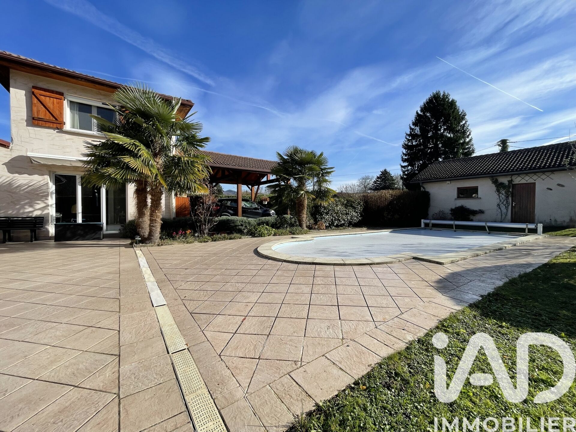 Iad France - Franck Cali vous propose : VOIRON - MAISON DE PLAIN PIED 111 m² - DÉPENDANCE 30 m² - PISCINE - DOUBLE GARAGE Niché dans un écrin de verdure, ce charmant plain-pied de 141 m², construit en 1999, est le parfait mélange entre modernité et authenticité. Édifiée sur une parcelle de 1113 m², cette maison offre un cadre de vie idéal pour les familles à la recherche de tranquillité. La localisation permet de profiter d'un environnement paisible tout en restant proche des commodités : écoles, transports en communs et commerces. (environ 5 min des commerces, 7 min des écoles et 12 min de la gare). La maison se compose d'une entrée avec rangement, d'une cuisine aménagée et équipée ouverte sur le salon, d'une salle à manger et d'une véranda. Le coin nuit comprend trois chambres, une salle de bain et un wc séparé. Attenante à la maison, une extension de 30 m², peut accueillir famille et amis, ou pour générer un revenu locatif grâce à une location indépendante. Elle est composée d'un bureau avec un accès sur l’extérieur, d'une chambre, d'une salle d'eau avec un wc. Le jardin, bien entretenu, arboré et entièrement clôturé, est un véritable atout. Une grande terrasse avec une piscine enterrée, un double garage et de nombreuses places de stationnement complètent cet espace extérieure. AUCUN TRAVAUX A PRÉVOIR Coté prestations : DPE C Menuiseries bois double vitrage et volets motorisés solaires Chauffages au sol, pompe à chaleur air / eau et poêle à bois performant Piscine (10 x 5 m) avec volet roulant Véranda avec coin barbecue Store banne motorisé Isolation des combles Portail motorisé L'assainissement est non collectif Taxe foncière : 2180 € Ne manquez pas cette opportunité d'acquérir une maison d'exception à Voiron. Contactez moi des maintenant pour organiser une visite et laissez-vous séduire par le charme de cette propriété. Honoraires d'agence à la charge du vendeur. Information d'affichage énergétique sur ce bien : classe ENERGIE C indice 175 et classe CLIMAT A indice 5. Les informations sur les risques auxquels ce bien est exposé, y compris l'obligation légale de débroussaillement, sont disponibles sur le site Géorisques : http://www.georisques.gouv.fr. La présente annonce immobilière a été rédigée sous la responsabilité éditoriale de M Franck Cali mandataire indépendant en immobilier (sans détention de fonds), agent commercial de la SAS I@D France immatriculé au RSAC de VIENNE sous le numéro 831535422, titulaire de la carte de démarchage immobilier pour le compte de la société I@D France SAS.