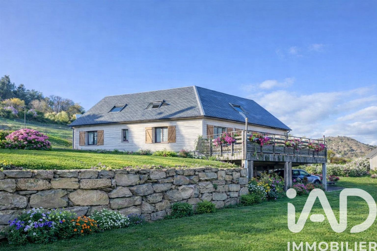 Iad France - Valérie Delmas vous propose : Sous le château de Murol : Maison familiale 190 m² + 100 m² de sous sol, belle terrasse le tout sur un terrain clos de 2 528 m² offrant vue dégagée. Rez-de-jardin (plain pied) : grande pièce de vie 45 m² avec cuisine équipée et véranda, 2 chambres, bureau, salle d’eau, WC, hall d’entrée et véranda. Étage : 3 chambres, salle d’eau, WC, une salle de jeux. Sous-sol : garage double, cave, buanderie, cellier, chaufferie et rangements. Extérieur : terrasse sur pilotis 42 m², poulailler, potager, terrain de pétanque. Chauffage : pompe à chaleur air / eau. Un bien rare, idéal pour grande famille ou projet gîte, alliant espace, confort et panorama exceptionnel. Honoraires d'agence à la charge du vendeur. Information d'affichage énergétique sur ce bien : classe ENERGIE D indice 222 et classe CLIMAT B indice 7. Les informations sur les risques auxquels ce bien est exposé, y compris l'obligation légale de débroussaillement, sont disponibles sur le site Géorisques : http://www.georisques.gouv.fr. La présente annonce immobilière a été rédigée sous la responsabilité éditoriale de Mme Valérie Delmas mandataire indépendant en immobilier (sans détention de fonds), agent commercial de la SAS I@D France immatriculé au RSAC de Clermont Ferrand sous le numéro 485054977, titulaire de la carte de démarchage immobilier pour le compte de la société I@D France SAS.
