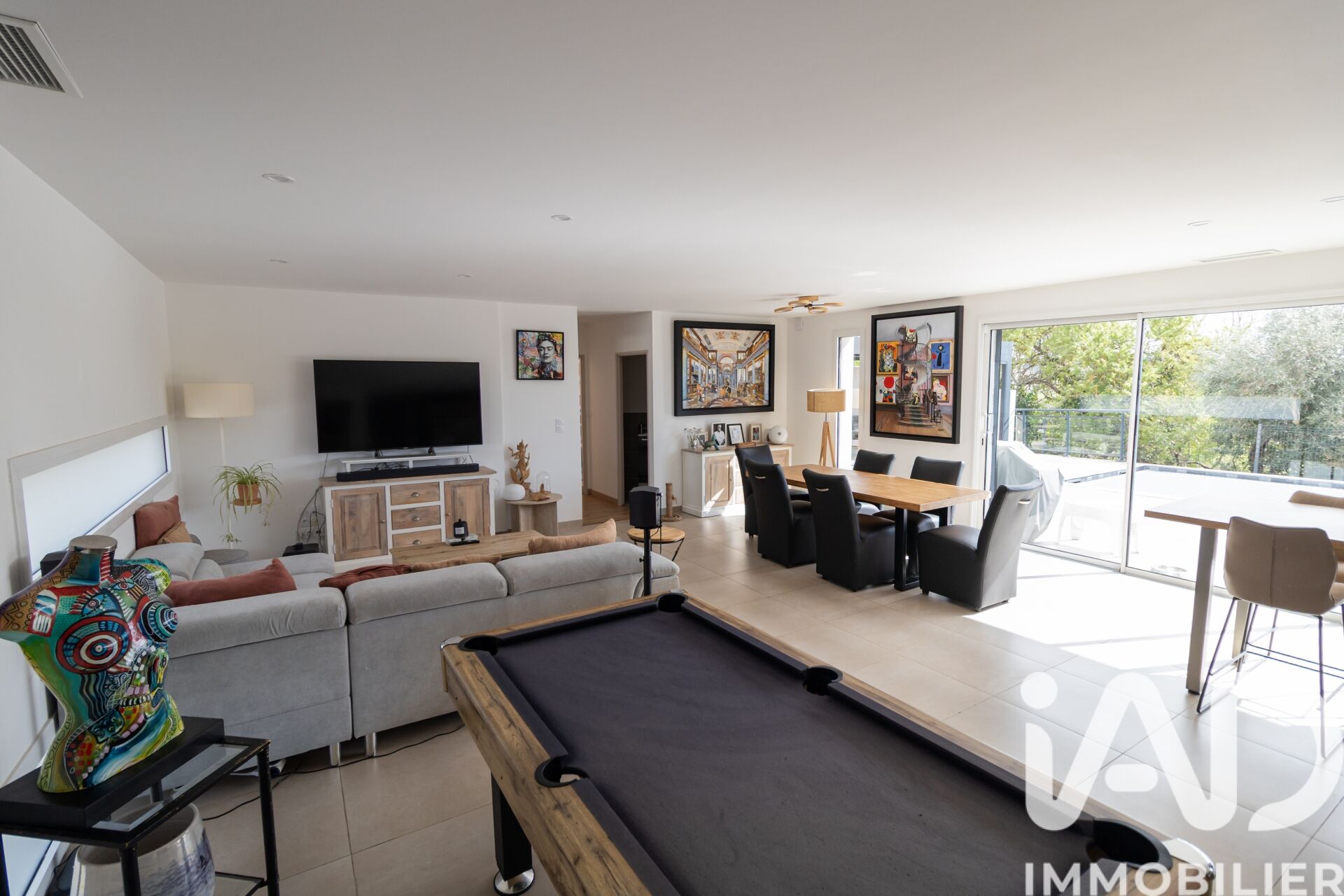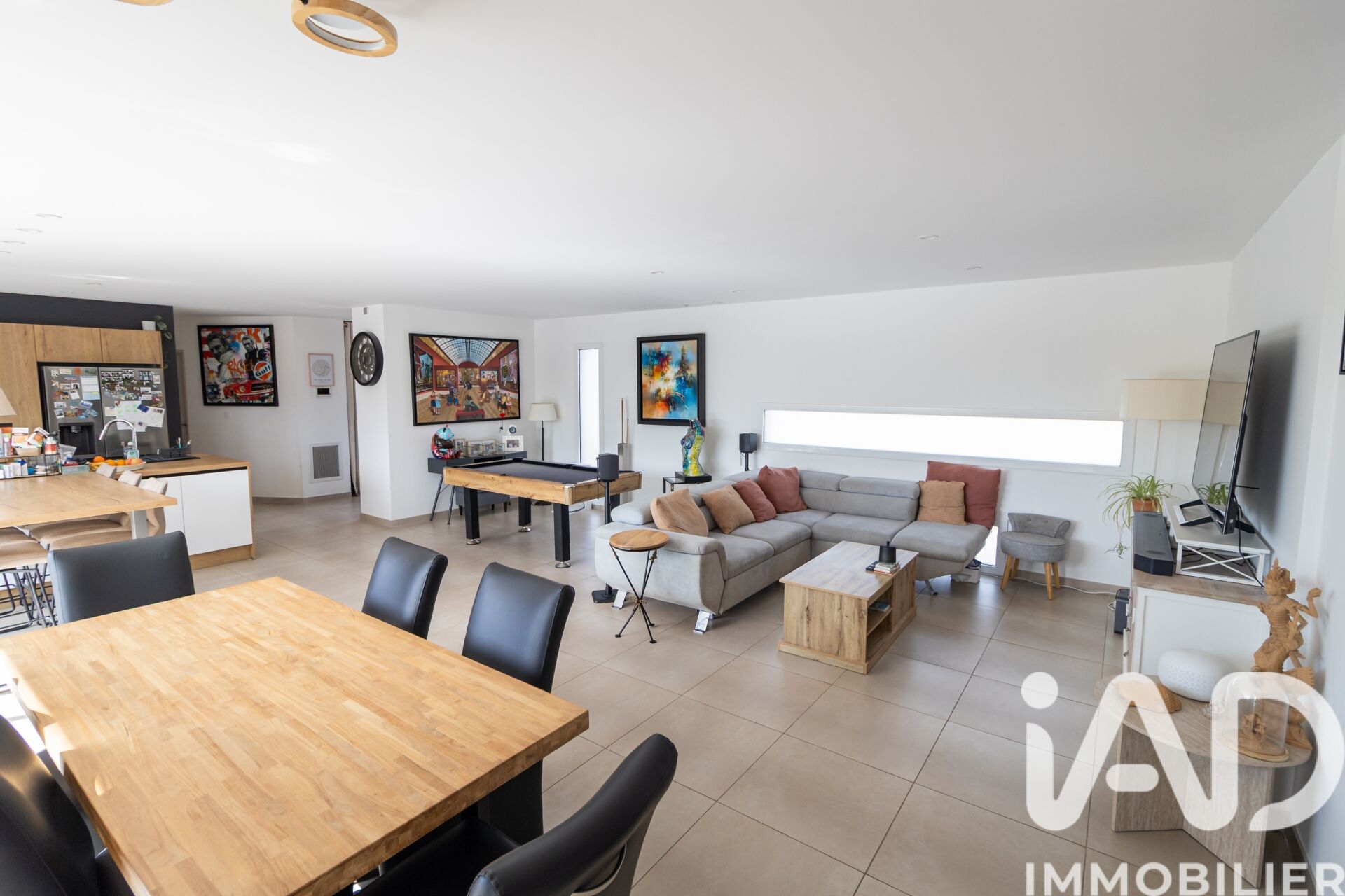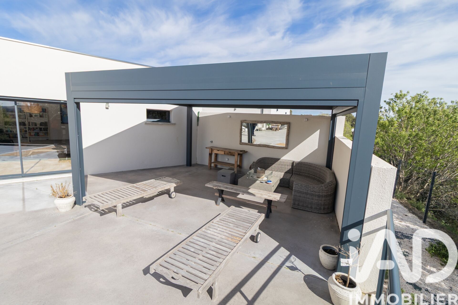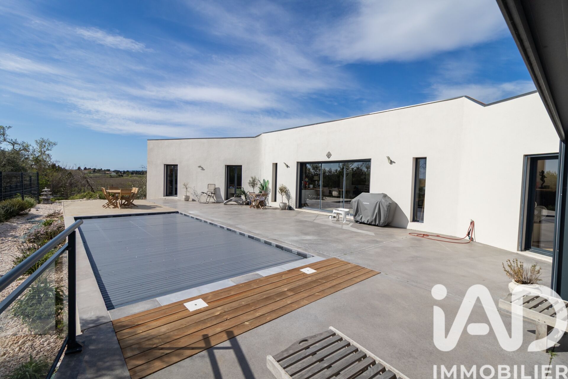 Iad France - Yohann Maes vous propose : EXCLUSIVITE - ST MARCEL SUR AUDE Située dans un village très agréable à 15 minutes de Narbonne avec de nombreux commerces, je suis très heureux de vous présenter cette splendide nouveauté Dans un environnement très calme et SANS VIS A VIS, est édifiée cette superbe villa contemporaine de PLAIN PIED de 202 m² habitables sur une parcelle de 1500 m². La villa s' articule autour d' une vaste pièce de vie très lumineuse ouverte sur l' espace extérieur avec terrasses piscine et pergola. La cuisine ouverte, entièrement équipée s' intègre parfaitement dans l' espace de vie. D' un coté de la villa vous profiterez d' une suite parentale avec dressing et salle de bain et wc, d'un bureau ou cinquième chambre et d' un wc indépendant, de l' autre coté vous trouverez trois chambres avec placards et une salle de bain avec baignoire, douche italienne et wc Les extérieurs sont aménagés autour d' un jardin paysager avec bassin, une piscine chauffée au sel avec volet immergé et plage, une terrasse avec pergola bioclimatique de 25 m². Une buanderie de 17 m² climatisée, également utilisée en salle de sport ainsi qu' un garage de 83 m² complètent ce bien. Les équipements -panneaux photovoltaïques de 9kw installés avec 30kw de batteries (installation de 2019 sur le toit du garage) -menuiseries alu avec pilotage à distance des volets roulants et portail -climatisation gainable bizone -piscine 8 * 3.5 * 1.4 en fond plat chauffée et traitée au sel -pergola bioclimatique -borne de recharge pour véhicule -alarme sans abonnement -assainissement tout à l' égout via une pompe de relevage -possibilité de stationner de nombreux véhicules sur la parcelle -toiture étanchéité sous décennale -PAS DE VIS A VIS Honoraires d'agence à la charge du vendeur. Information d'affichage énergétique sur ce bien : classe ENERGIE B indice 74 et classe CLIMAT A indice 2. Les informations sur les risques auxquels ce bien est exposé, y compris l'obligation légale de débroussaillement, sont disponibles sur le site Géorisques : http://www.georisques.gouv.fr. La présente annonce immobilière a été rédigée sous la responsabilité éditoriale de M Yohann Maes mandataire indépendant en immobilier (sans détention de fonds), agent commercial de la SAS I@D France immatriculé au RSAC de NARBONNE sous le numéro 831 905 682, titulaire de la carte de démarchage immobilier pour le compte de la société I@D France SAS.