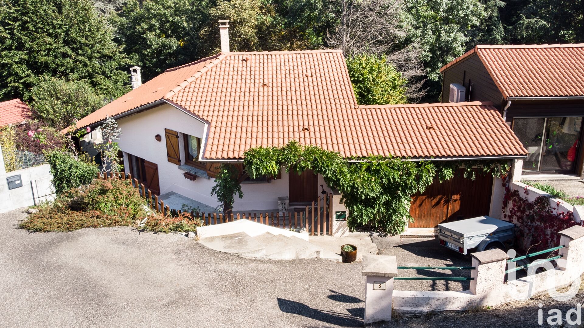 Iad France - Sonia DURAND vous propose : VENEZ VIVRE PROCHE DE LA NATURE TOUT EN ÉTANT PROCHE DU CENTRE VILLE. Laissez vous séduire par cette maison d’architecte de 4 pièces, d’une superficie de 98 m² + 22 m² de garage aménagé, adapté à un terrain en pente de 1087 m² arboré. Elle offre de belles prestations et un aménagement intérieur original, avec sa charpente apparente. Idéal pour une petite famille ou un couple, elle se situe dans un petit lotissement très calme. Caractéristiques : Rez-de-chaussée : - Un garage transformé en bureau et cellier - Un hall d’entrée desservant une cuisine fermée entièrement équipée (meubles en chêne) - Un vestiaire - Un WC séparé - Une mezzanine ouvrant sur un balcon avec vue panoramique sur la nature environnante. ½ niveau inférieur : -Une salle de séjour de 30 m² avec une cheminée foyer ouvert (possibilité de remplacer par un poêle) ouvrant sur une terrasse de 50 m². ½ niveau plus bas : -2 chambres de 11 et 12 m² (avec placards muraux) ouvrant sur une seconde terrasse -Une salle d’eau équipée avec douche à l’italienne et meubles double vasque. -Un placard de rangement de 5 m² aménagé -Un WC séparé Extérieur : -Deux terrasses -Abris de jardins de 12 m² -Barbecue en dur -Aménagement des espaces en maçonnerie Travaux de rénovation récents : -Fenêtres et portes fenêtres double vitrage en composite fibre de verre (novembre 2024) -Reprise complète du toit y compris le faîtage (début 2025) -Peinture de la façade Chauffage électrique par radiateurs, possibilité de chauffage au gaz (arrivée du gaz de ville dans le lotissement). Exposition EST / OUEST. Proche de tous les commerces, axes autoroutiers, écoles et transports en commun. Honoraires d'agence à la charge du vendeur. Information d'affichage énergétique sur ce bien : classe ENERGIE E indice 265 et classe CLIMAT B indice 8. Les informations sur les risques auxquels ce bien est exposé, y compris l'obligation légale de débroussaillement, sont disponibles sur le site Géorisques : http://www.georisques.gouv.fr. La présente annonce immobilière a été rédigée sous la responsabilité éditoriale de Mme Sonia DURAND mandataire indépendant en immobilier (sans détention de fonds), agent commercial de la SAS I@D France immatriculé au RSAC de SAINT ETIENNE sous le numéro 890547300, titulaire de la carte de démarchage immobilier pour le compte de la société I@D France SAS.