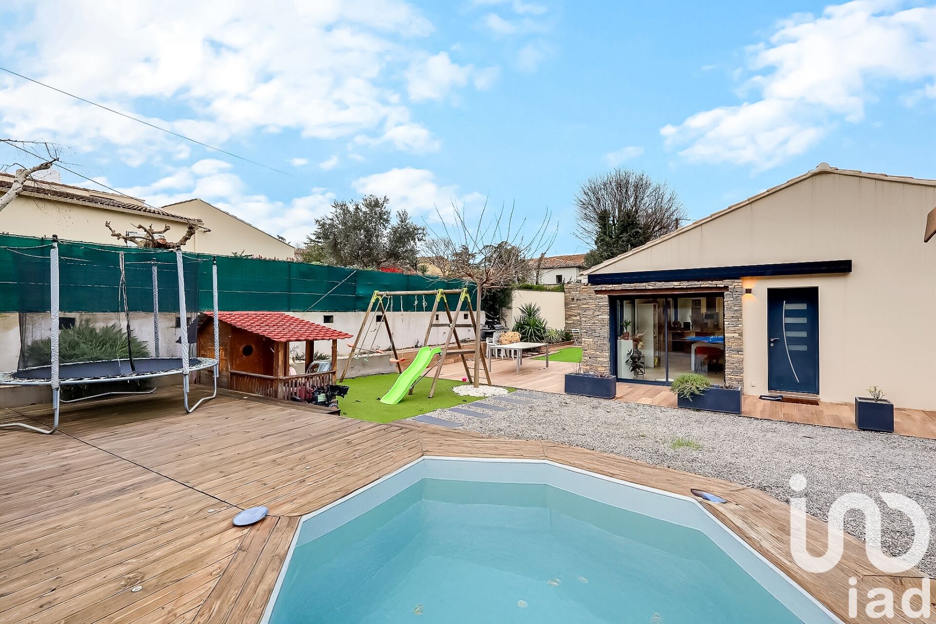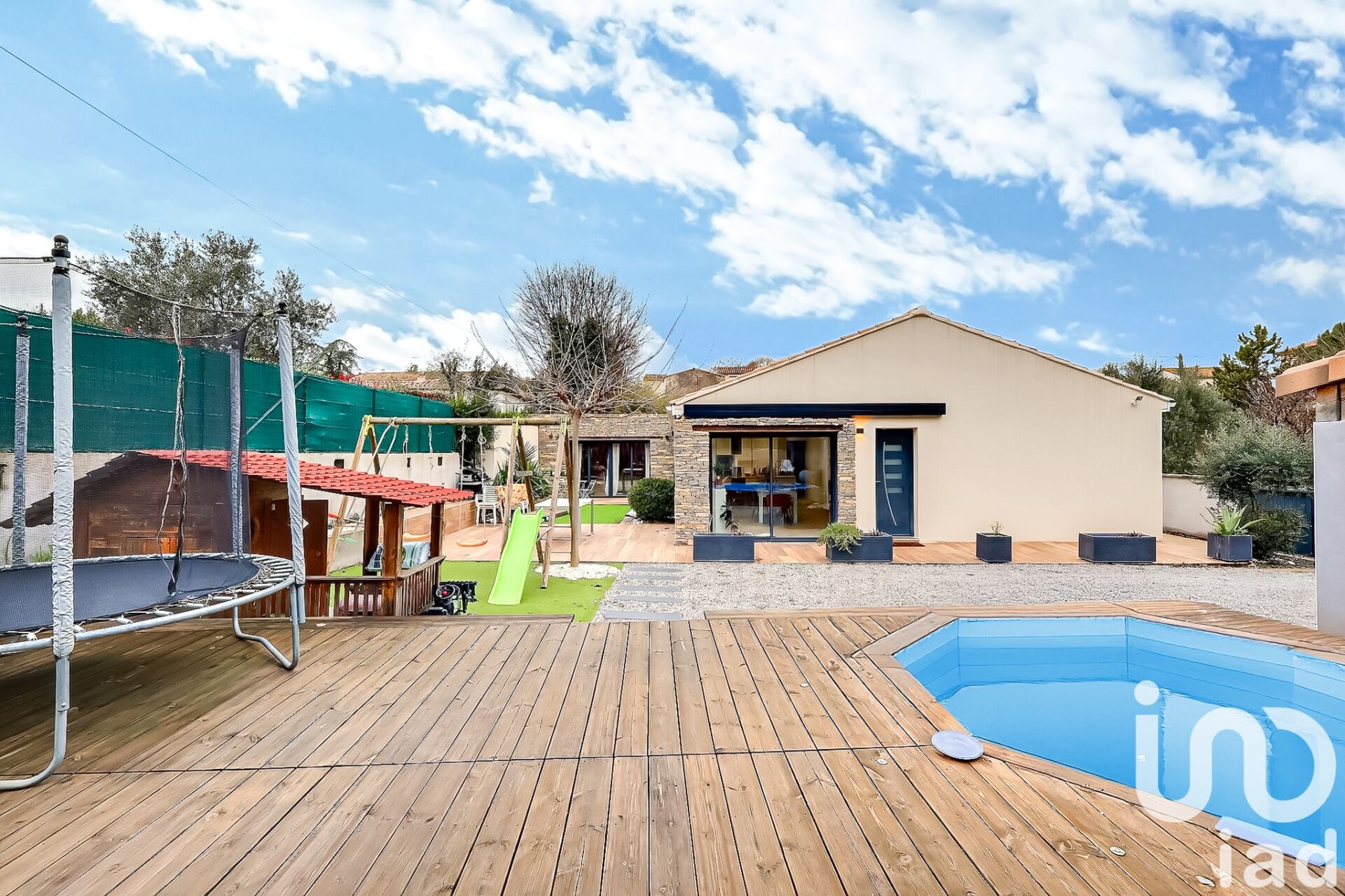 Iad France - Melanie Corbalan vous propose : Charmante villa de plain-pied entièrement rénovée – 139 m² sur plus de 800 m² de terrain Située dans un environnement agréable, cette villa de 4 pièces entièrement rénovée offre un cadre de vie idéal, alliant confort et modernité. D’une surface habitable de 145 m², elle se compose d’un bel espace de vie lumineux avec une cuisine aménagée et équipée, ouverte sur un salon chaleureux et une salle de jeux attenante. L’espace nuit comprend une chambre parentale avec dressing, deux autres chambres, une buanderie, ainsi qu’une salle de bain et un toilette séparé. À l’extérieur, vous profiterez d’un beau jardin arboré avec une piscine hors-sol pour les journées ensoleillées. Un garage vient compléter ce bien. Une maison prête à accueillir votre famille, sans travaux à prévoir ! À visiter sans tarder ! Honoraires d'agence à la charge du vendeur. Information d'affichage énergétique sur ce bien : classe ENERGIE B indice 93 et classe CLIMAT A indice 2. Les informations sur les risques auxquels ce bien est exposé, y compris l'obligation légale de débroussaillement, sont disponibles sur le site Géorisques : http://www.georisques.gouv.fr. La présente annonce immobilière a été rédigée sous la responsabilité éditoriale de Mme Melanie Corbalan mandataire indépendant en immobilier (sans détention de fonds), agent commercial de la SAS I@D France immatriculé au RSAC de Nîmes sous le numéro 831426911, titulaire de la carte de démarchage immobilier pour le compte de la société I@D France SAS.