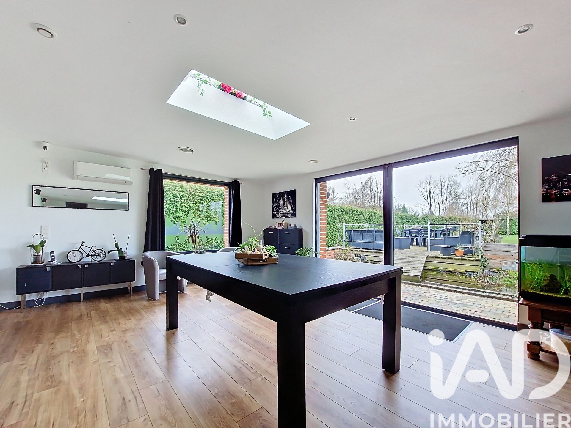Iad France - Stéphanie Dufermont vous propose : Magnifique semi plain pied de plus de 190 m² sur un Terrain de plus de 1300 m² à Coutiches Cette superbe maison située à Coutiches est une véritable trouvaille pour les familles à la recherche d'un confort et d'un cadre de vie exceptionnels. Construite en 1985 et rénovée avec soin, cette propriété offre des prestations de qualité et un espace de vie généreux réparti sur 2 niveaux. Au rez-de-chaussée, vous serez séduit par les 2 vastes salon-séjour lumineux d'environ 90 m², la cuisine ouverte de 19.85 m² offrant convivialité et modernité, idéale pour des repas en famille. Un bureau, une chambre, une salle de bain, une salle d'eau et un cellier complètent ce niveau. À l'étage, vous trouverez 3 belles chambres offrant des espaces de vie intimes et chaleureux pour toute la famille. L'extérieur ne manque pas d'atouts avec une terrasse accueillante, une piscine et une piste de pétanque pour des moments de détente ensoleillés, le tout sur un grand jardin arboré offrant intimité et sérénité. L'extérieur est complété par un atelier et un carport, un garage et des places de stationnement sur la parcelle. Les nombreux labels des différentes pièces de la maison témoignent du soin apporté à chaque détail pour créer un cadre de vie harmonieux. Les équipements de confort tels que la fibre optique, la climatisation, le système de chauffage individuel et la VMC et le tout à l'égout garantissent un quotidien agréable et facilité. L'exposition plein sud assure une luminosité optimale tout au long de la journée, tandis que l'orientation est apporte une belle luminosité matinale. Cette maison ne nécessite aucun travaux et est prête à accueillir ses nouveaux occupants dans les meilleures conditions. Ne manquez pas l'opportunité de visiter ce bien d'exception, véritable havre de paix pour votre famille à Coutiches. Honoraires d'agence à la charge du vendeur. Information d'affichage énergétique sur ce bien : classe ENERGIE C indice 175 et classe CLIMAT A indice 5. Les informations sur les risques auxquels ce bien est exposé, y compris l'obligation légale de débroussaillement, sont disponibles sur le site Géorisques : http://www.georisques.gouv.fr. La présente annonce immobilière a été rédigée sous la responsabilité éditoriale de Mme Stéphanie Dufermont mandataire indépendant en immobilier (sans détention de fonds), agent commercial de la SAS I@D France immatriculé au RSAC de DOUAI sous le numéro 892878794, titulaire de la carte de démarchage immobilier pour le compte de la société I@D France SAS.